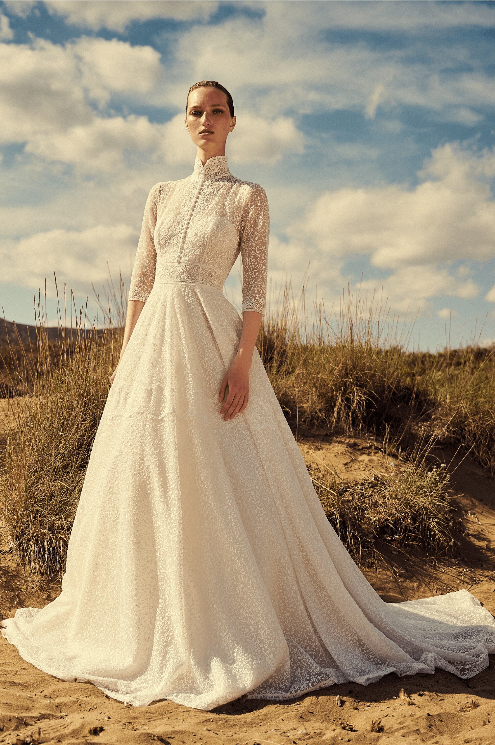 送料無料!ウエディングドレス レースドレス 上品レース ハイネック 七分袖 総レース かわいい トレーン オーダードレス ハンドメイド エレガント 優雅 花嫁 結婚式/前撮り/二次会 セレモニー イブニングドレス 合コン パーティドレス ミディアムドレス | David1021k Dress(ダヴィドレス)