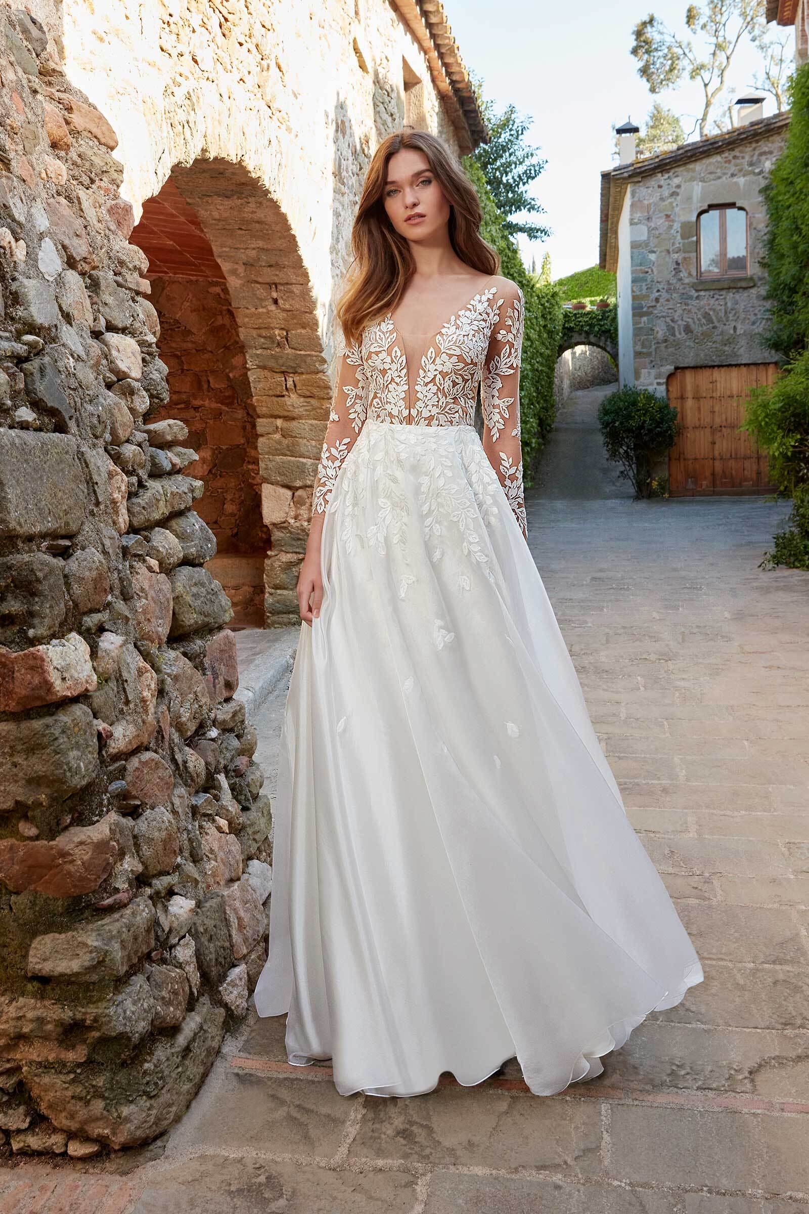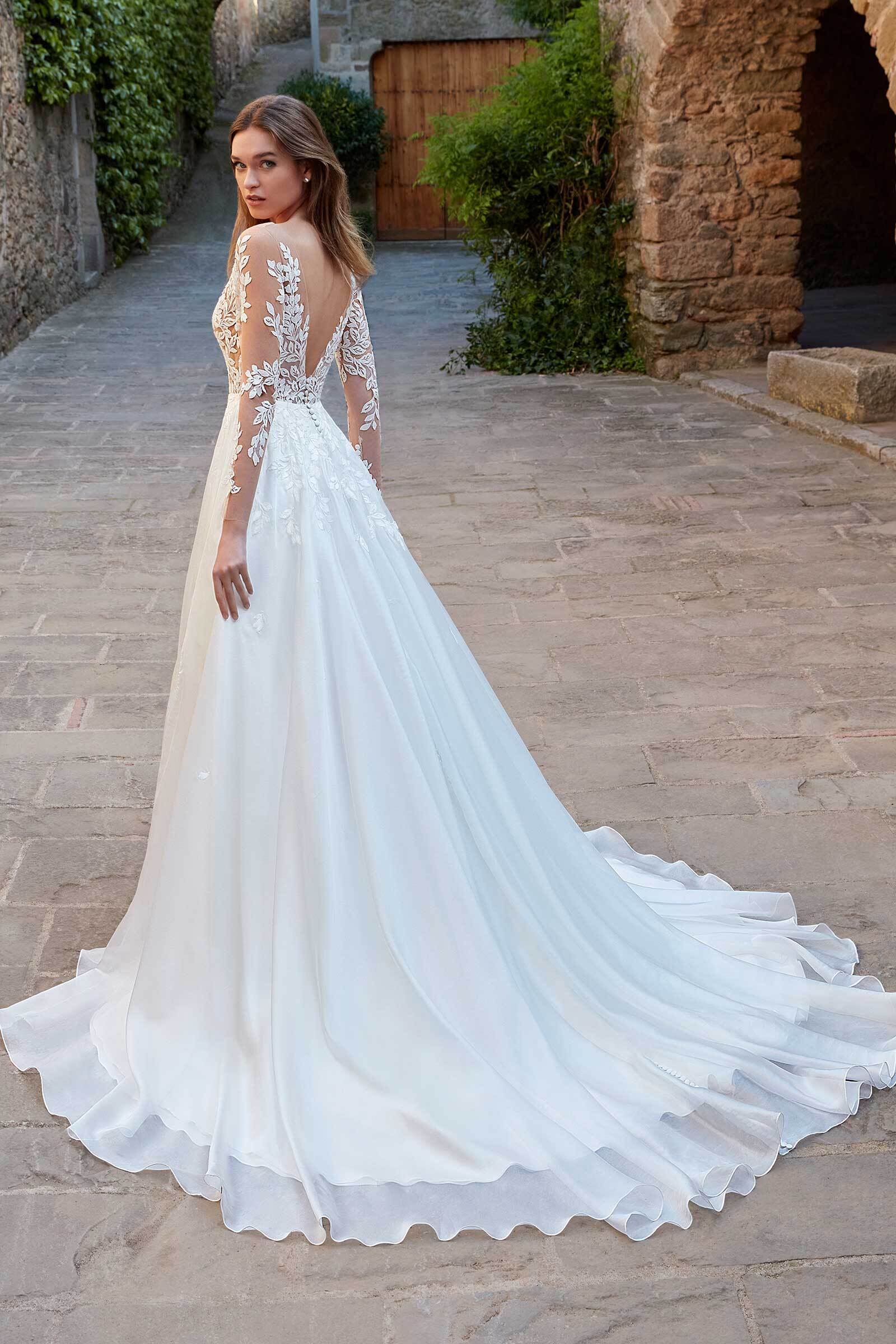 送料無料!ウエディングドレス レースドレス 上品レース Vネック 枝花刺繍 九分袖 花柄のモチーフ刺繍が美しく かわいい トレーン オーダードレス ハンドメイド エレガント 優雅 花嫁 結婚式/前撮り/二次会 セレモニー イブニングドレス 合コン パーティドレス ミディアムドレス | David1021k Dress(ダヴィドレス)