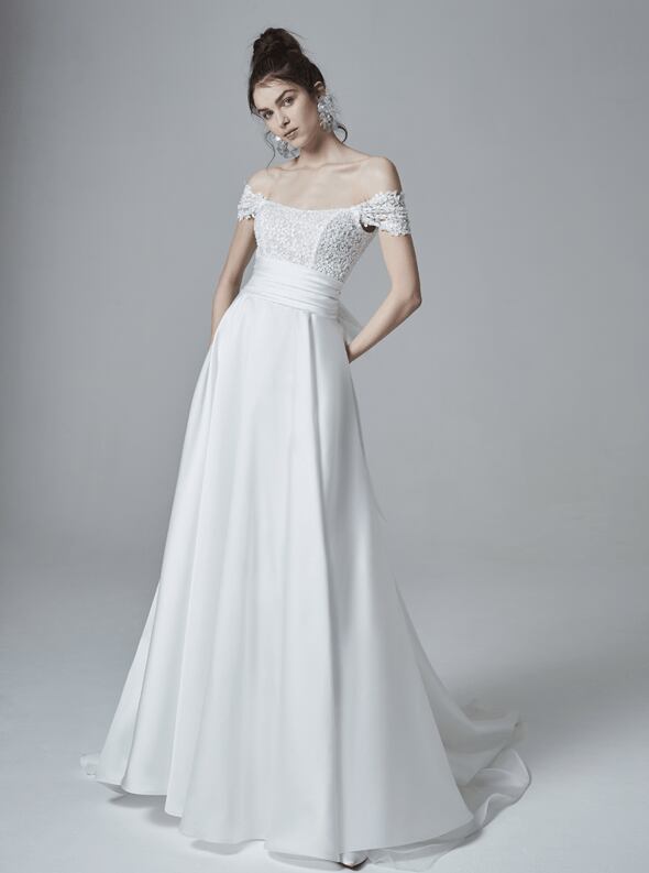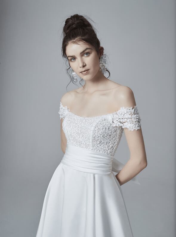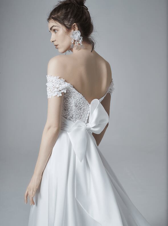 送料無料!ウエディングドレス レースドレス バックリボン 上品レース オフショルダー かわいい トレーン オーダードレス ハンドメイド エレガント 優雅 花嫁 結婚式/前撮り/二次会 セレモニー イブニングドレス 合コン パーティドレス ミディアムドレス | David1021k Dress(ダヴィドレス)