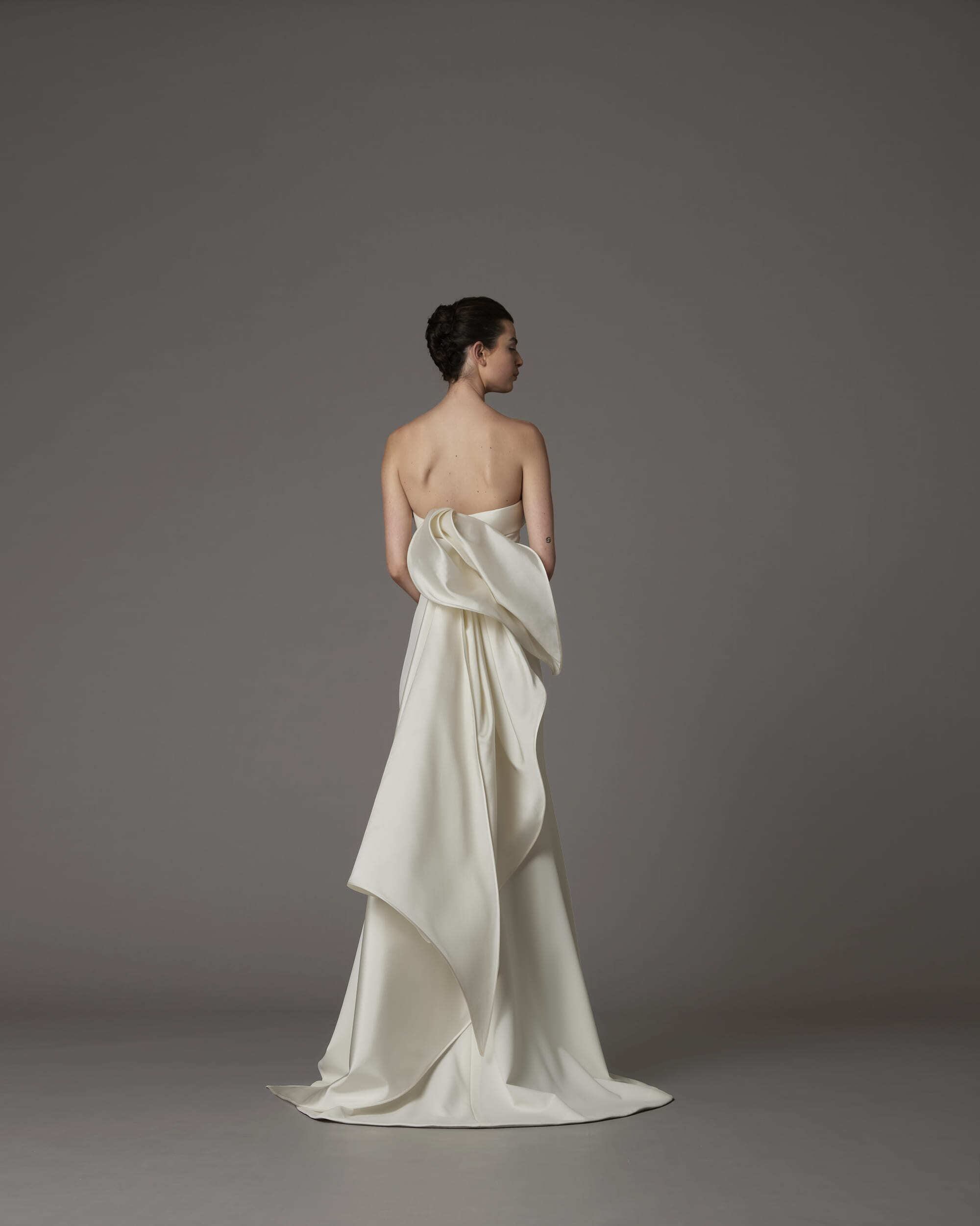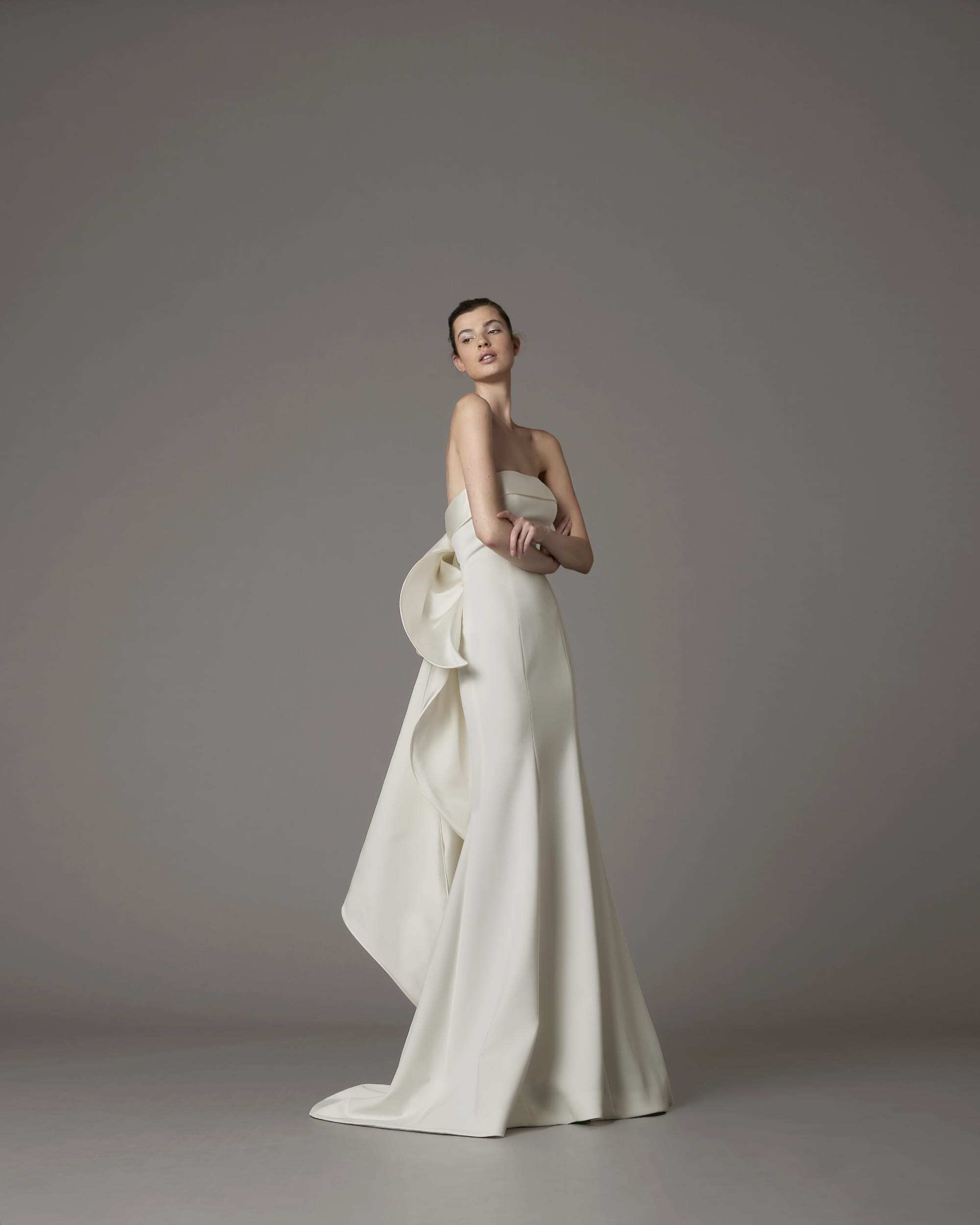 送料無料!ウエディングドレス ベアトップ ビスチェドレス マーメイドライン バックリボン かわいい 高級サテン トレーン オーダードレス ハンドメイド エレガント 優雅 花嫁 ハンドメイド オーダードレス 結婚式/前撮り/二次会/2次会/披露宴/演奏会/音楽会 ガーデンウェディング | David1021k Dress(ダヴィドレス)