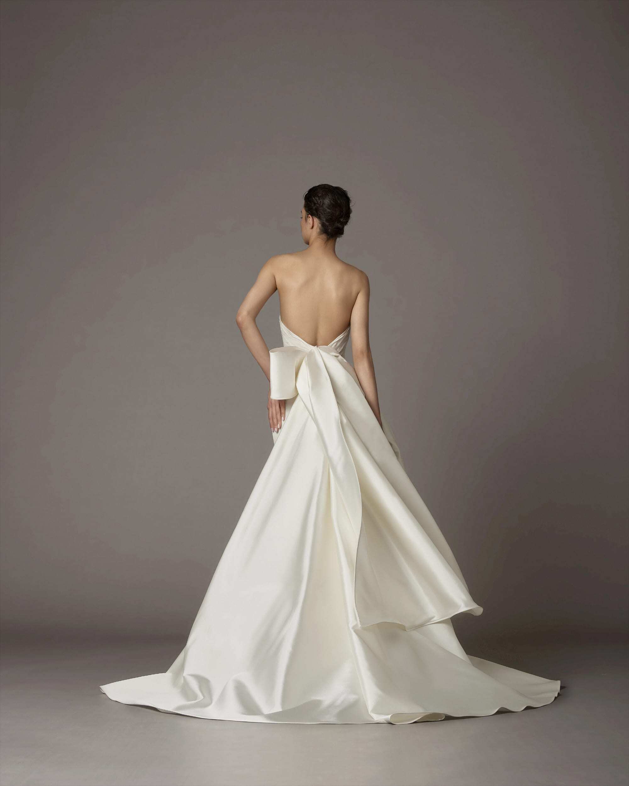 送料無料!ウエディングドレス ベアトップ ビスチェドレス マーメイドライン 取り外しトレーン 花柄のモチーフ刺繍が美しく バックリボン かわいい 高級サテン トレーン オーダードレス ハンドメイド エレガント 優雅 花嫁 ハンドメイド オーダードレス 結婚式/前撮り/二次会/2次会/披露宴/演奏会/音楽会 ガーデンウェディング | David1021k Dress(ダヴィドレス)