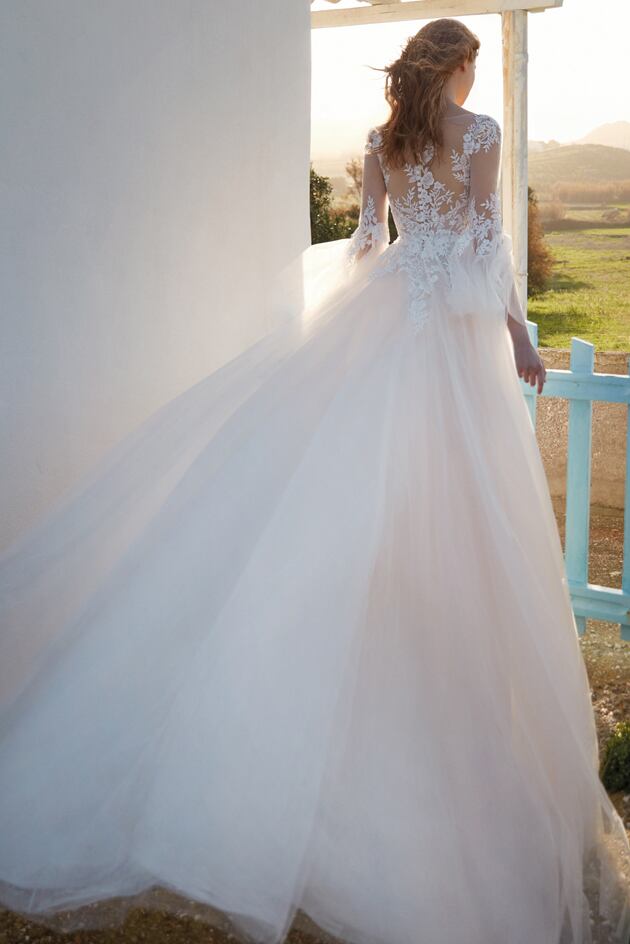 豪華!送料無料!ウエディングドレス レースドレス 上品レース 長袖 かわいい フレア袖/ラッパ袖 トレーン ソフトチュール オーダードレス ハンドメイド エレガント 優雅 花嫁 ハンドメイド オーダードレス 結婚式/前撮り/二次会/2次会/披露宴/演奏会/音楽会 ガーデンウェディング | David1021k Dress(ダヴィドレス)