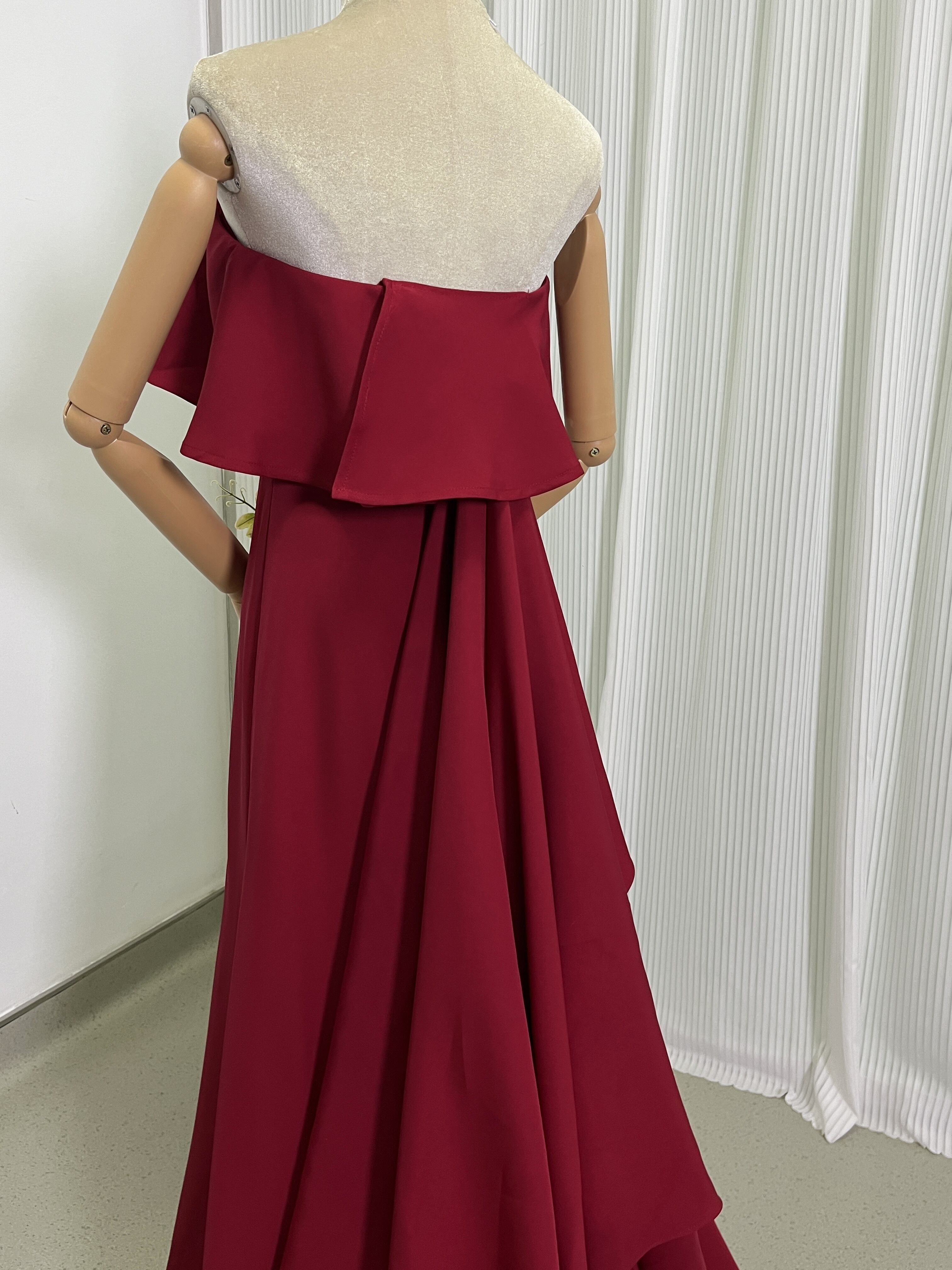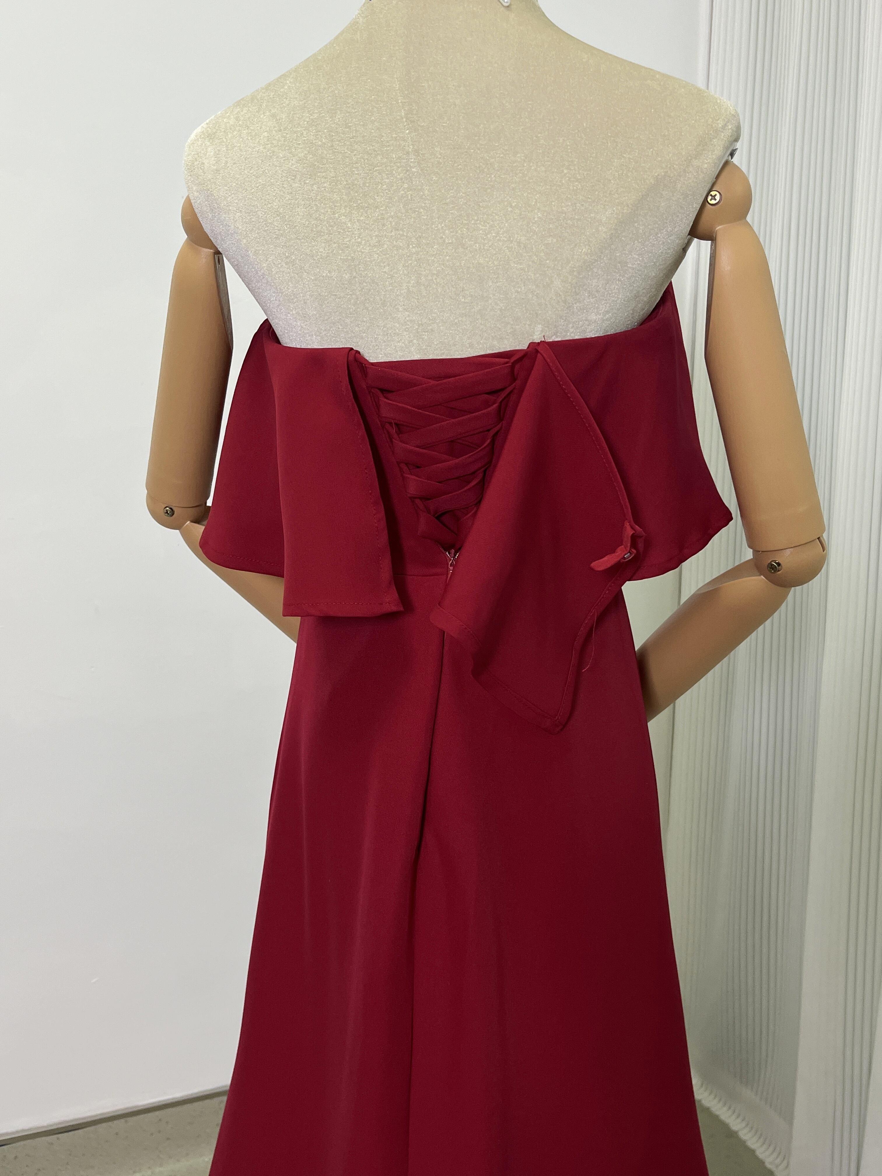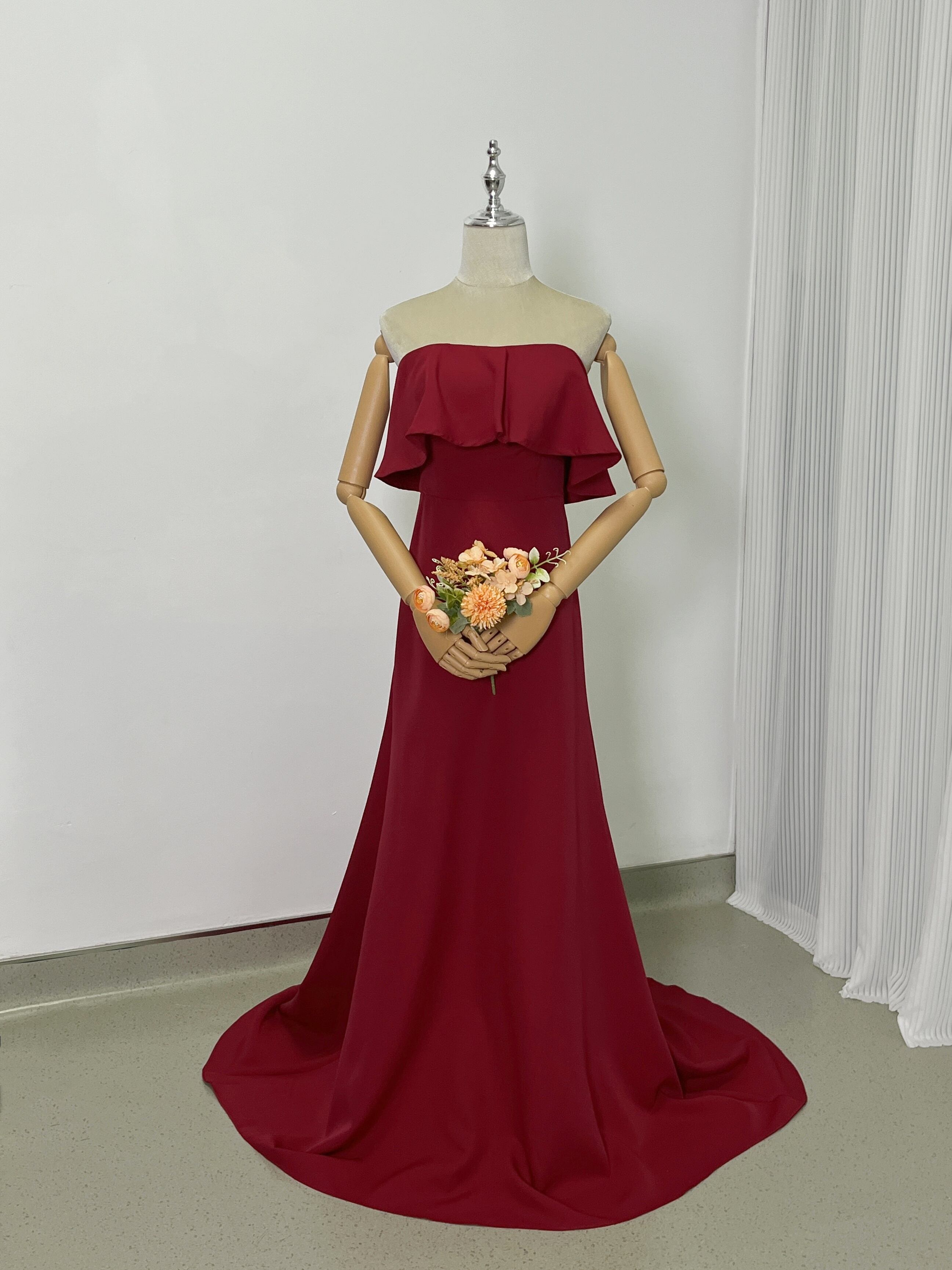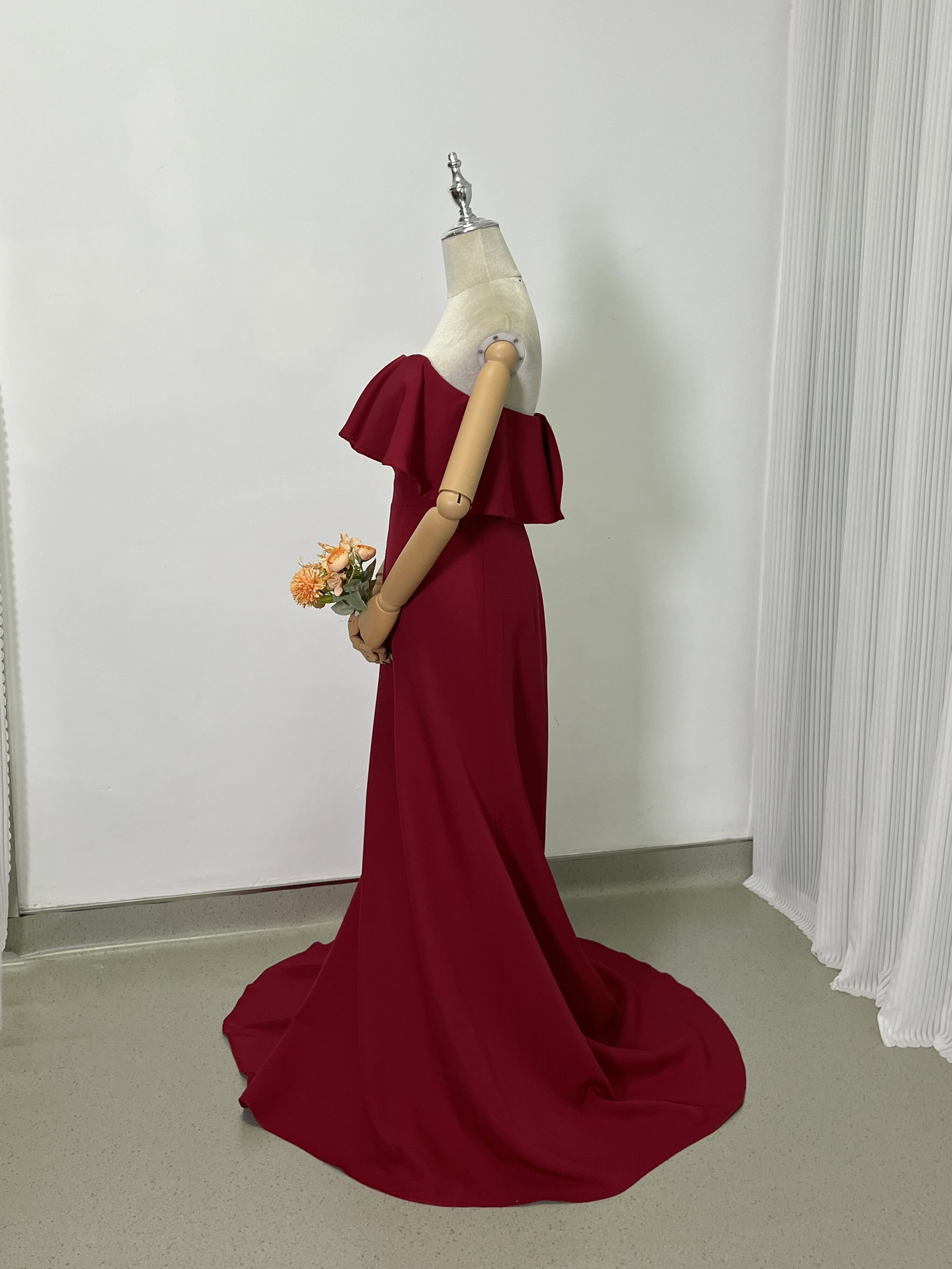 テラコッタ色 オフショルダー カラードレス 高級イタリアサテン ソフトマーメイドライン前撮り/結婚式