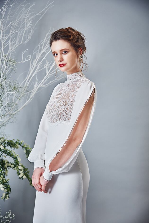 高品質!送料無料!ウエディングドレス マーメイドライン 長袖 上品レース ハイネック かわいい エレガント 優雅 オーダードレス ハンドメイド 花嫁 トレーン ハンドメイド オーダードレス 結婚式/前撮り/二次会/2次会/披露宴/演奏会/音楽会 合コン パーティードレス | David1021k Dress(ダヴィドレス)