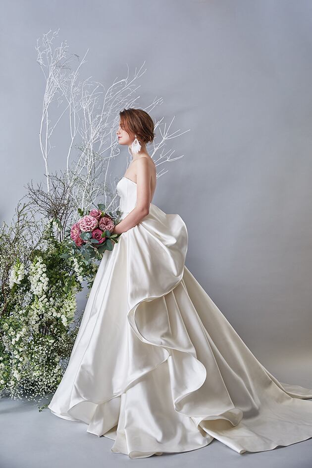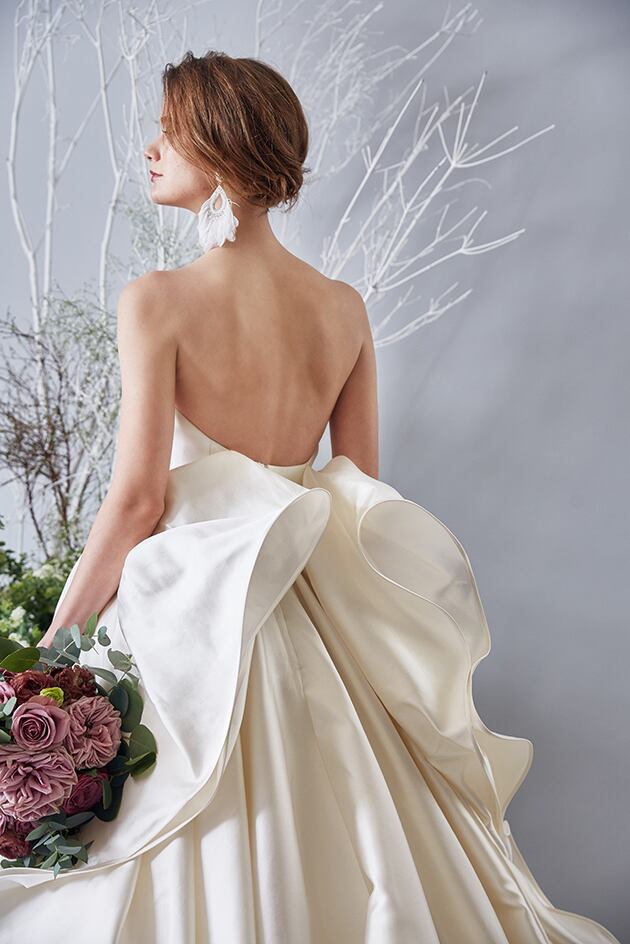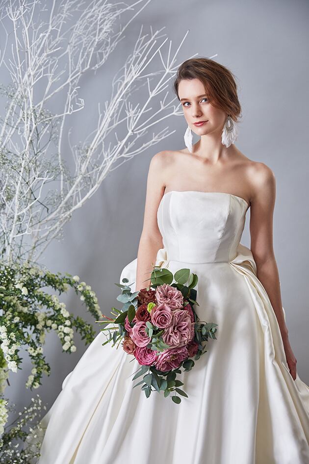送料無料!ウエディングドレス ベアトップ 華やかなトレーン 取り外しリボン プリンセスライン バックリボン かわいい 高級サテン トレーン オーダードレス ハンドメイド エレガント 優雅 花嫁 豪華 ハンドメイド オーダードレス 結婚式/前撮り/二次会/2次会/披露宴/演奏会/音楽会 ガーデンウェディング | David1021k Dress(ダヴィドレス)
