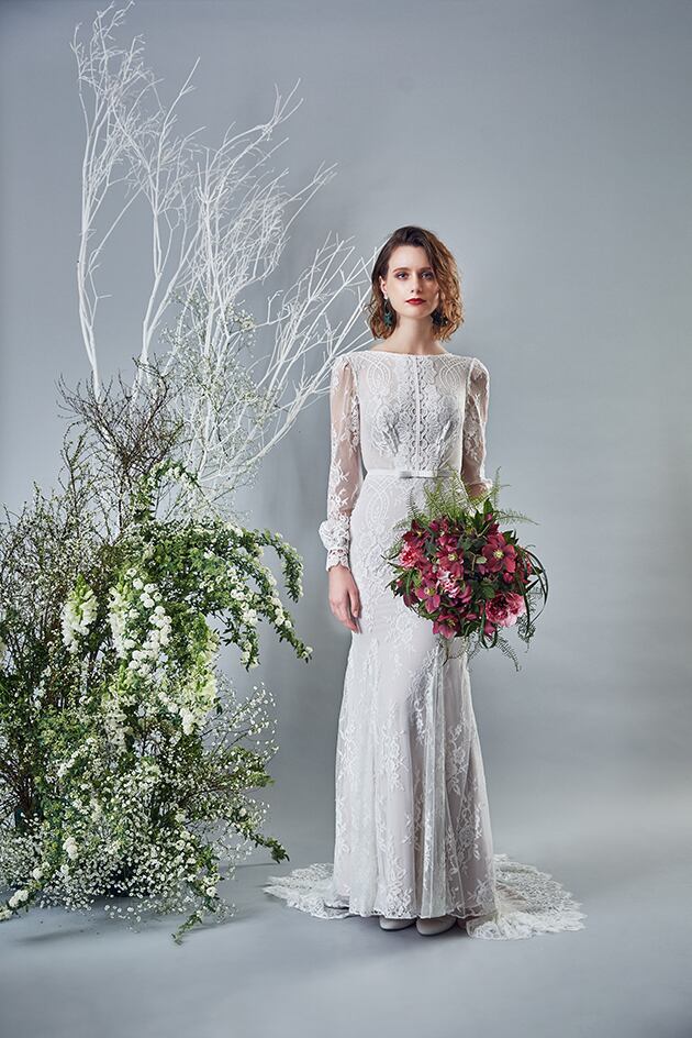 高品質!送料無料!ウエディングドレス マーメイドライン 長袖 上品レース 総レース 背中見せ/バックレス かわいい エレガント 優雅 オーダードレス ハンドメイド 花嫁 トレーン ハンドメイド オーダードレス 結婚式/前撮り/二次会/2次会/披露宴/演奏会/音楽会 合コン パーティードレス | David1021k Dress(ダヴィドレス)