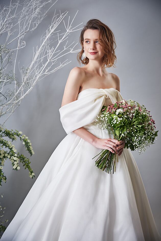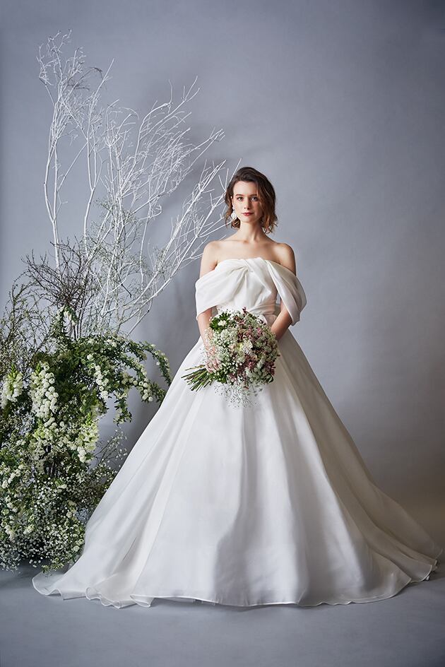 送料無料!ウエディングドレス オフショルダー 華やかなトレーン 取り外しリボン プリンセスライン バックリボン かわいい トレーン オーダードレス ハンドメイド エレガント 優雅 花嫁 豪華 ハンドメイド オーダードレス 結婚式/前撮り/二次会/2次会/披露宴/演奏会/音楽会 ガーデンウェディング | David1021k Dress(ダヴィドレス)
