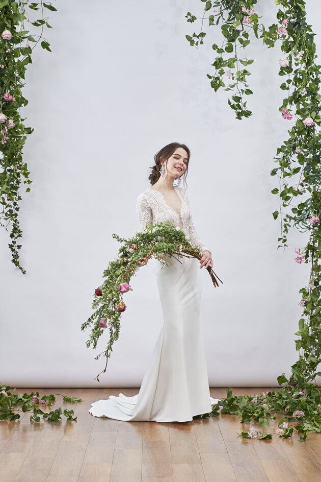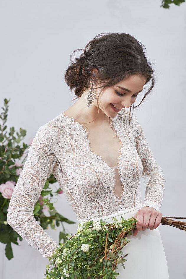 送料無料!ウエディングドレス 長袖 上品レース マーメイドライン 背中見せ/バックレス かわいい トレーン オーダードレス ハンドメイド エレガント 優雅 花嫁 豪華 ハンドメイド オーダードレス 結婚式/前撮り/二次会/2次会/披露宴/演奏会/音楽会 ガーデンウェディング | David1021k Dress(ダヴィドレス)