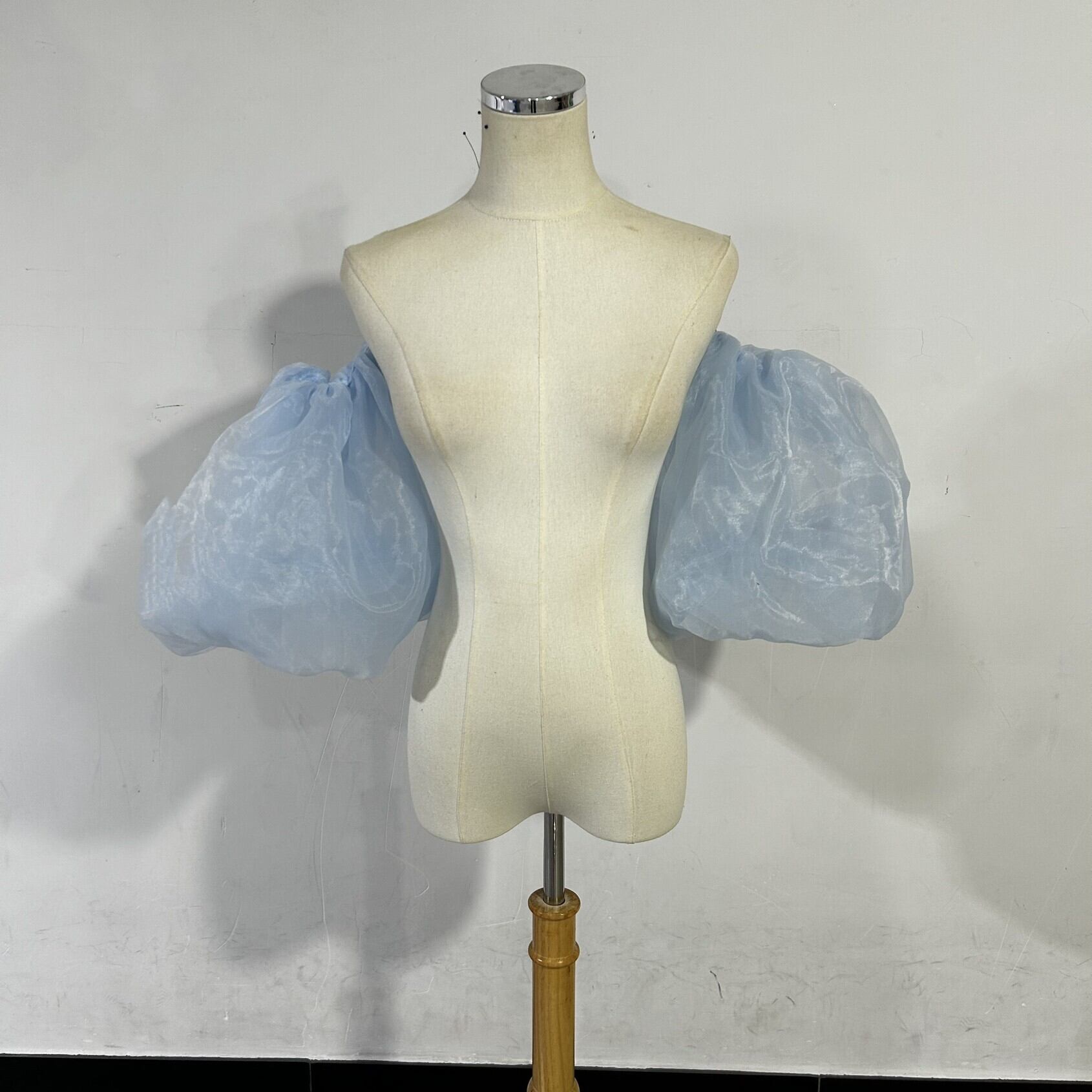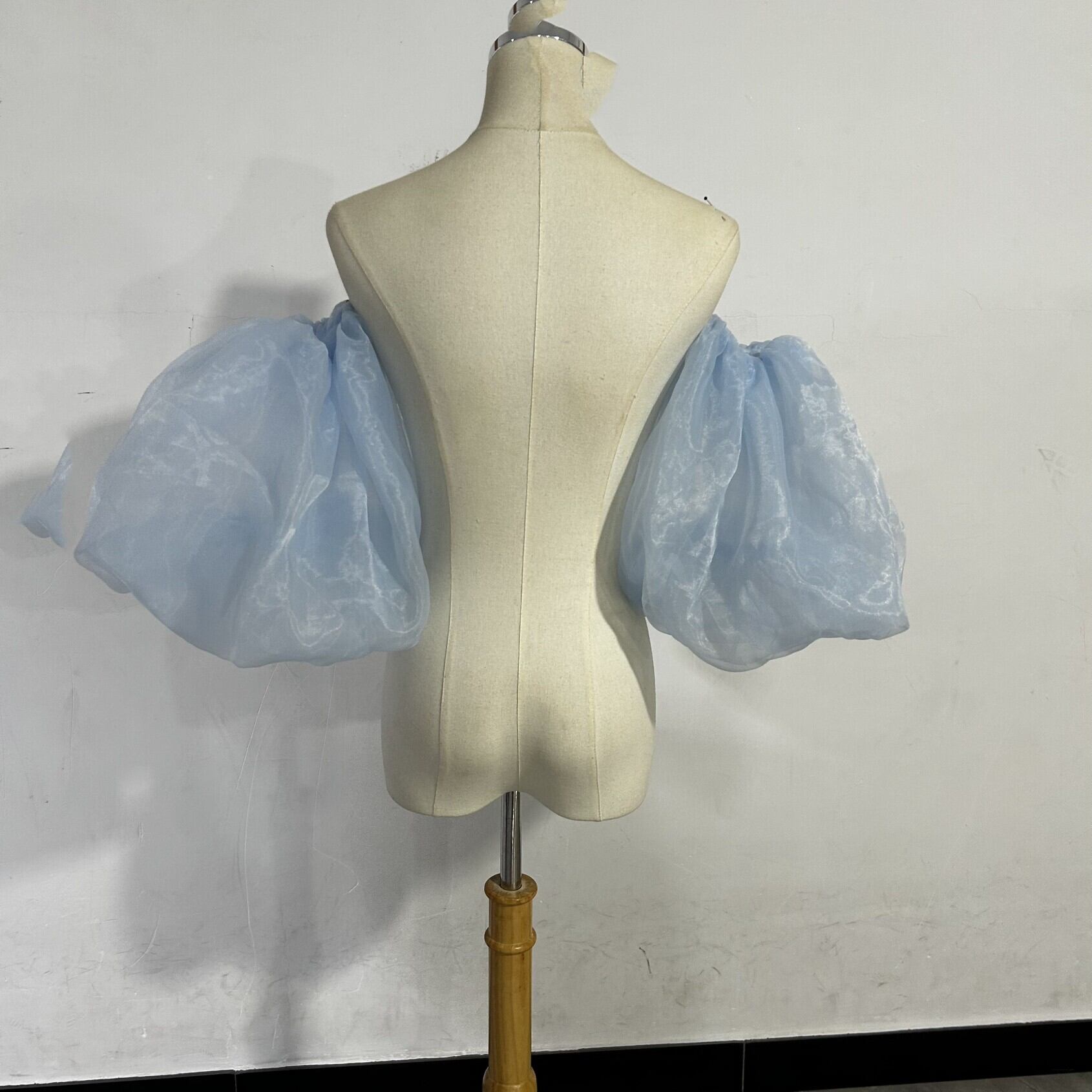 送料無料!大人気上昇 取り外し袖 ブルー ショルダーの付け袖 パフスリーブ オーダー可能