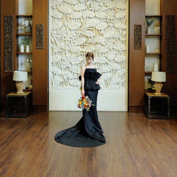 実例写真!送料無料!人気上昇! 黒カラードレス  ロングトレーン /結婚式/披露宴