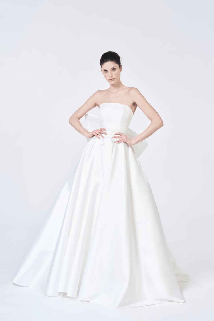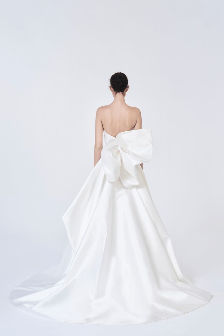 送料無料!ウエディングドレス ベアトップ バックリボン 華やかなトレーン 取り外しリボン かわいい 高級サテン トレーン オーダードレス ハンドメイド エレガント 優雅 花嫁 豪華 ハンドメイド オーダードレス 結婚式/前撮り/二次会/2次会/披露宴/演奏会/音楽会 ガーデンウェディング | David1021k Dress(ダヴィドレス)