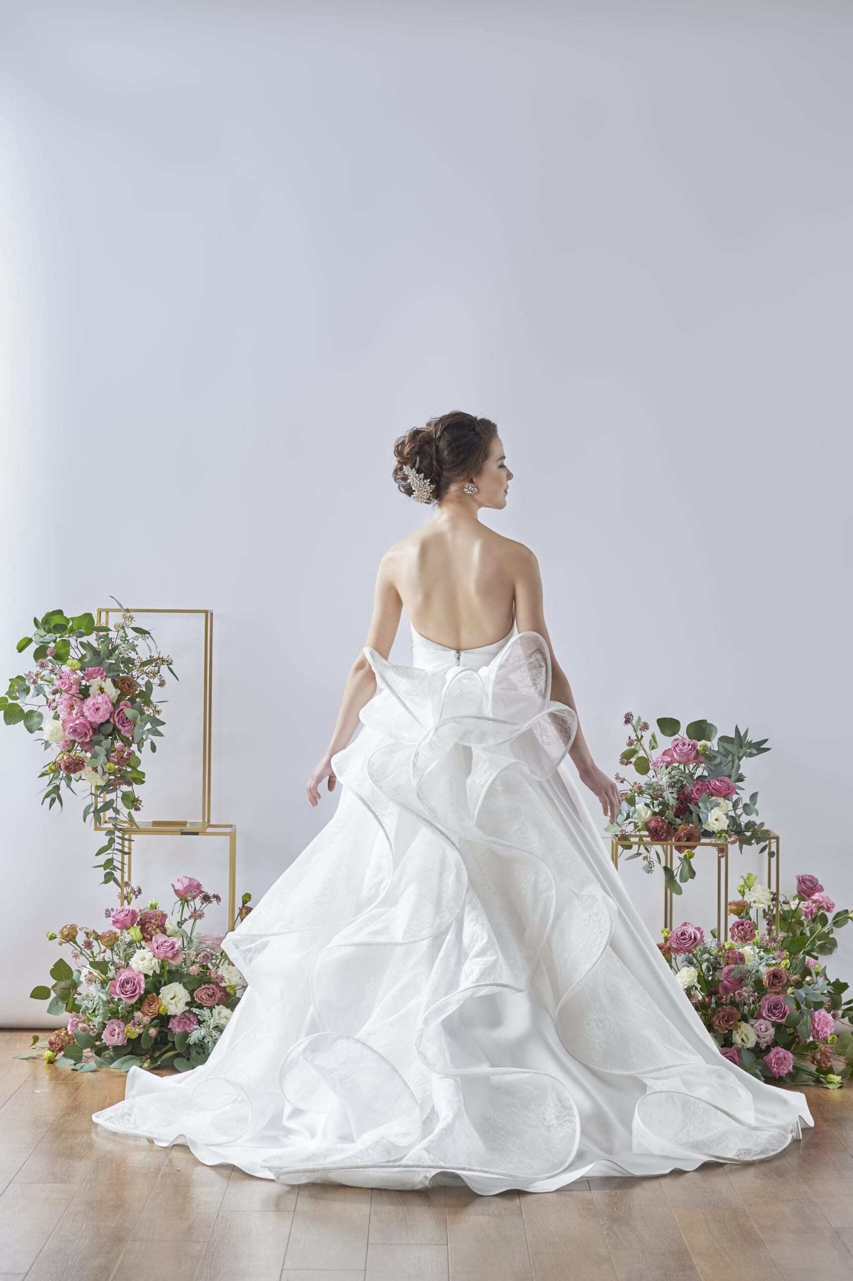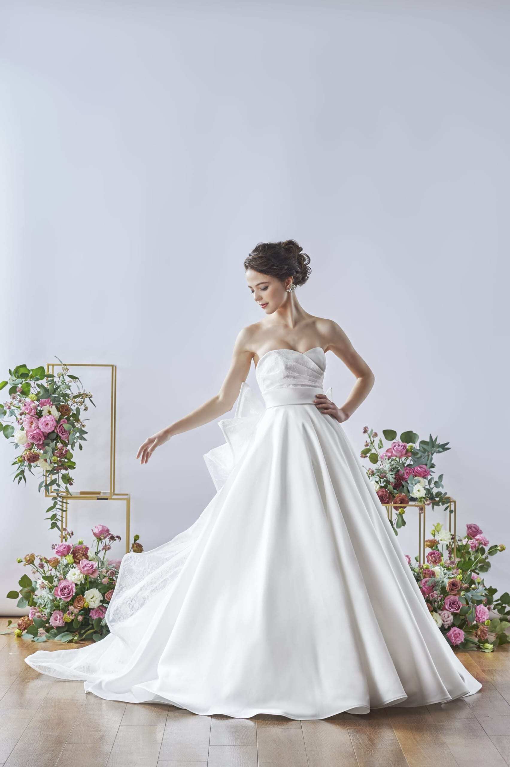 送料無料!ウエディングドレス ベアトップ バックリボン 華やかなトレーン 取り外しリボン かわいい 高級サテン トレーン オーダードレス ハンドメイド エレガント 優雅 花嫁 豪華 ハンドメイド オーダードレス 結婚式/前撮り/二次会/2次会/披露宴/演奏会/音楽会 ガーデンウェディング | David1021k Dress(ダヴィドレス)