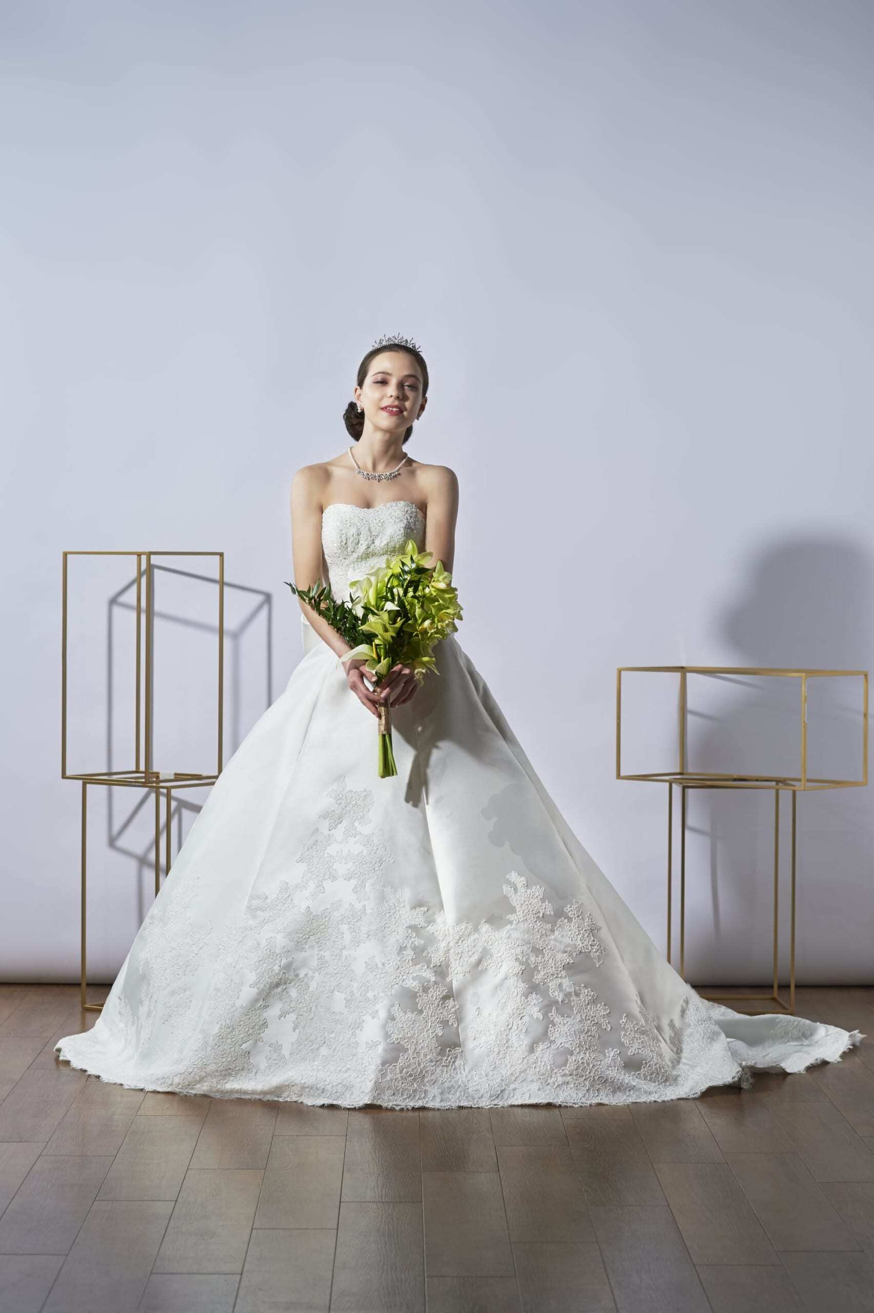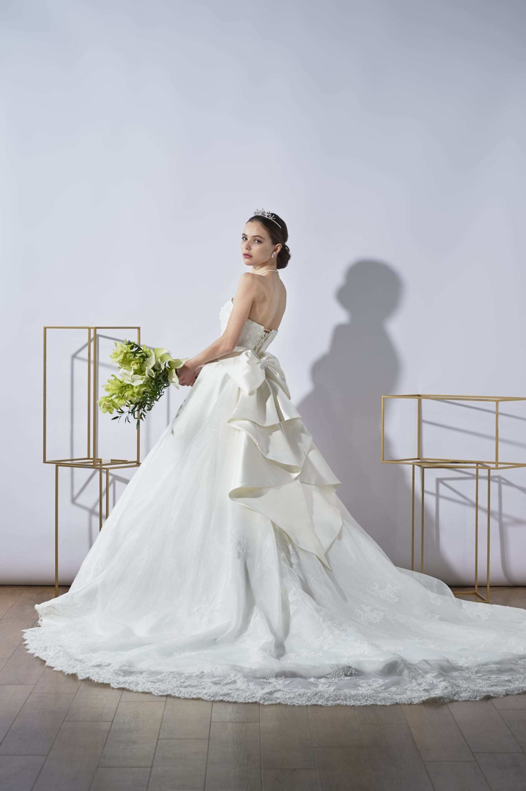 送料無料!ウエディングドレス ベアトップ オフショルダー 上品レース 華やかなトレーン ふっくら柔らかなバックリボン かわいい 高級サテン トレーン オーダードレス 背中見せ/バックレス ハンドメイド エレガント 優雅 花嫁 豪華 ハンドメイド オーダードレス 結婚式/前撮り/二次会/2次会/披露宴/演奏会/音楽会 ガーデンウェディング | David1021k Dress(ダヴィドレス)