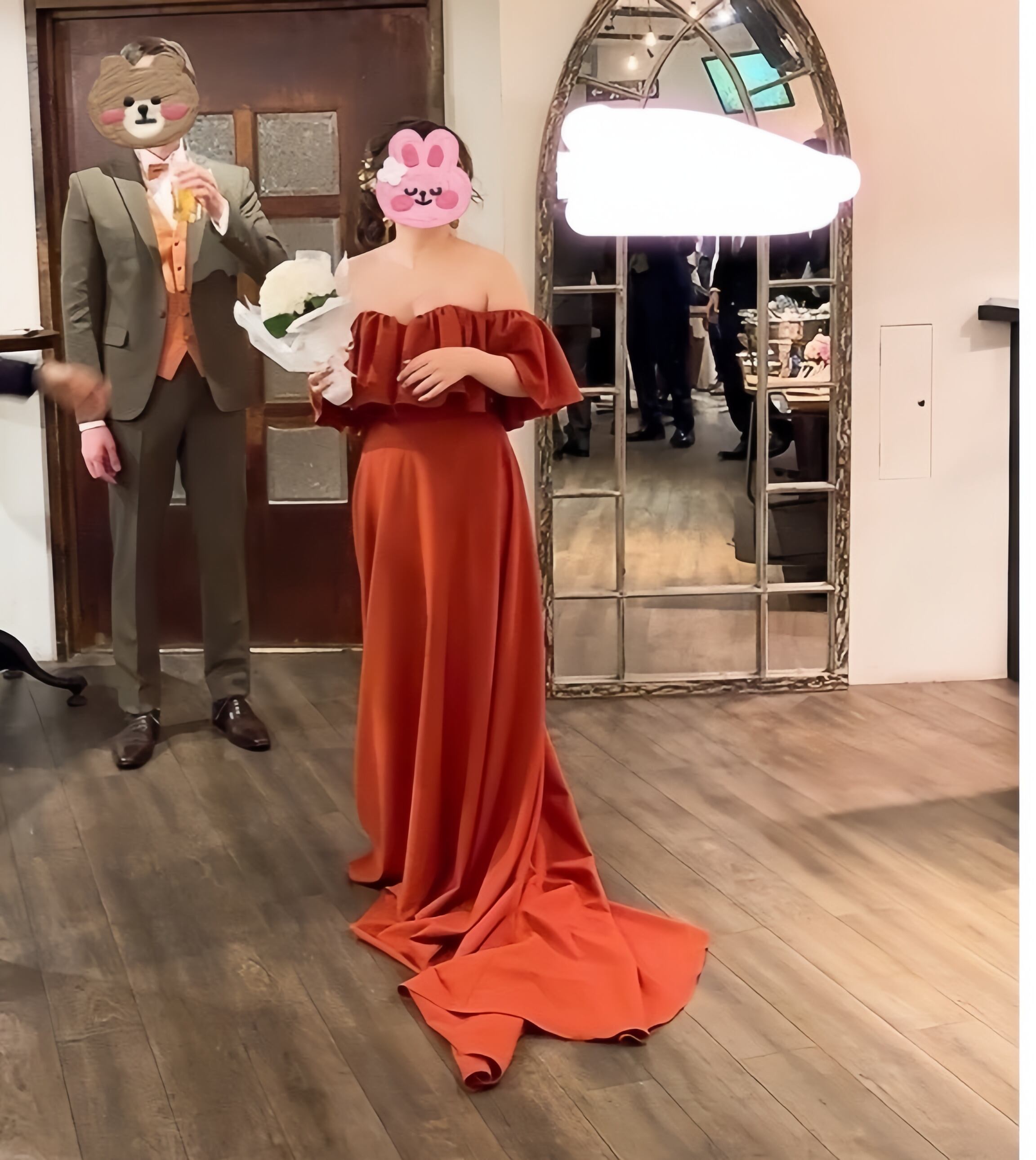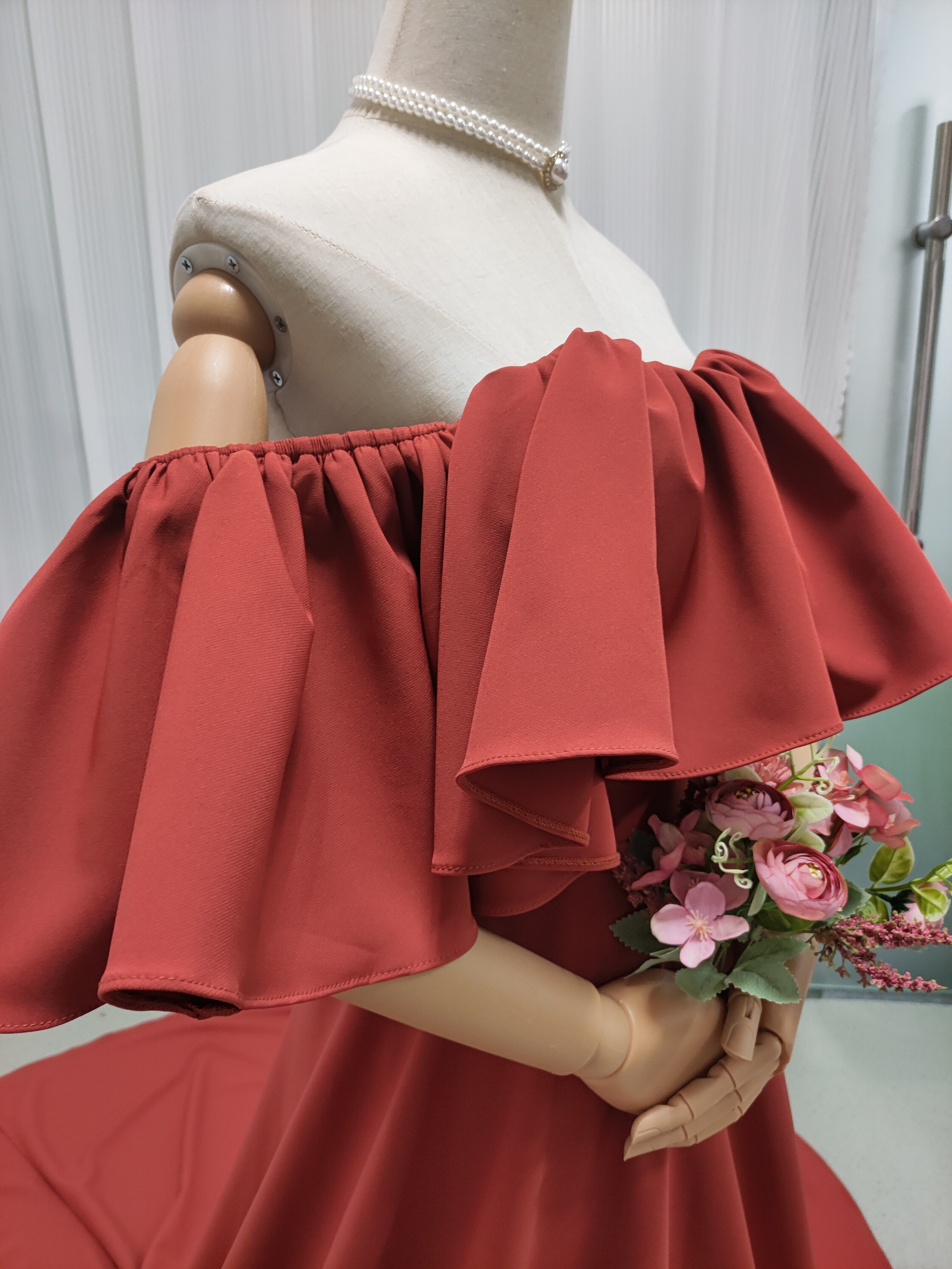 実例写真!ワインレッドカラードレス グレープ ソフトマーメイドライン前撮り/結婚式