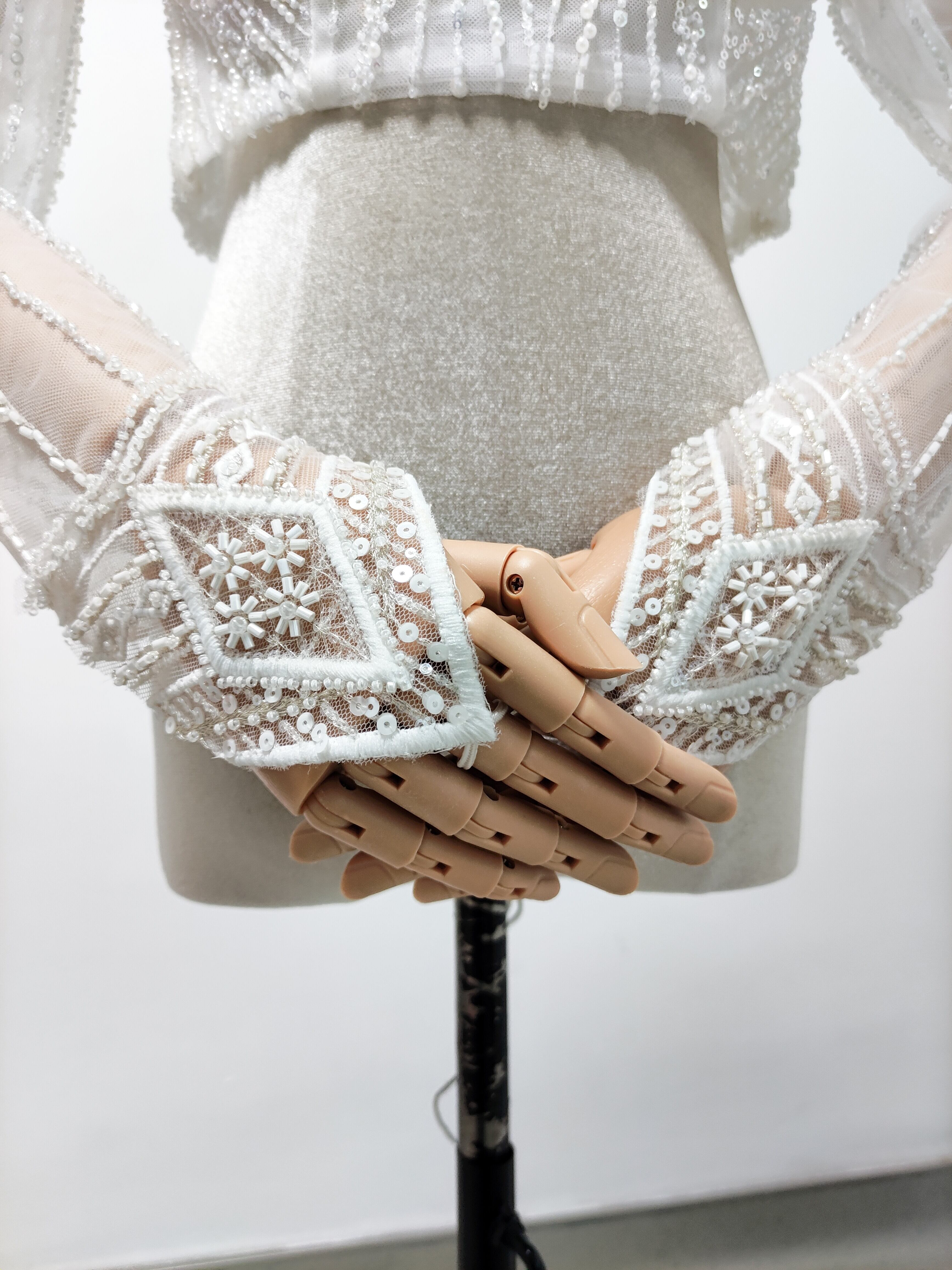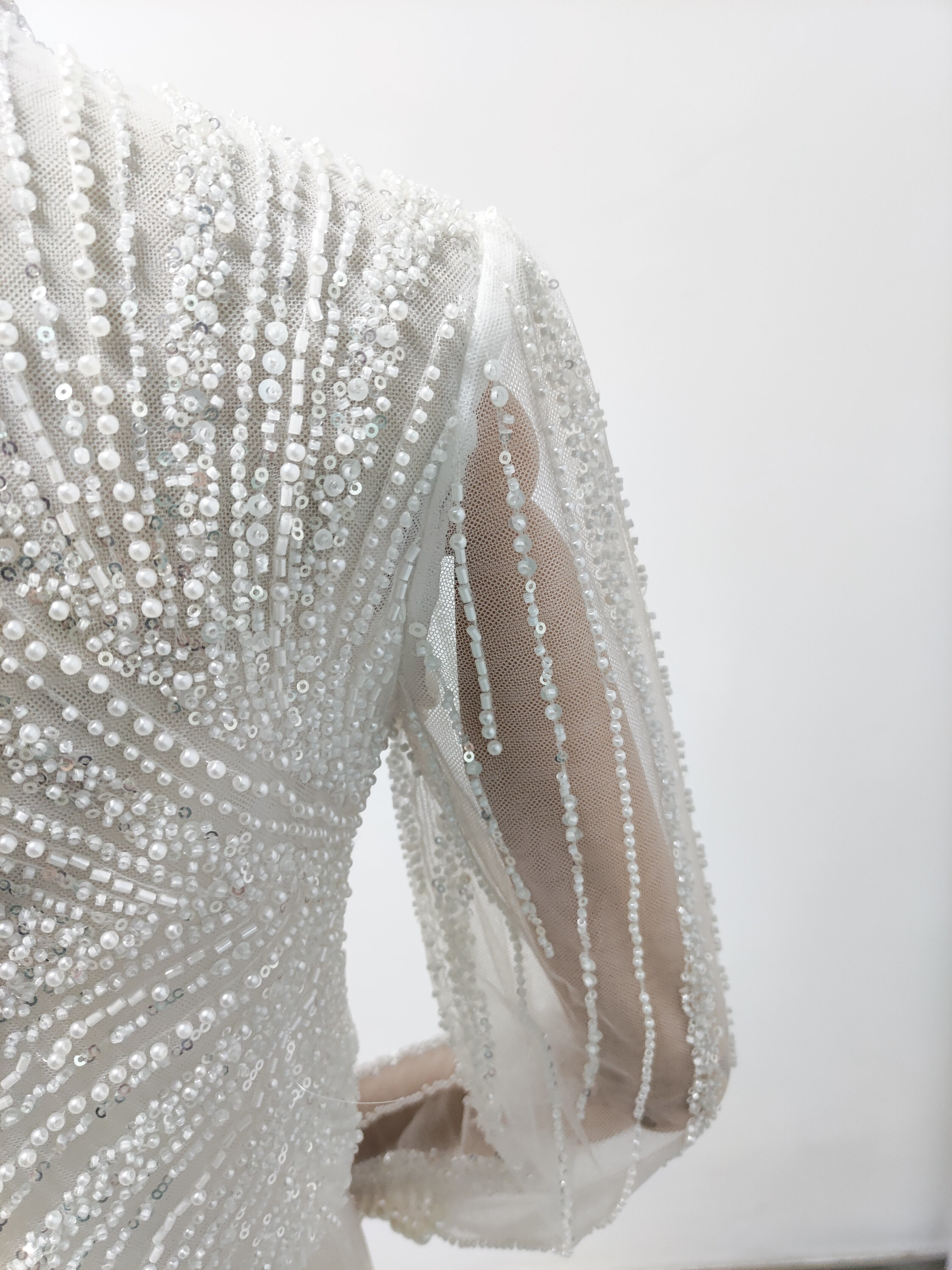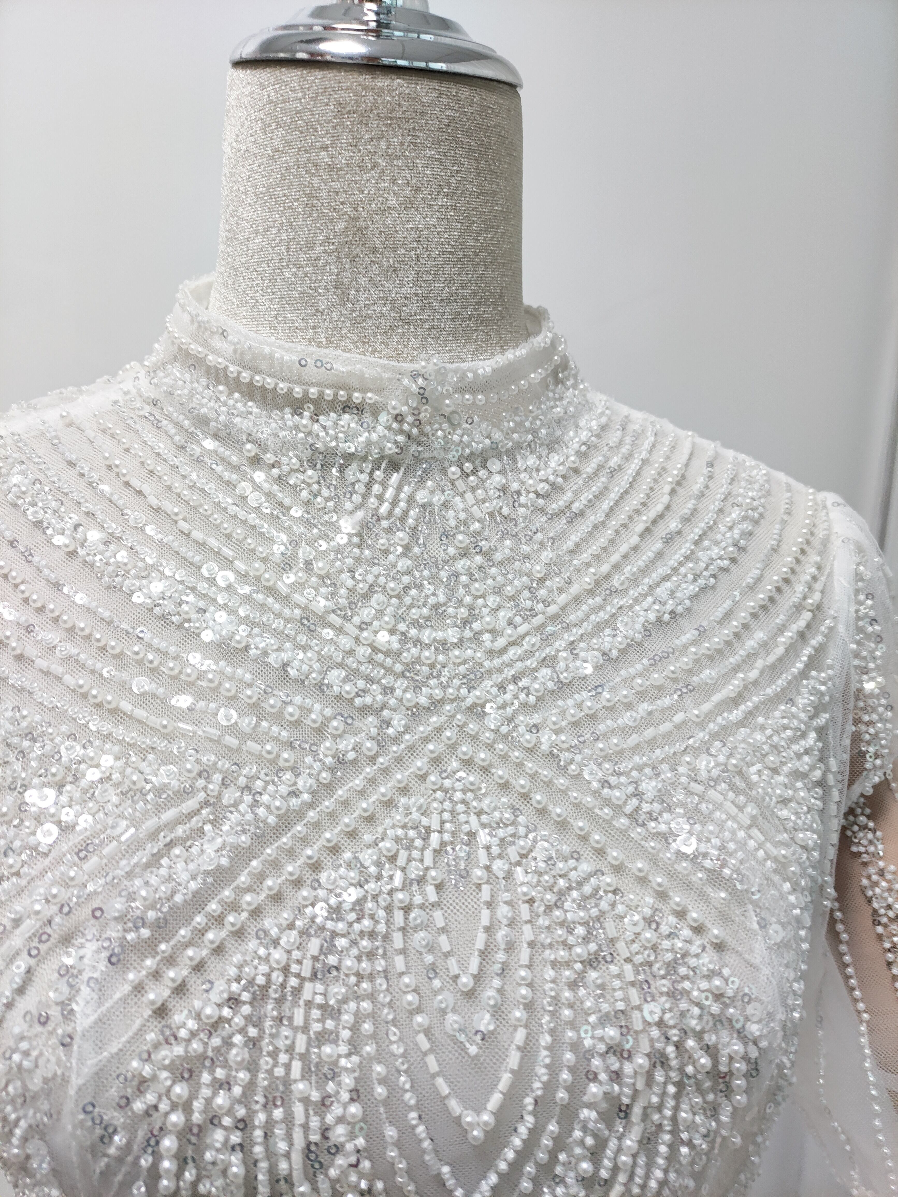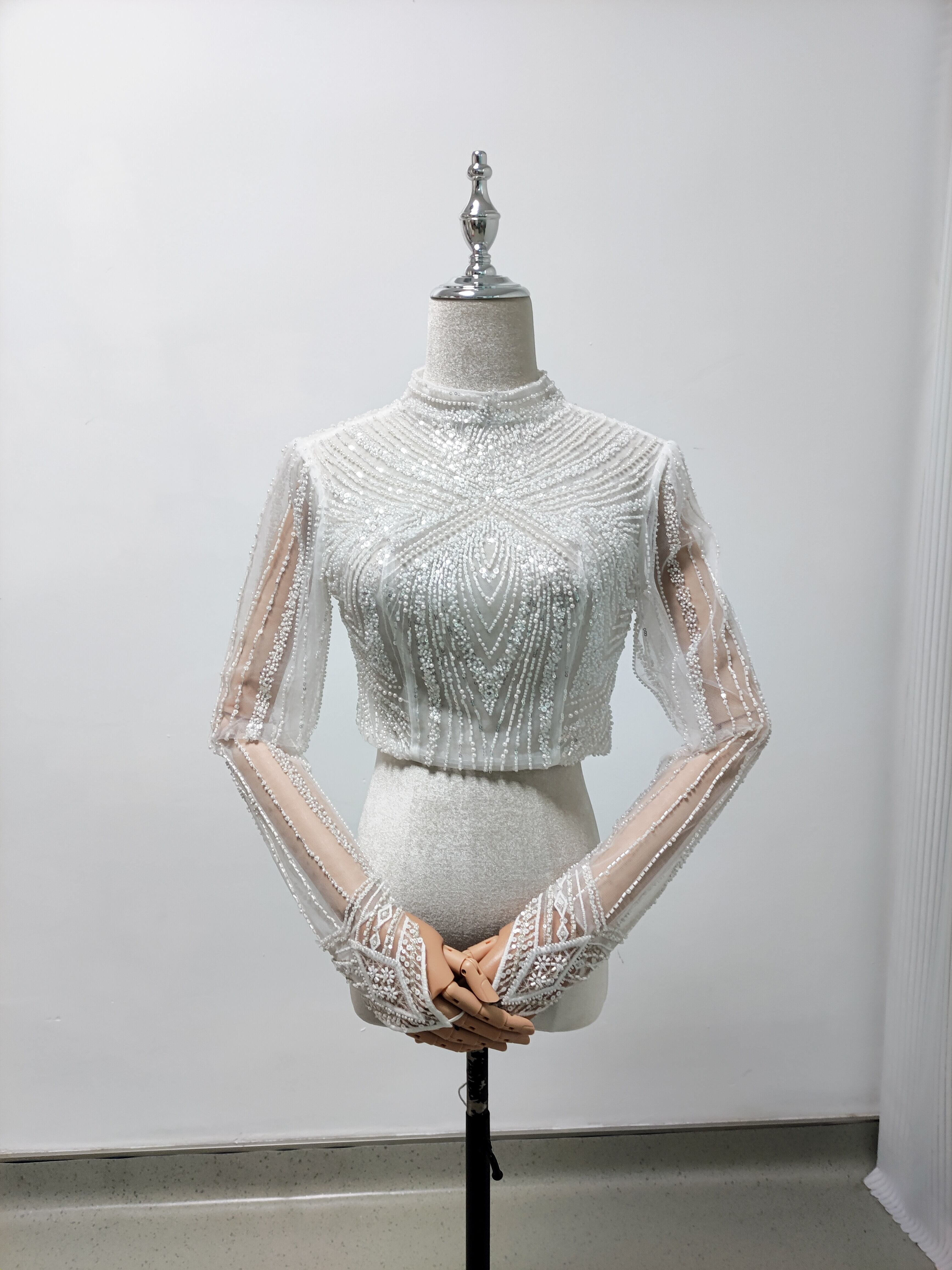 上品なくるみボタン ハイネック レースボレロ ビジュートップス キラキラのハンドビーディング ウエディングドレス