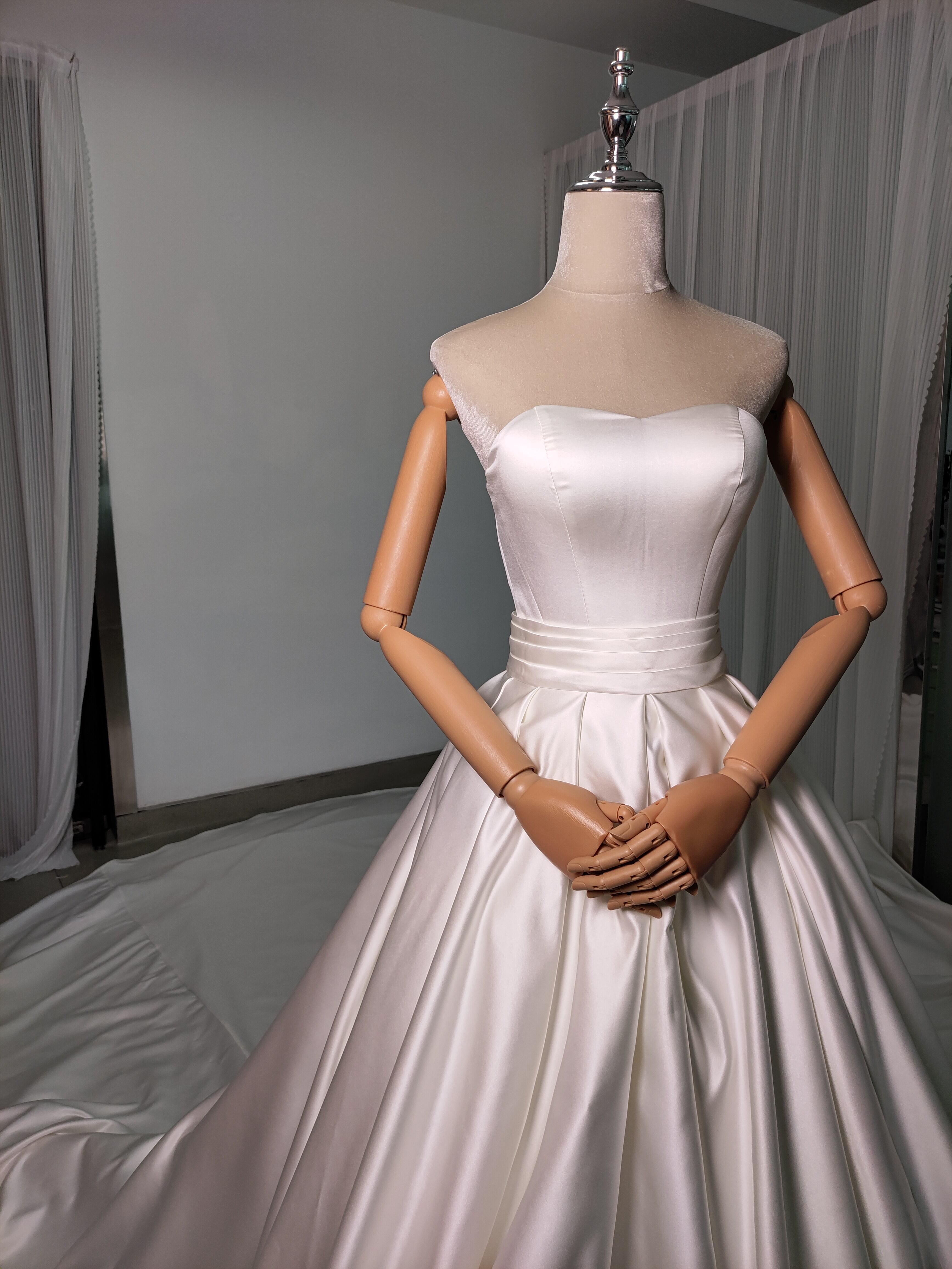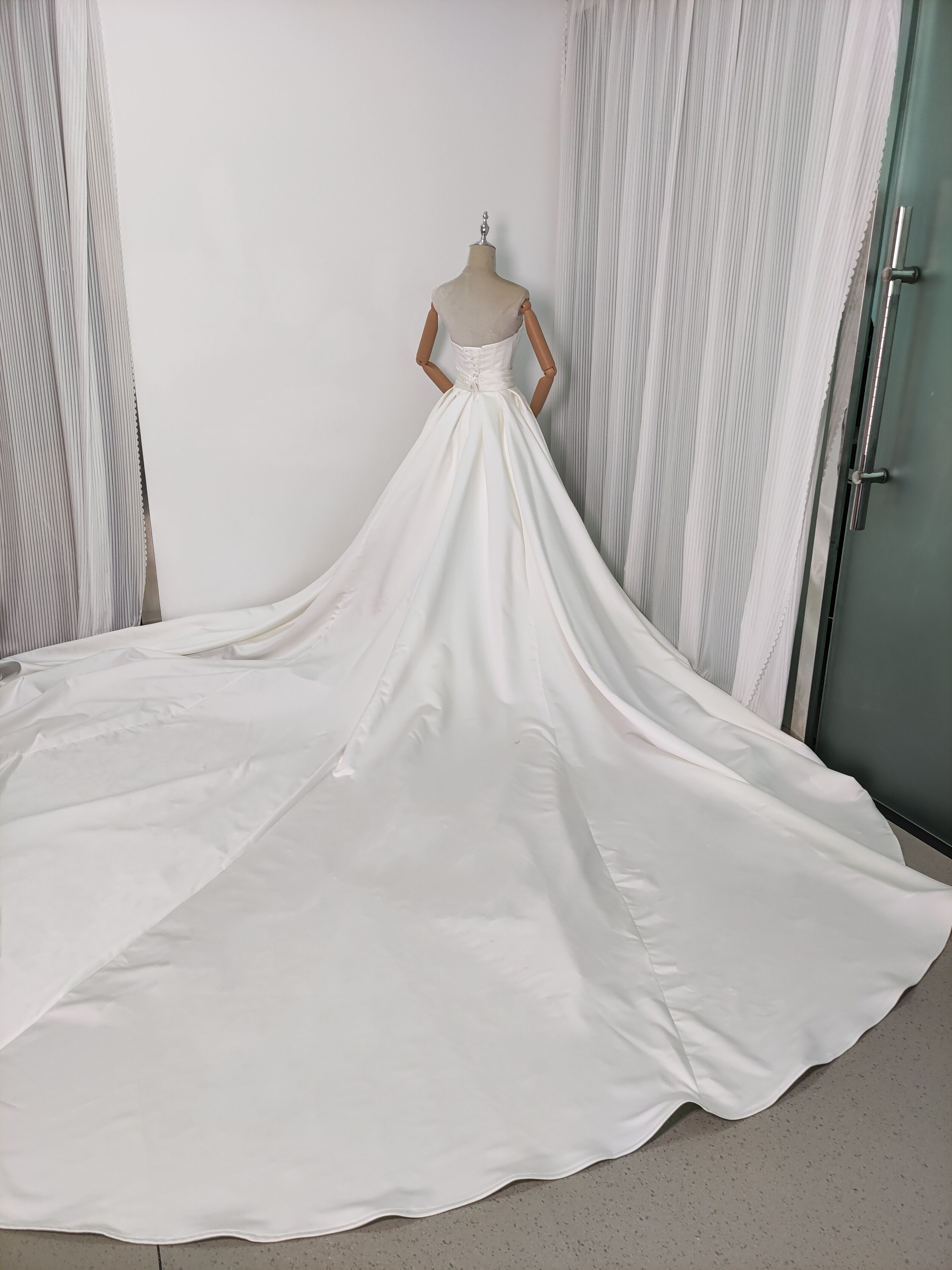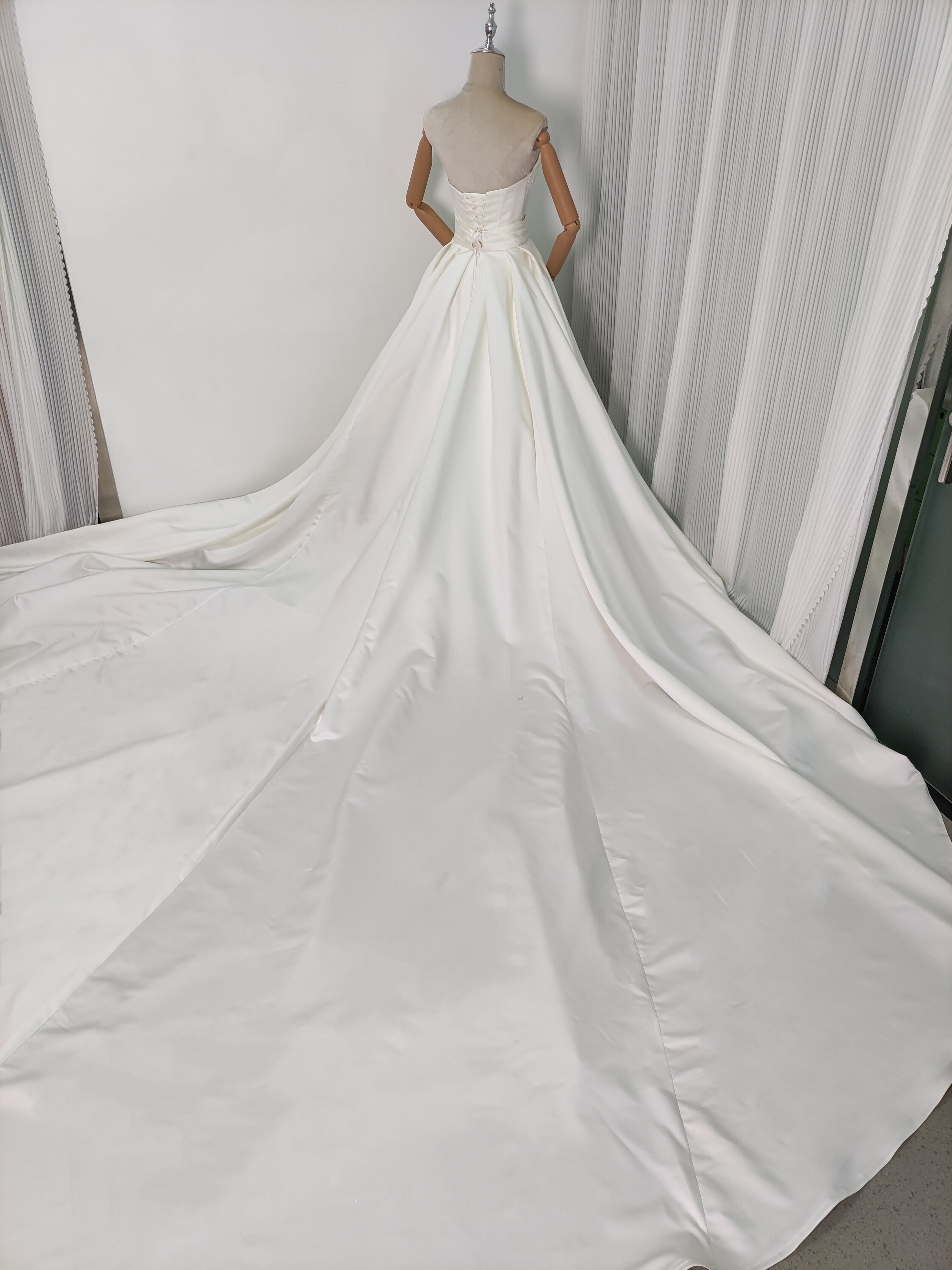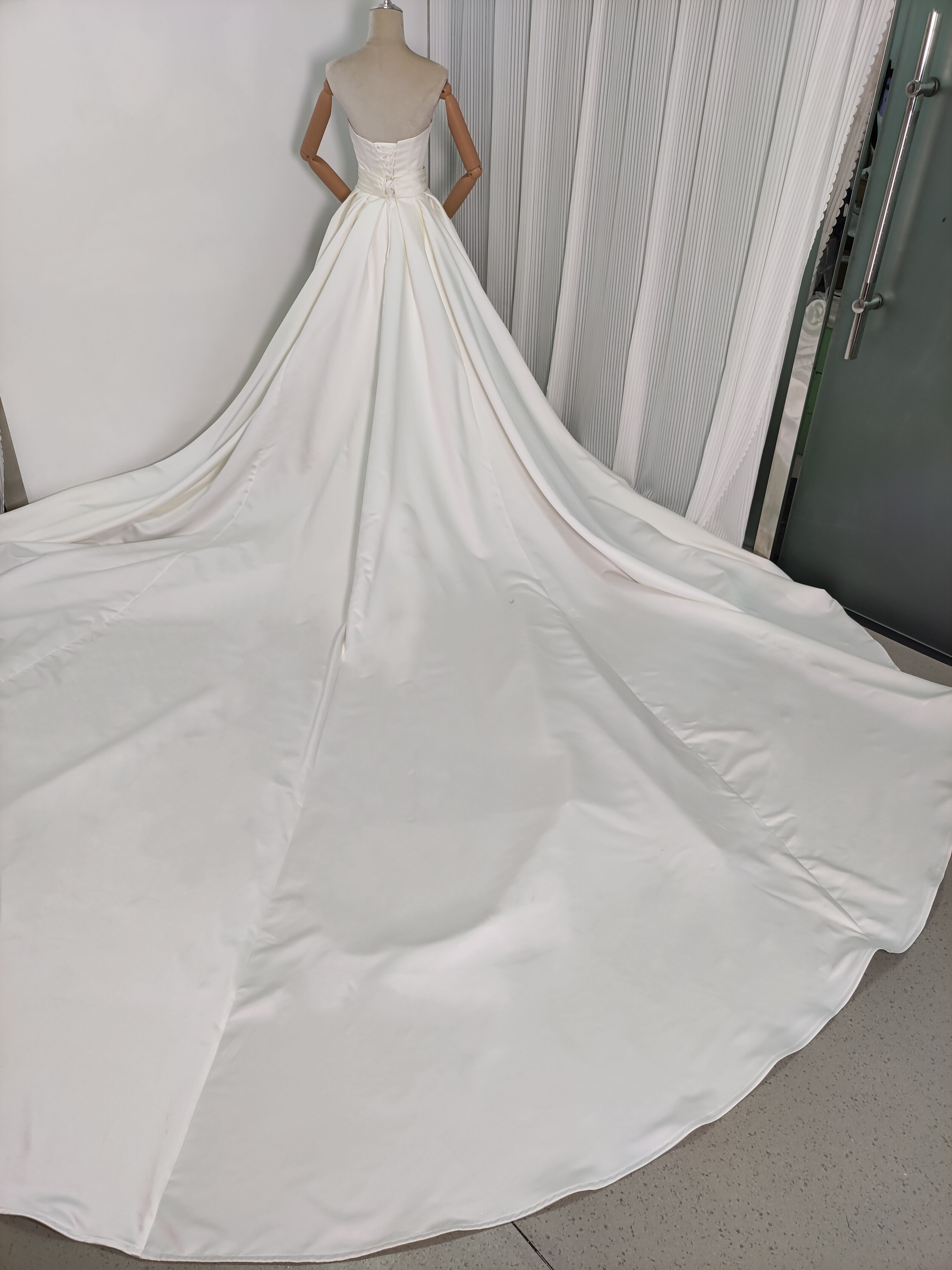 高品質!送料無料!ベアトップ ウエディング マーメイドライン 花嫁 結婚式/前撮り+豪華! 華やかなトレーンオーバースカート