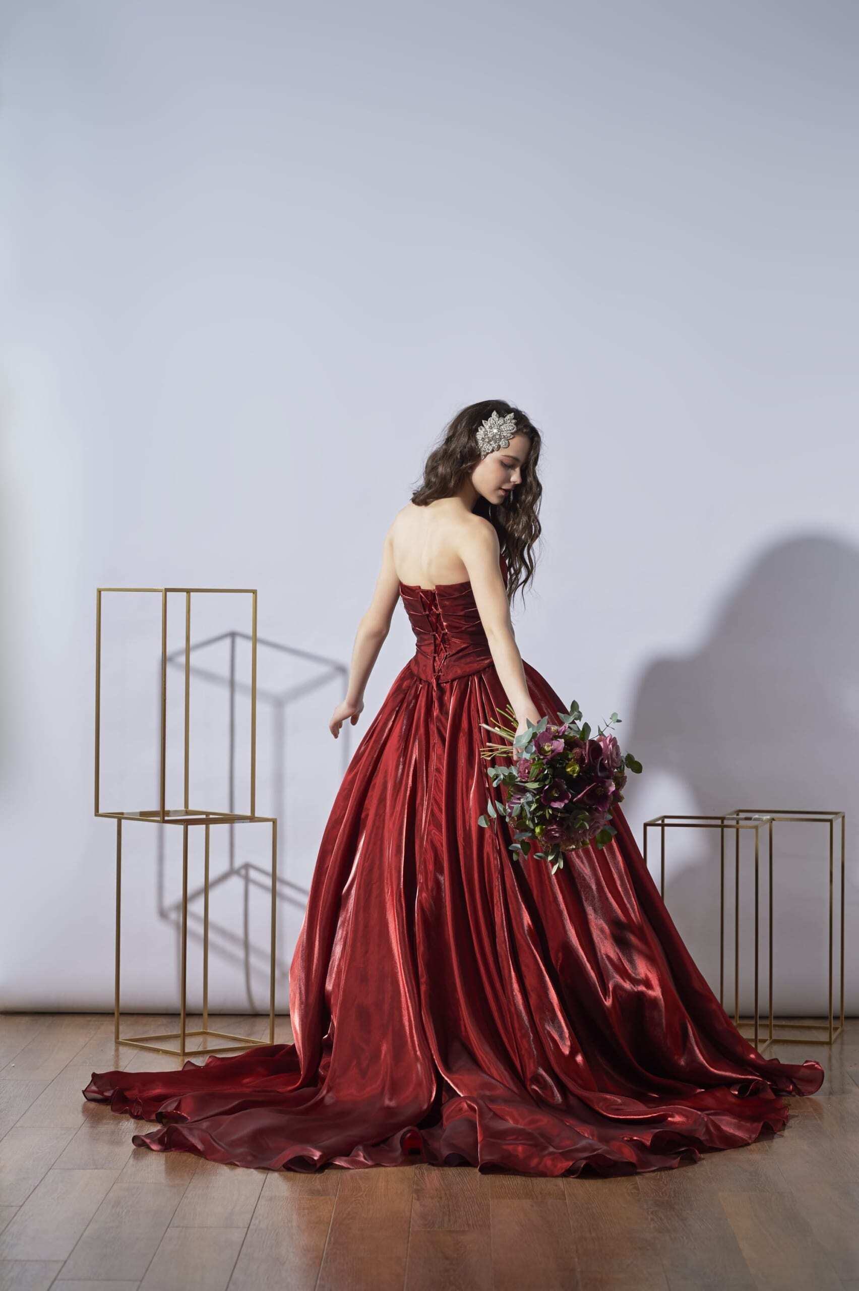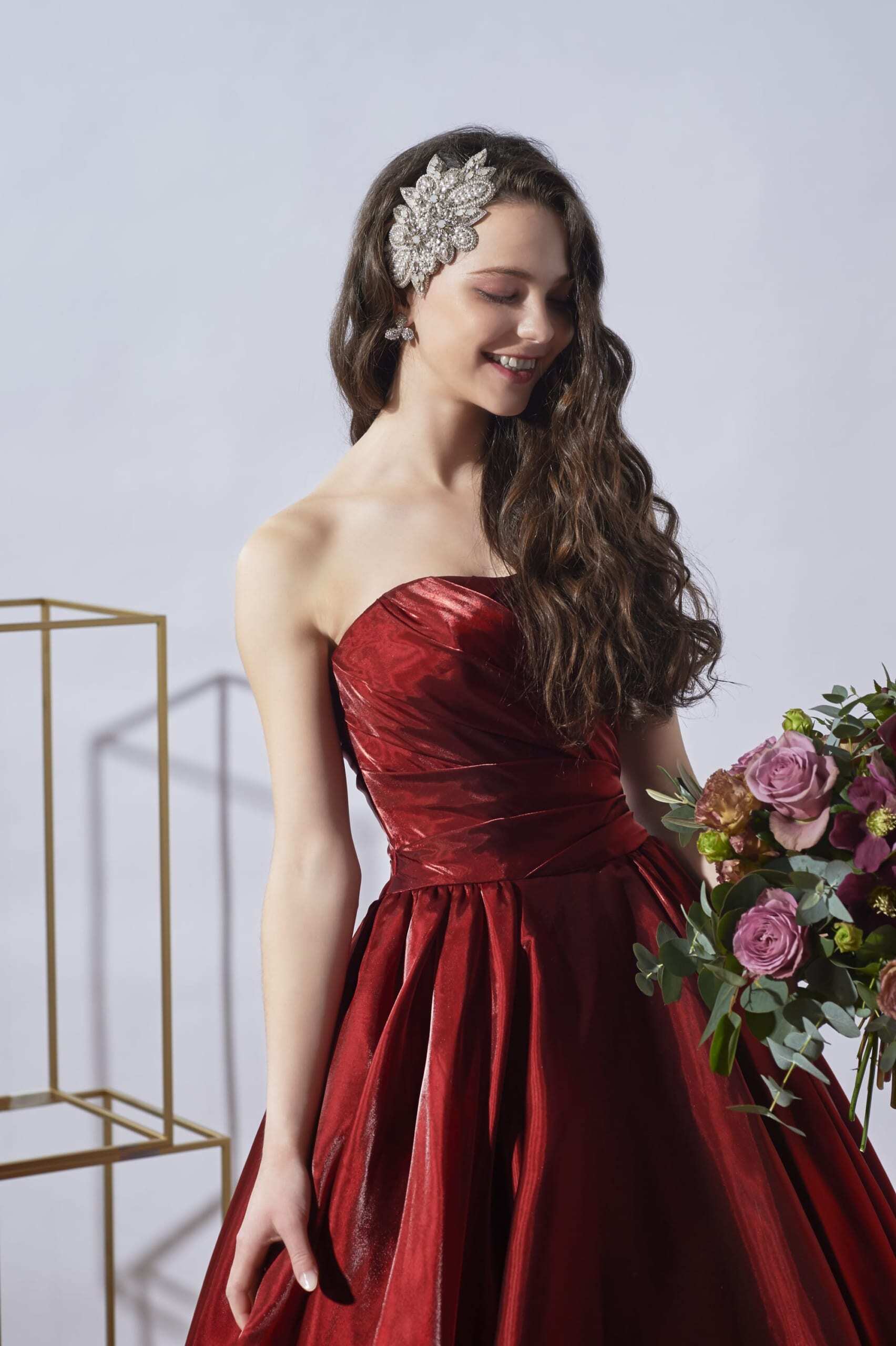 送料無料!カラードレス ベアトップ ワインレッド かわいい ボートネック 光沢感 上品レースボレロ トレーン オーダードレス ハンドメイド エレガント プリンセスライン ウエディングドレス 優雅 花嫁 結婚式/前撮り/二次会 セレモニー イブニングドレス 合コン パーティードレス ミディアムドレス | David1021k Dress(ダヴィドレス)