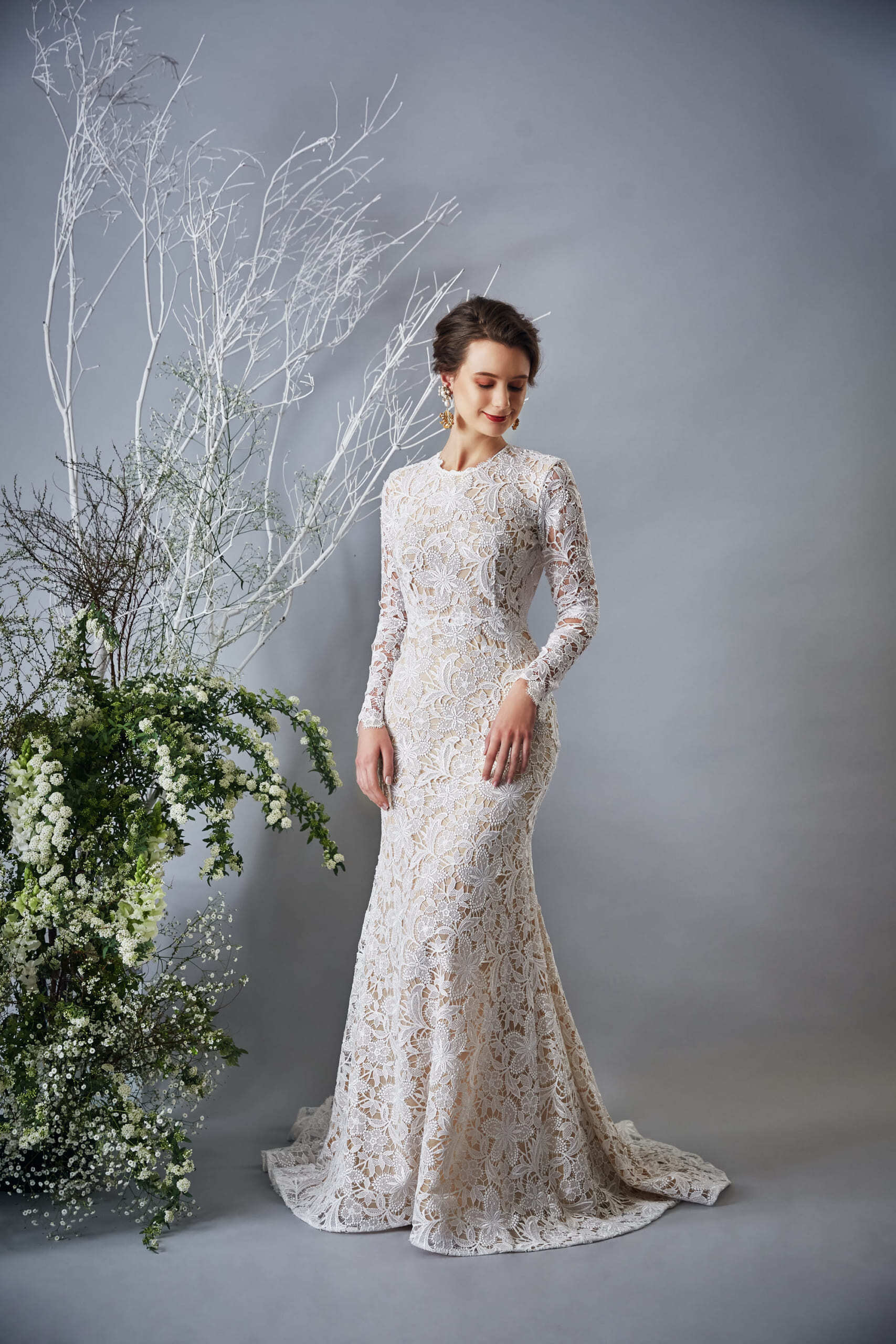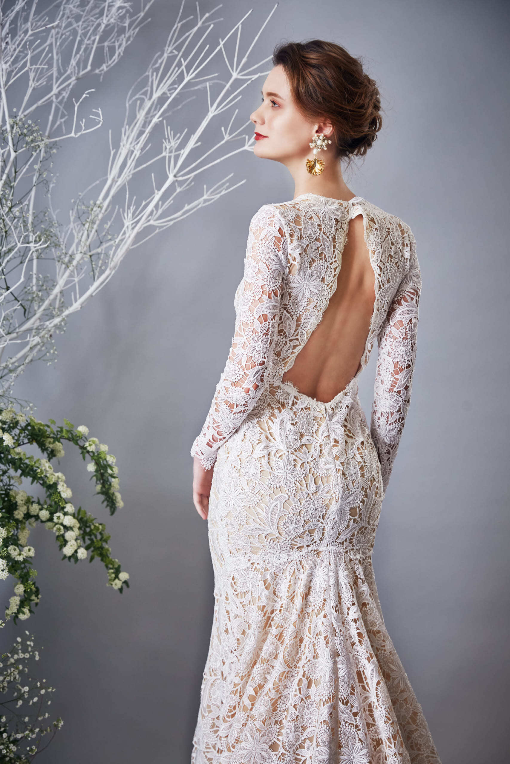 高品質!送料無料!ウエディングドレス マーメイドライン 長袖 上品レース 総レース 背中見せ/バックレス かわいい エレガント 優雅 オーダードレス ハンドメイド 花嫁 トレーン ハンドメイド オーダードレス 結婚式/前撮り/二次会/2次会/披露宴/演奏会/音楽会 合コン パーティードレス