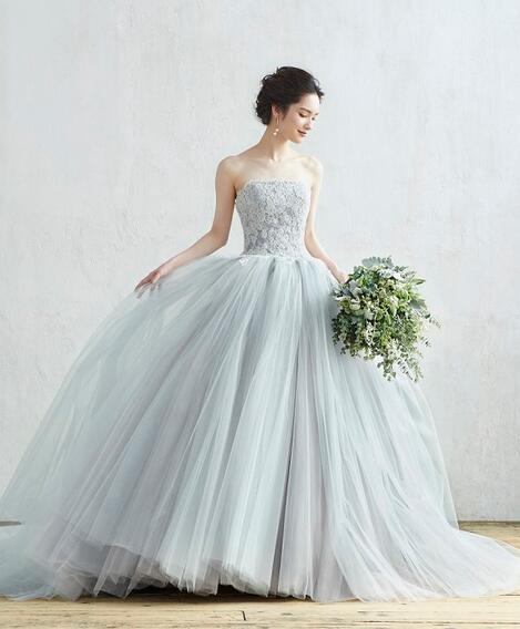 高品質!送料無料!カラードレス 爽やかで優しいブルー 青 ベアトップ かわいい エレガント 上品レース 優雅 オーダードレス ソフトチュール ハンドメイド 花嫁 トレーン 結婚式/前撮り/二次会/2次会/披露宴/演奏会/音楽会 合コン パーティードレス | David1021k Dress(ダヴィドレス)