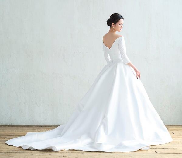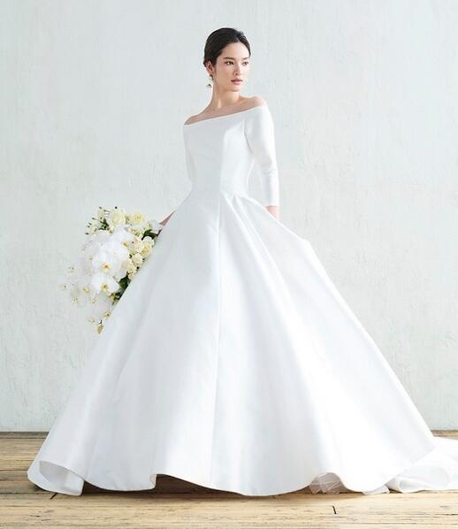 高品質!送料無料!ウエディングドレス オフショルダー 七分袖丈 かわいい 高級サテン トレーン オーダードレス ハンドメイド エレガント 優雅 花嫁 豪華 ハンドメイド オーダードレス 結婚式/前撮り/二次会/2次会/披露宴/演奏会/音楽会 ガーデンウェディング | David1021k Dress(ダヴィドレス)