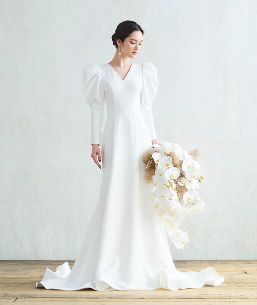 高品質!送料無料!ウエディングドレス Vネック パフスリーブ 七分袖丈 かわいい トレーン オーダードレス ハンドメイド エレガント 優雅 花嫁 豪華 ハンドメイド オーダードレス 結婚式/前撮り/二次会/2次会/披露宴/演奏会/音楽会 ガーデンウェディング | David1021k Dress(ダヴィドレス)