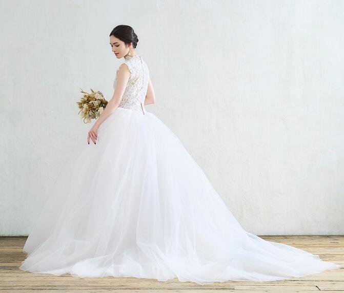 高品質!送料無料!ウエディングドレス ハイネック ノースリーブ 上品レース ソフトチュール かわいい トレーン 柔らかく重ねたチュールスカート オーダードレス ハンドメイド エレガント 優雅 花嫁 豪華 ハンドメイド オーダードレス 結婚式/前撮り/二次会/2次会/披露宴/演奏会/音楽会 ガーデンウェディング | David1021k Dress(ダヴィドレス)
