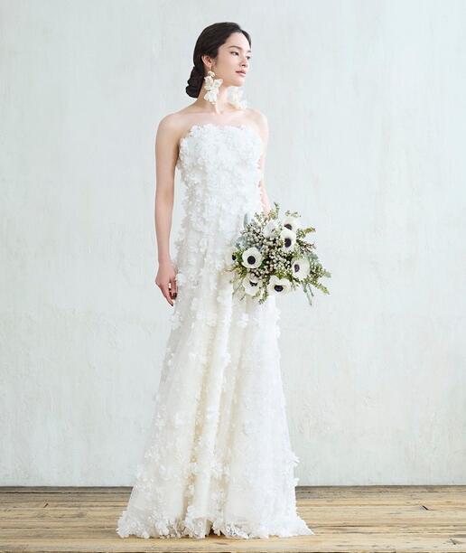 高品質!送料無料!ウエディングドレス ベアトップ 上品レース ソフトチュール かわいい 3D立体レース刺繍 トレーン 柔らかく重ねたチュールスカート オーダードレス ハンドメイド エレガント 優雅 花嫁 豪華 ハンドメイド オーダードレス 結婚式/前撮り/二次会/2次会/披露宴/演奏会/音楽会 ガーデンウェディング | David1021k Dress(ダヴィドレス)