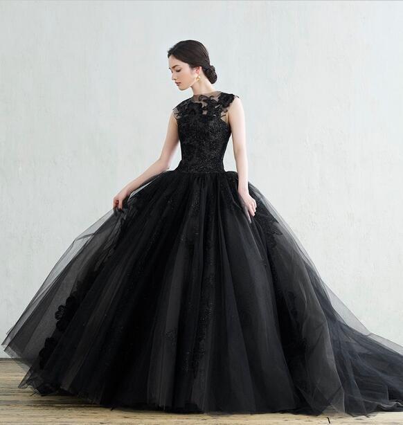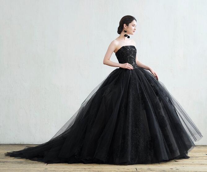 高品質!送料無料!カラードレス 黒/ブラック ノースリーブ 上品レースボレロ セクシー ソフトチュール かわいい トレーン 柔らかく重ねたチュールスカート ウエディングドレス オーダードレス ハンドメイド エレガント 優雅 花嫁 豪華 ハンドメイド オーダードレス 結婚式/前撮り/二次会/2次会/披露宴/演奏会/音楽会 ガーデンウェディング | David1021k Dress(ダヴィドレス)