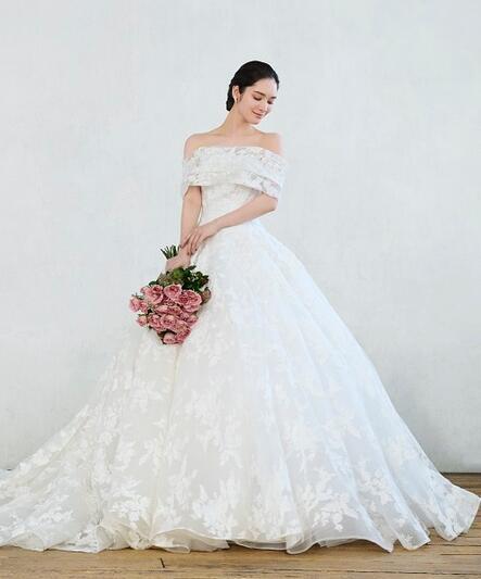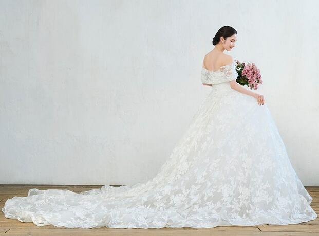 高品質!送料無料!ウエディングドレス オフショルダー かわいい 上品レース エレガント 優雅 ハンドメイド トレーン オーダードレス ガーデンウェディング 花嫁 豪華 結婚式/前撮り/二次会/2次会/披露宴/演奏会/音楽会 | David1021k Dress(ダヴィドレス)
