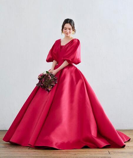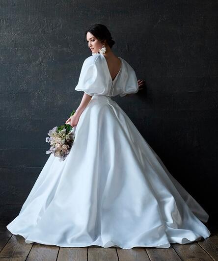 高品質!送料無料!ウエディングドレス ベアトップ パフスリーブ 2WAY かわいい 高級サテン トレーン オーダードレス ハンドメイド エレガント 優雅 花嫁 豪華 セクシー 結婚式/前撮り/二次会/2次会/披露宴/演奏会/音楽会 ガーデンウェディング | David1021k Dress(ダヴィドレス)