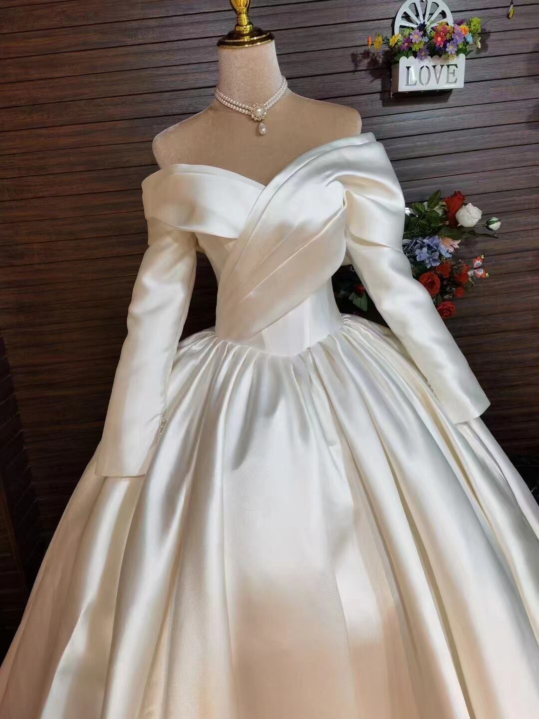 高品質!オフショルダー ウエディングドレス 長袖 ン前撮り/結婚式花嫁/ウェディングドレス/ブライズメイド/お呼ばれ//合コン/デート/謝恩会