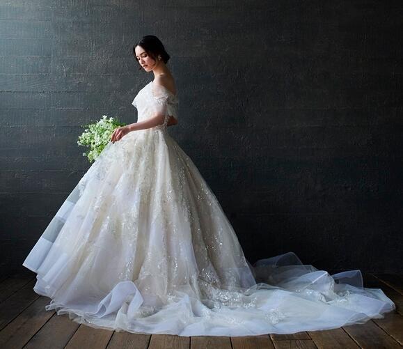 高品質!送料無料!ウエディングドレス オフショルダー 上品レース 花柄のモチーフ刺繍が美しく かわいい エレガント 優雅 ハンドメイド トレーン オーダードレス プリンセスライン ガーデンウェディング 花嫁 豪華 結婚式/前撮り/二次会/2次会/披露宴/演奏会/音楽会 | David1021k Dress(ダヴィドレス)
