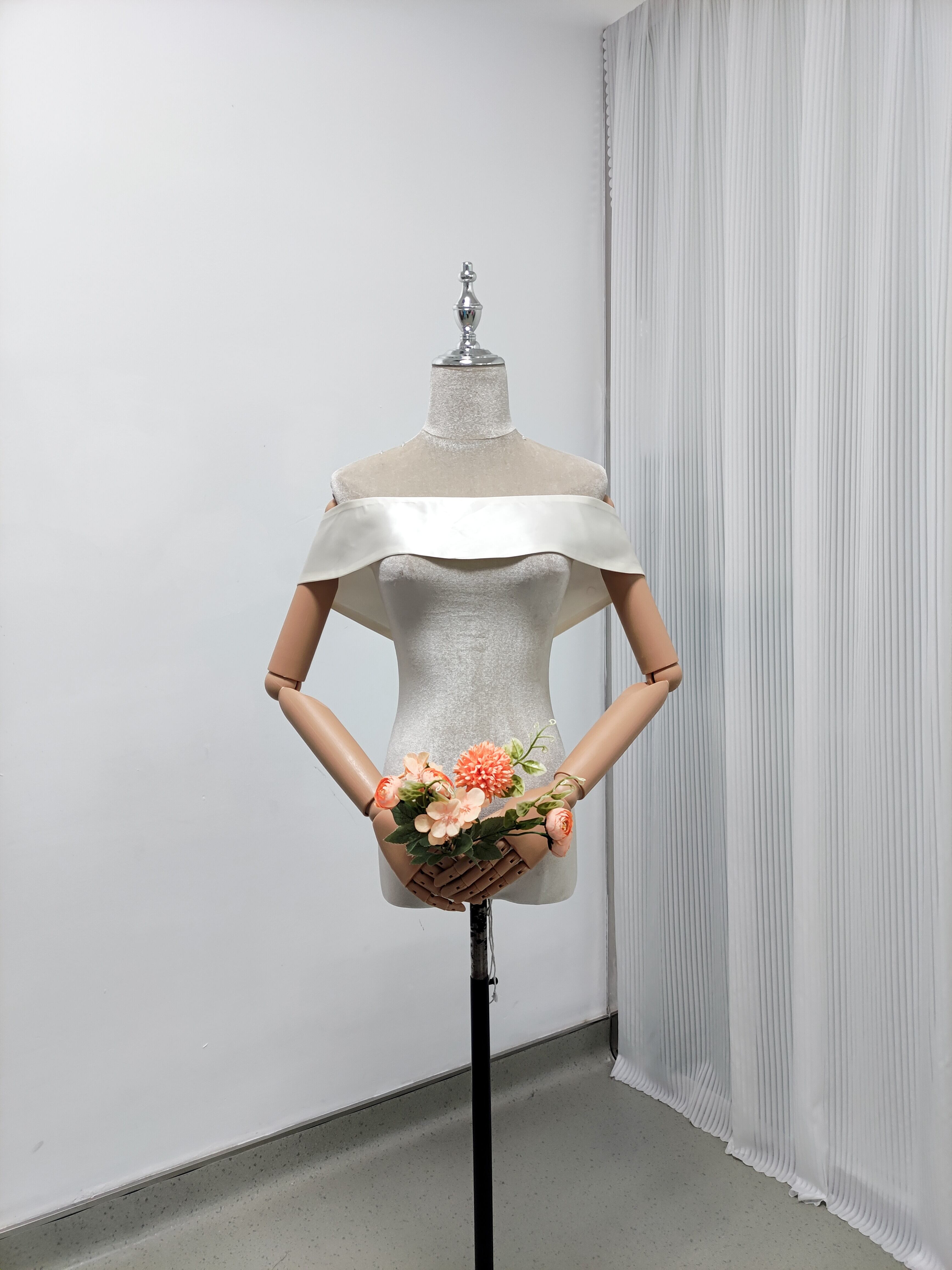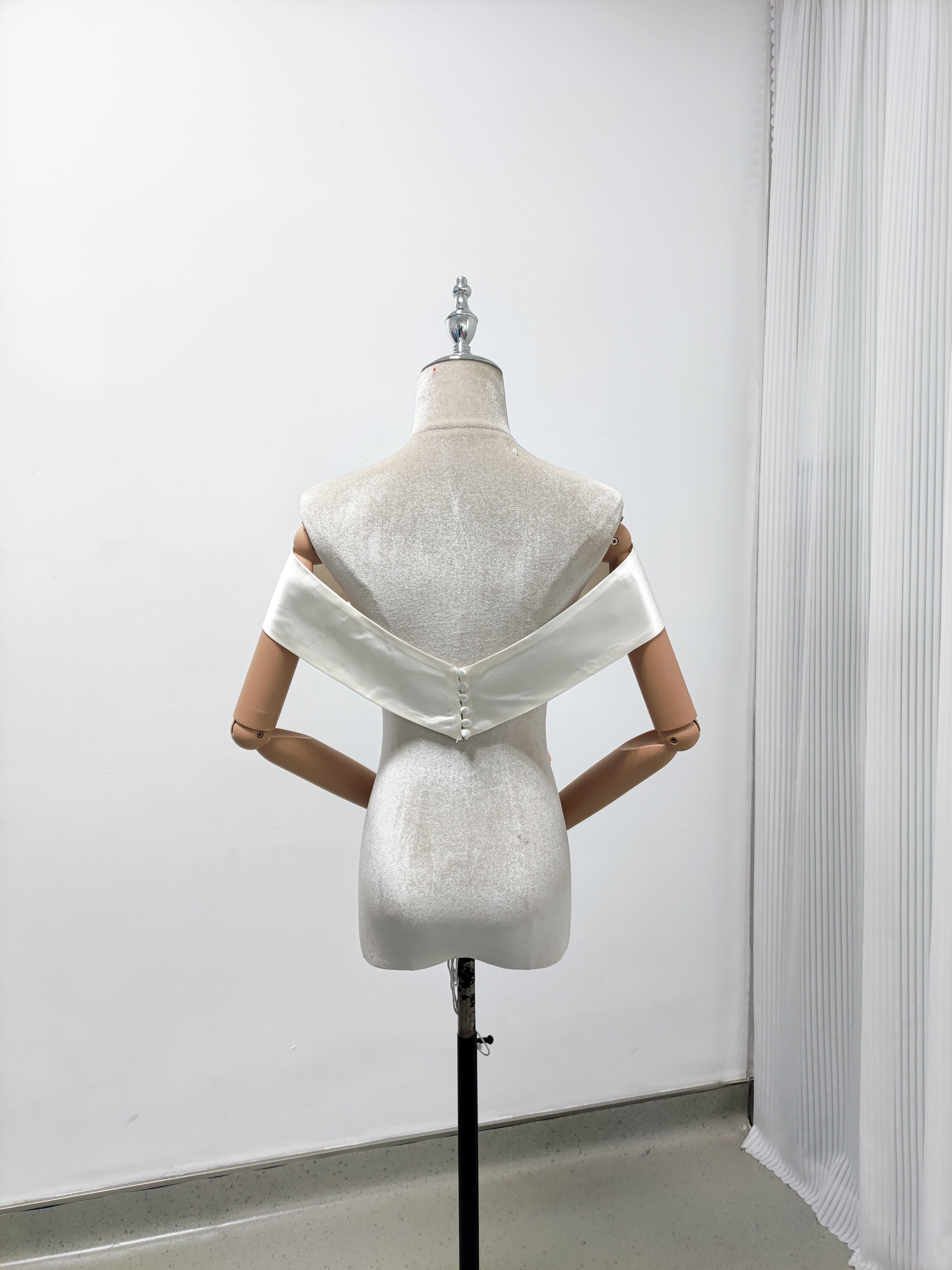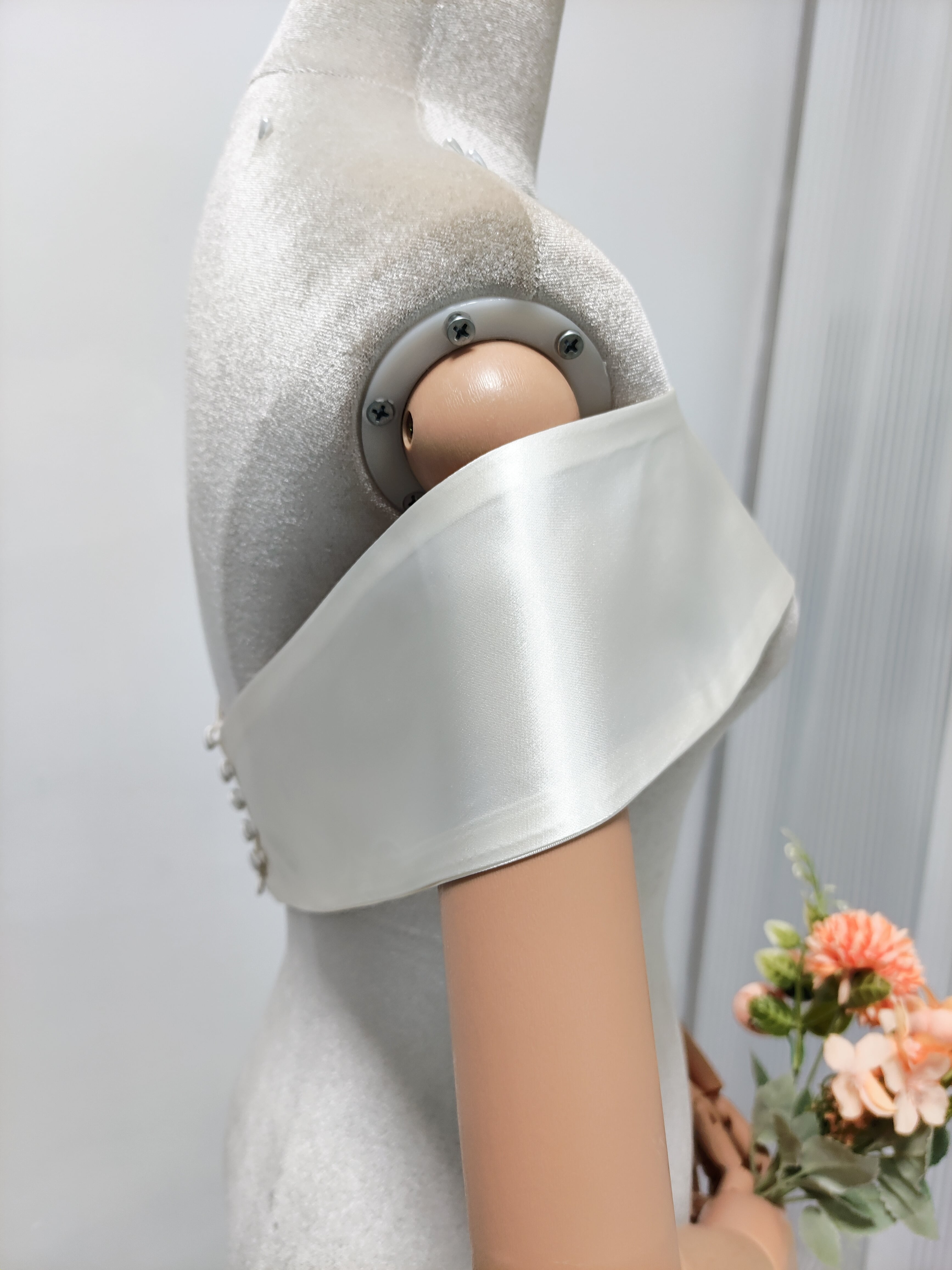 送料無料!アイボリー 取り外しオフショルダーくるみボタン ウエディングドレス