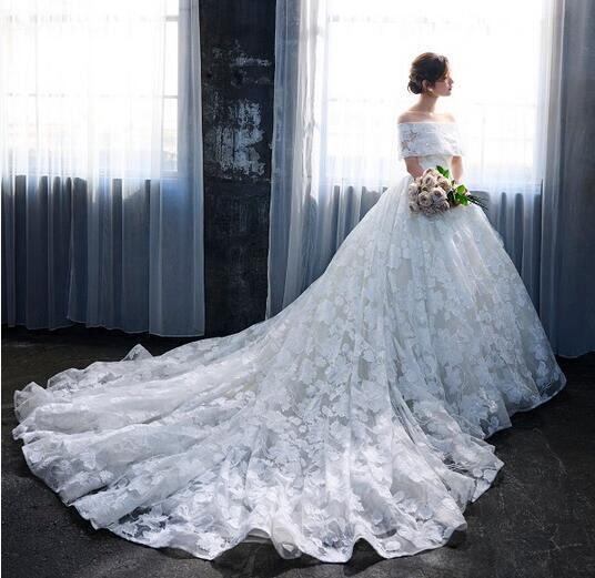 高品質!送料無料!ウエディングドレス オフショルダー 総レース 2WAY かわいい エレガント 優雅 上品レース ハンドメイド トレーン オーダードレス プリンセスライン ガーデンウェディング 花嫁 豪華 結婚式/前撮り/二次会/2次会/披露宴/演奏会/音楽会