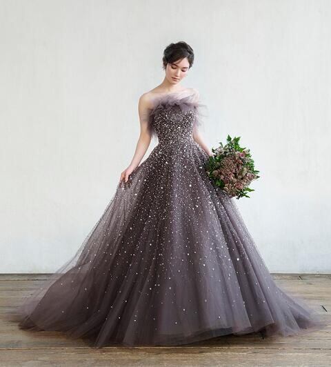 高品質!送料無料!カラードレス カーキ色 ベアトップ かわいい エレガント 優雅 オーダードレス ハンドメイド キラキラチュール ソフトチュール 花嫁 トレーン 結婚式/前撮り/二次会/2次会/披露宴/演奏会/音楽会 合コン パーティードレス | David1021k Dress(ダヴィドレス)
