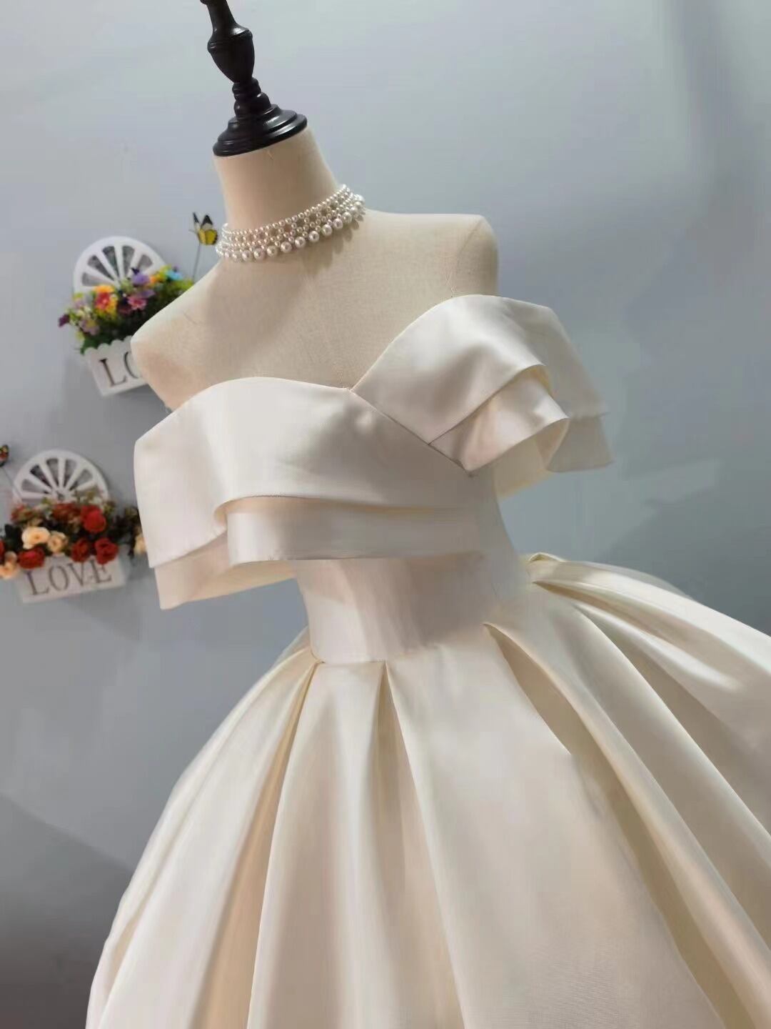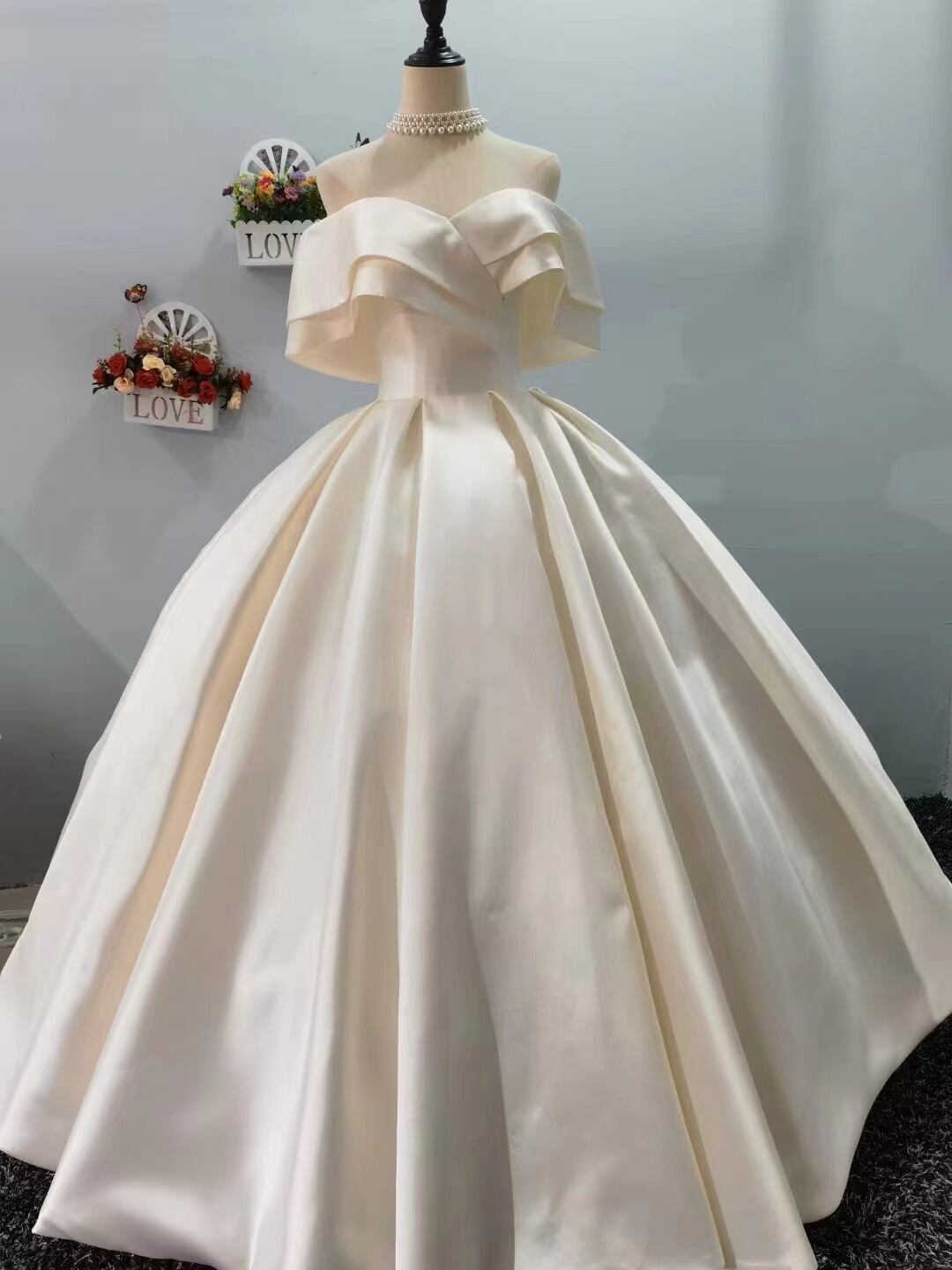 送料無料!高品質 オフショルダー ウエディングドレス 華やかなトレーン 高級サテン 結婚式/前撮り/音楽会