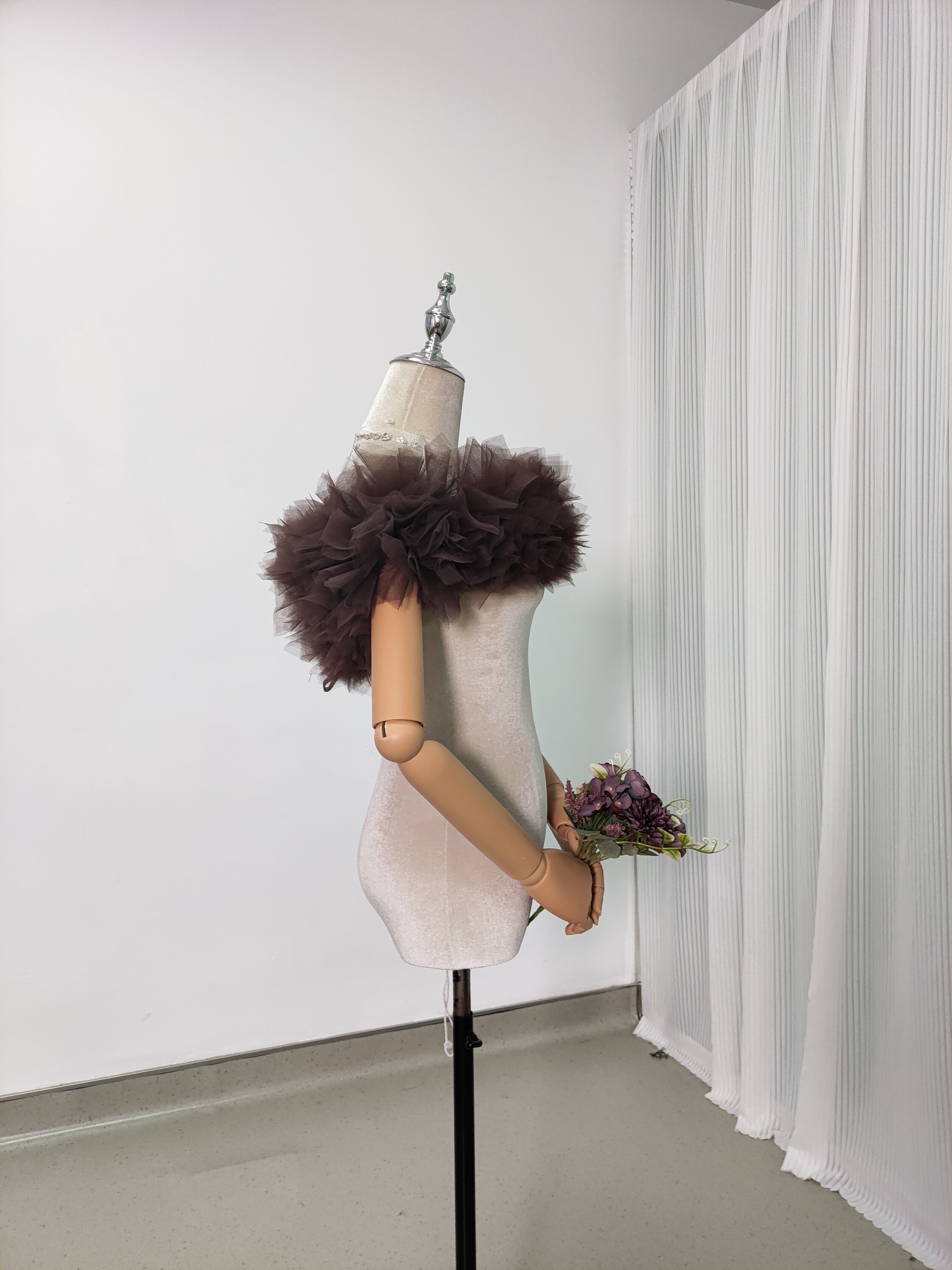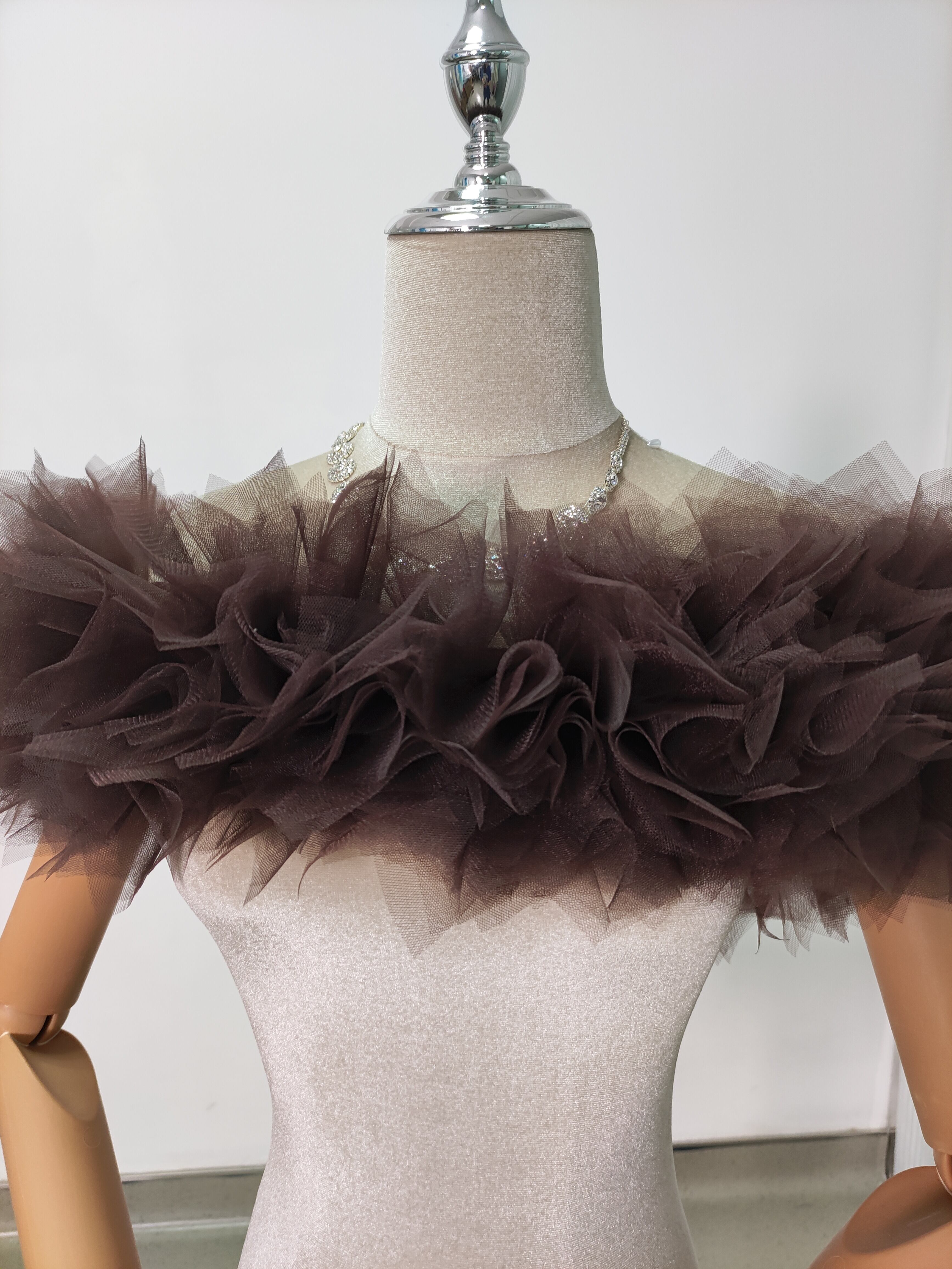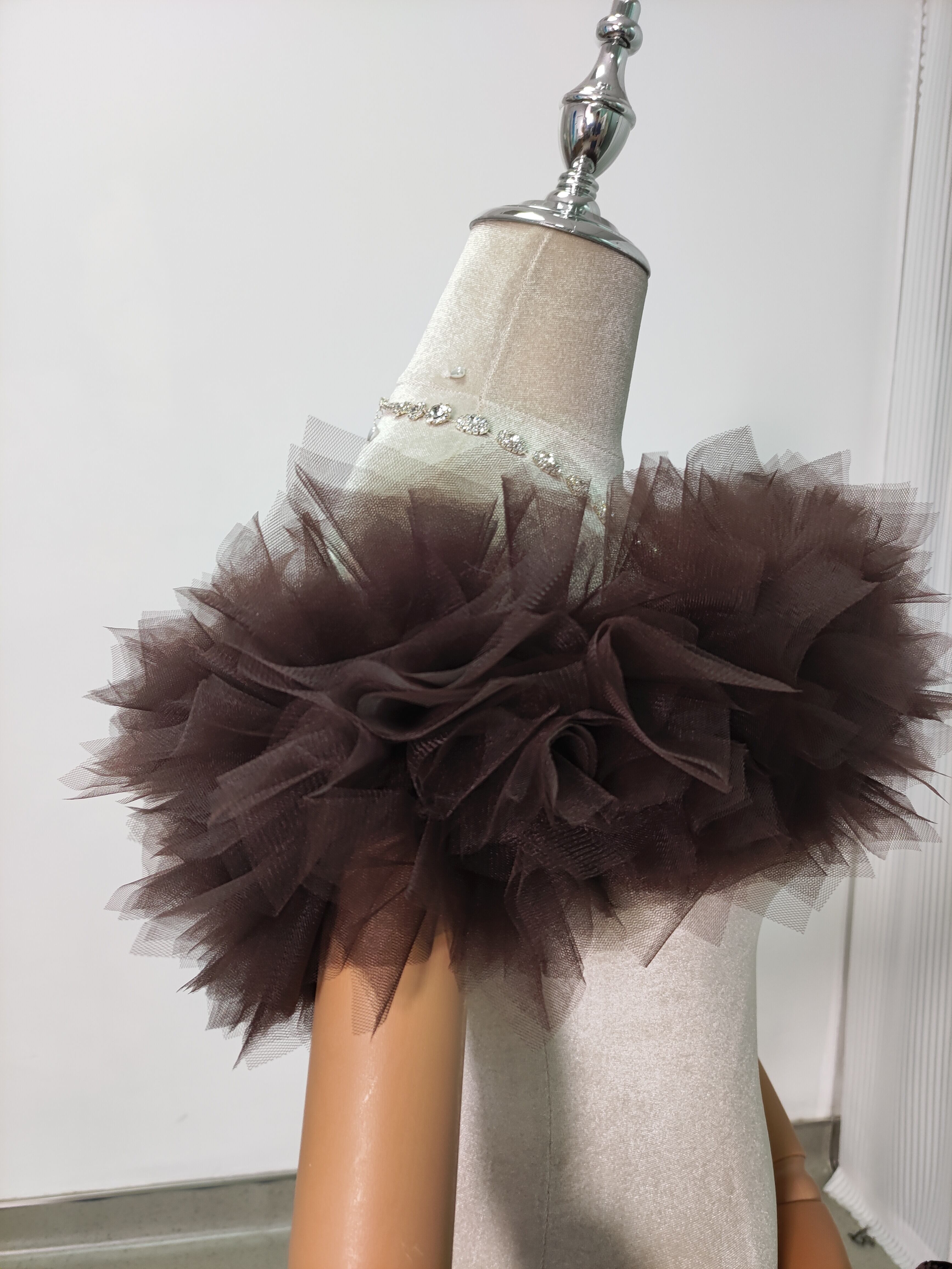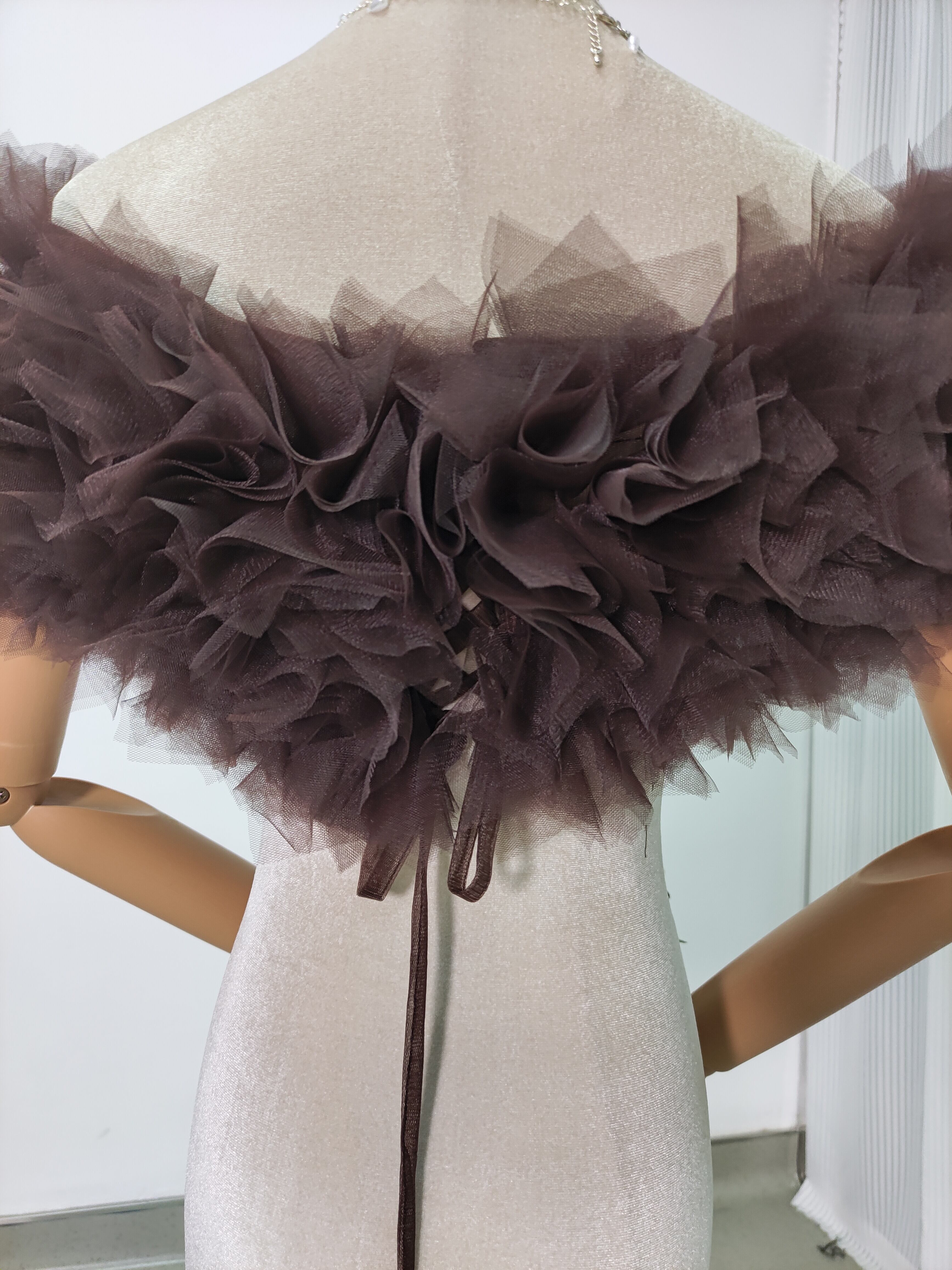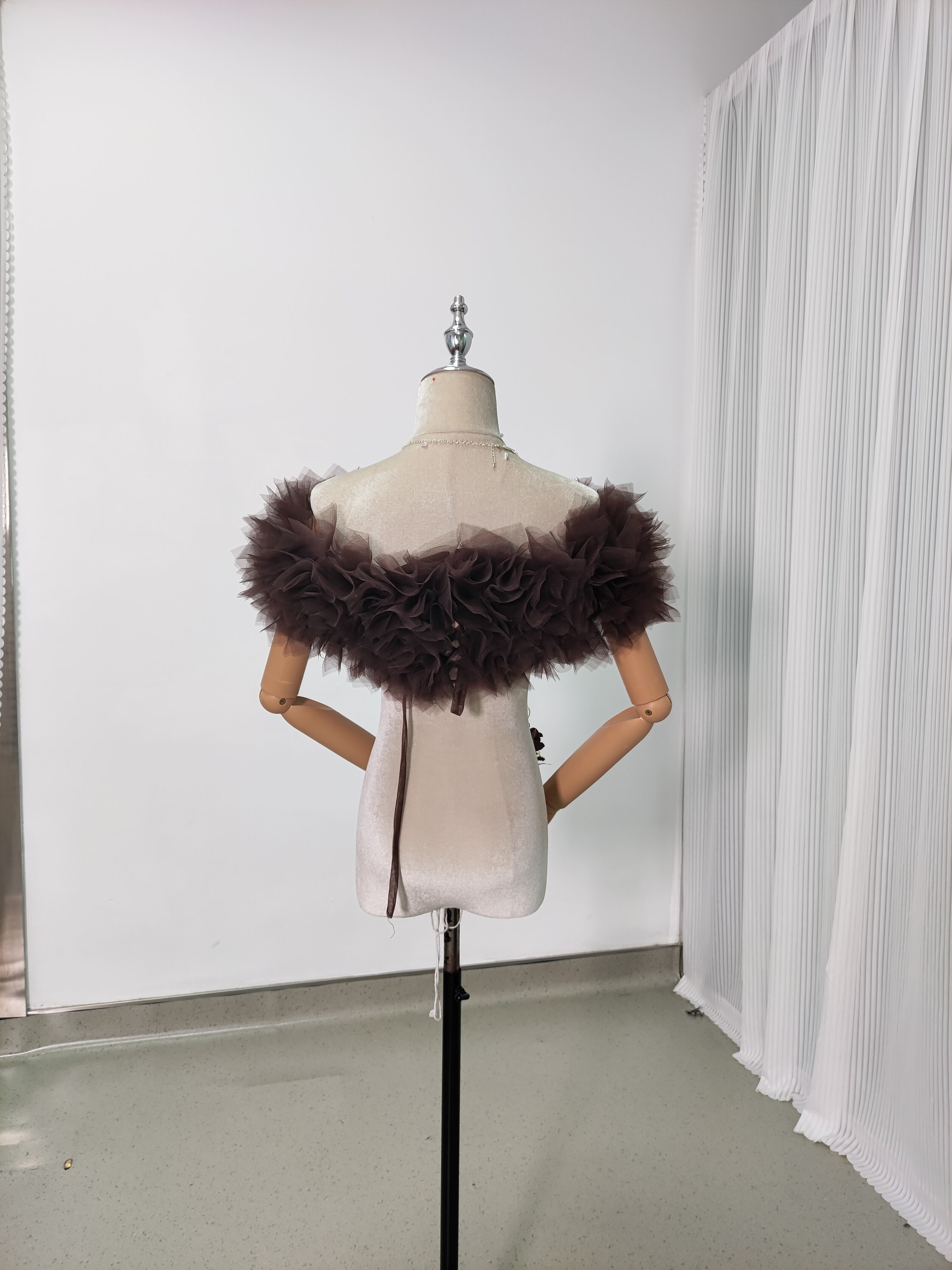 コーヒーの色 取り外しオフショルダー ウエディングドレス