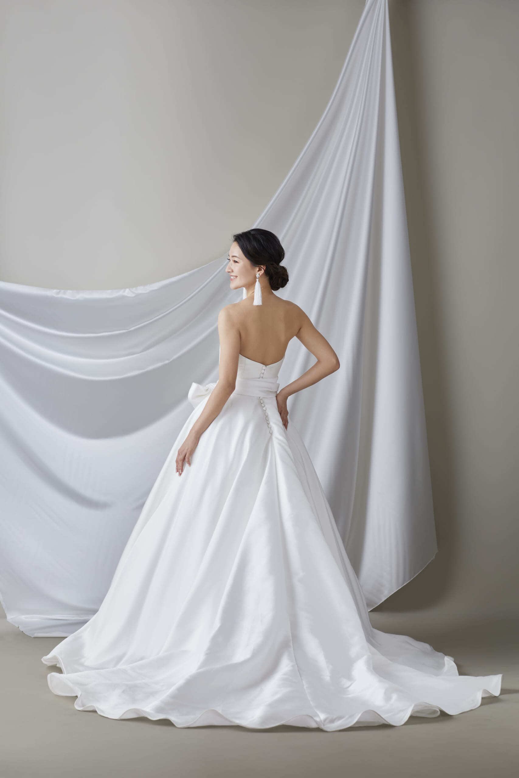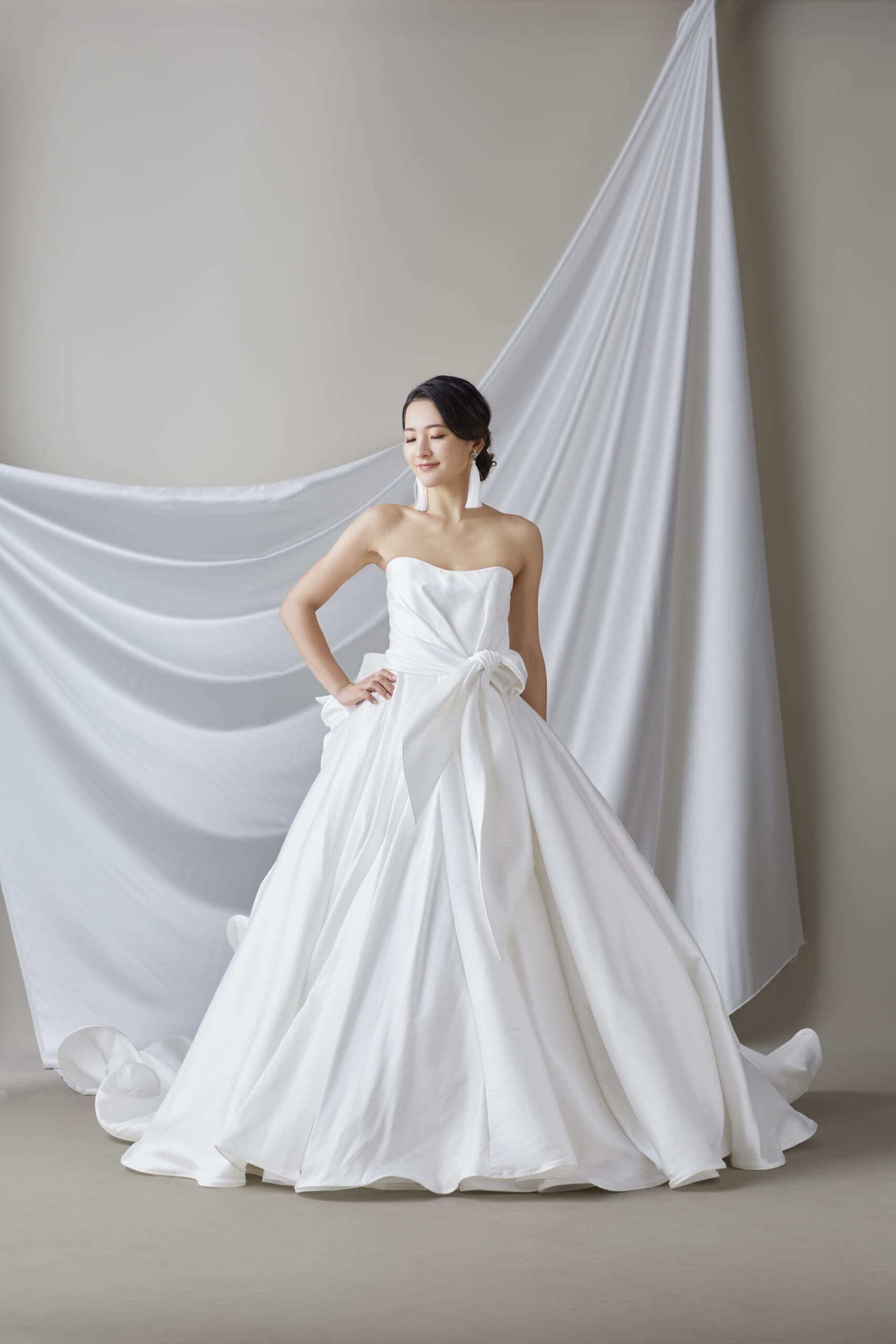 送料無料!ウエディングドレス ベアトップ バックリボン 取り外し かわいい 高級サテン トレーン エレガント 優雅 花嫁 豪華 ハンドメイド オーダードレス 結婚式/前撮り/二次会/2次会/披露宴/演奏会/音楽会 ガーデンウェディング | David1021k Dress(ダヴィドレス)