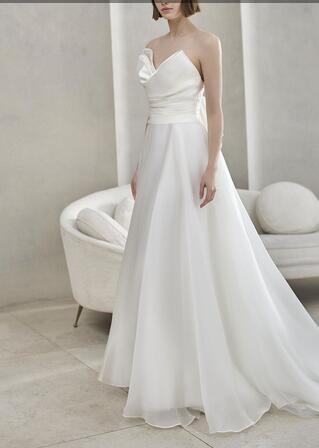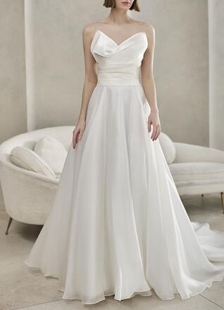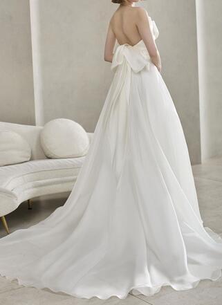 送料無料!ウエディングドレス ベアトップ バックリボン 取り外し かわいい トレーン エレガント 優雅 花嫁 豪華 ハンドメイド オーダードレス 結婚式/前撮り/二次会/2次会/披露宴/演奏会/音楽会 ガーデンウェディング | David1021k Dress(ダヴィドレス)