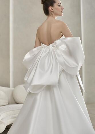 高品質!送料無料!ウエディングドレス ベアトップ かわいい バックリボン アシンメトリー風 細見えシルエット トレーン オーダードレス ハンドメイド エレガント 優雅 花嫁 豪華 セクシー 結婚式/前撮り/二次会/2次会/披露宴/演奏会/音楽会 ガーデンウェディング | David1021k Dress(ダヴィドレス)