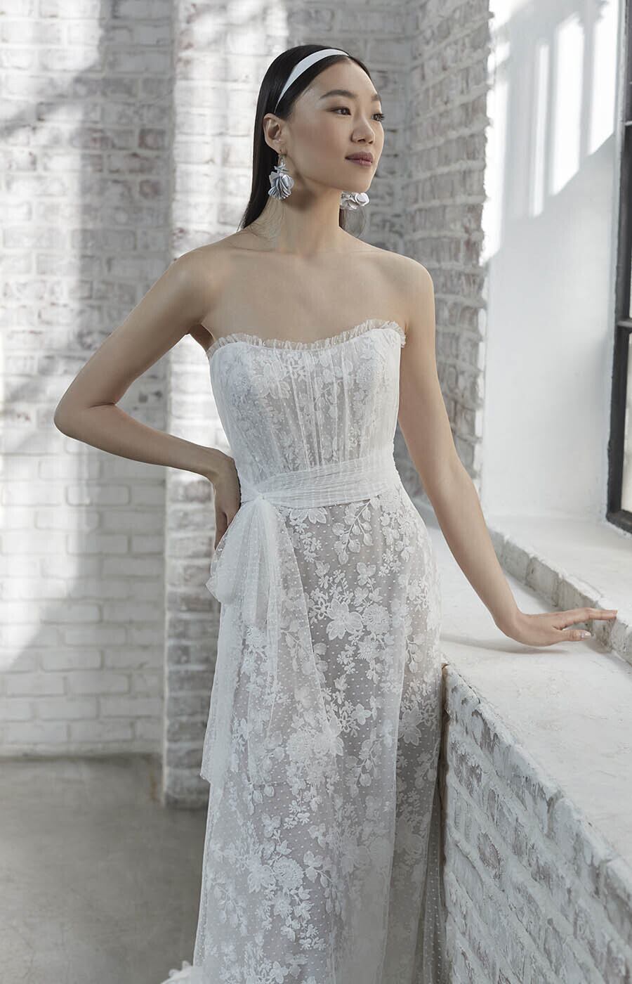 高品質!送料無料!パーティードレス ウエディングドレス ベアトップ 総レース かわいい エレガント 優雅 上品レース ハンドメイド トレーン オーダードレス 花嫁 豪華 結婚式/前撮り/二次会/2次会/披露宴/演奏会/音楽会 | David1021k Dress(ダヴィドレス)