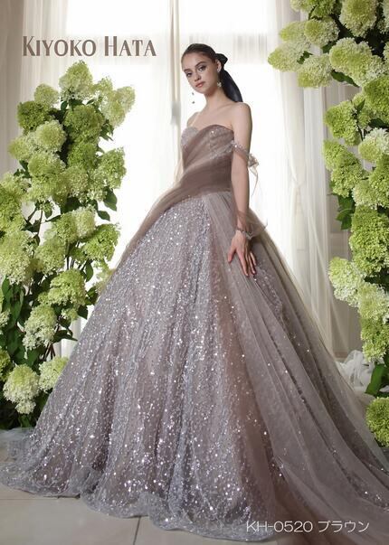 高品質!送料無料!カラードレス カーキ色 コーヒー色 キラキラチュール グラデーション オフショルダー かわいい エレガント 優雅 オーダードレス ハンドメイド ソフトチュール 花嫁 トレーン 結婚式/前撮り/二次会/2次会/披露宴/演奏会/音楽会 合コン パーティードレス | David1021k Dress(ダヴィドレス)