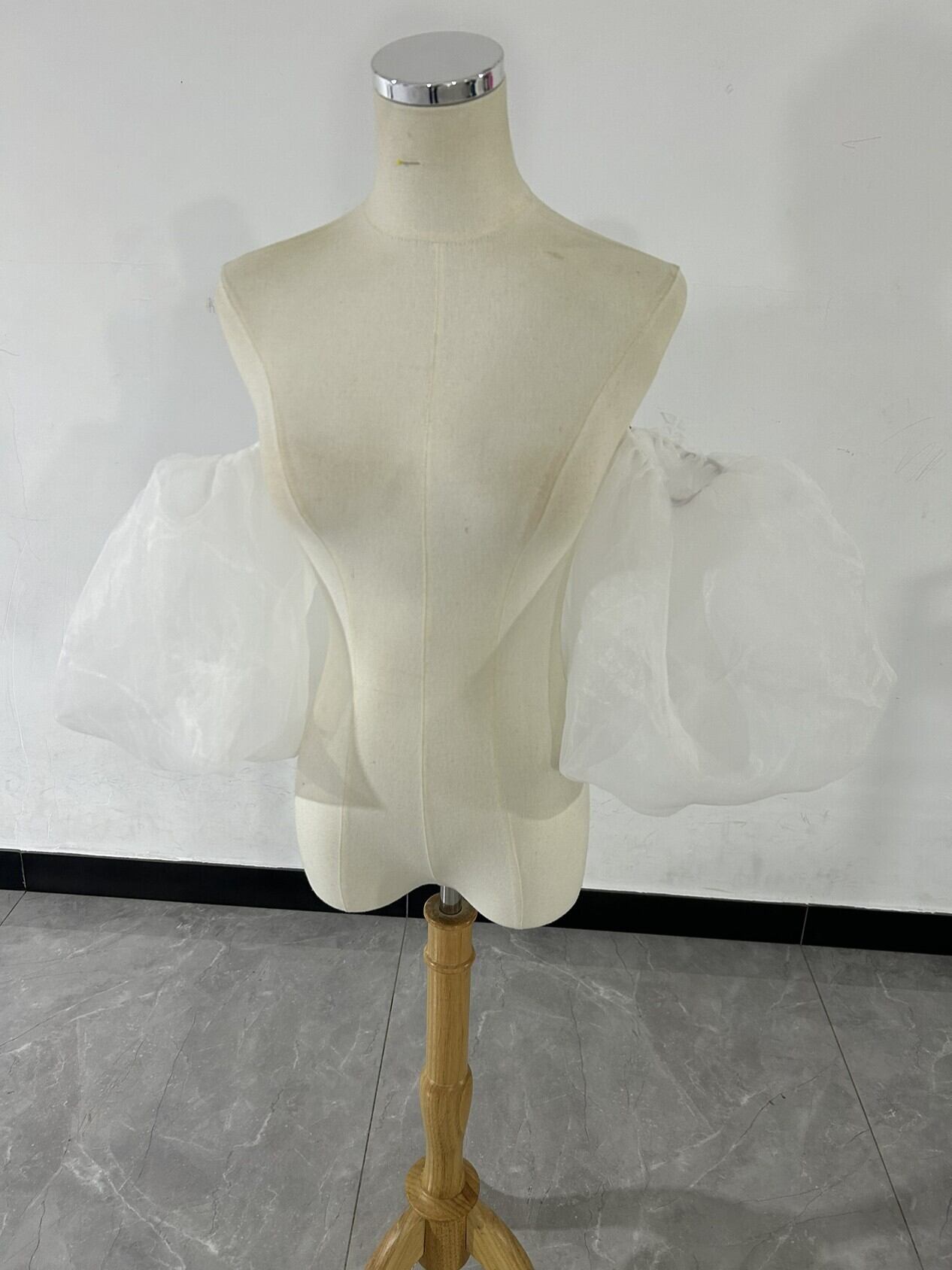 送料無料!多層チュール 取り外し袖 アイボリー ショルダーの付け袖 三角形パフスリーブ ドレスアレンジ ウエディング お色直し