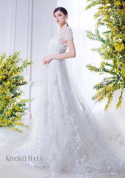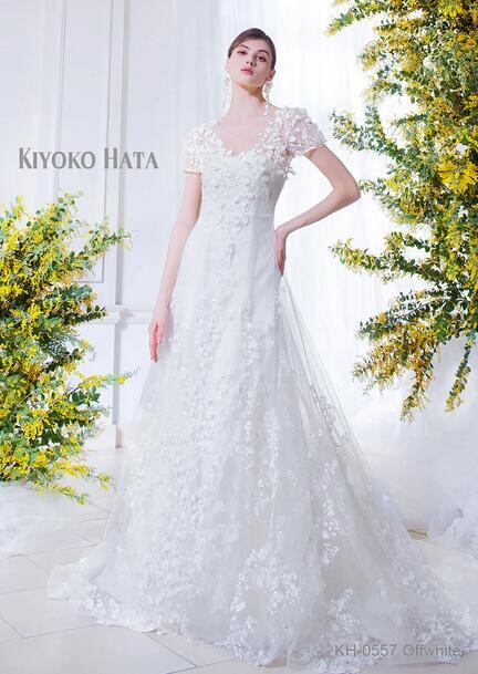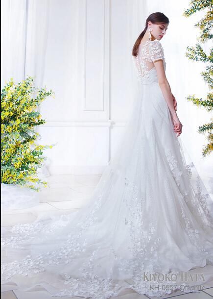 高品質!送料無料!ウエディングドレス 短袖 上品レース ソフトチュール ベアトップ 花柄のモチーフ刺繍が美しく かわいい エレガント 優雅 ハンドメイド 華やかなトレーン オーダードレス ガーデンウェディング 花嫁 豪華 結婚式/前撮り/二次会/2次会/披露宴/演奏会/音楽会 | David1021k Dress(ダヴィドレス)