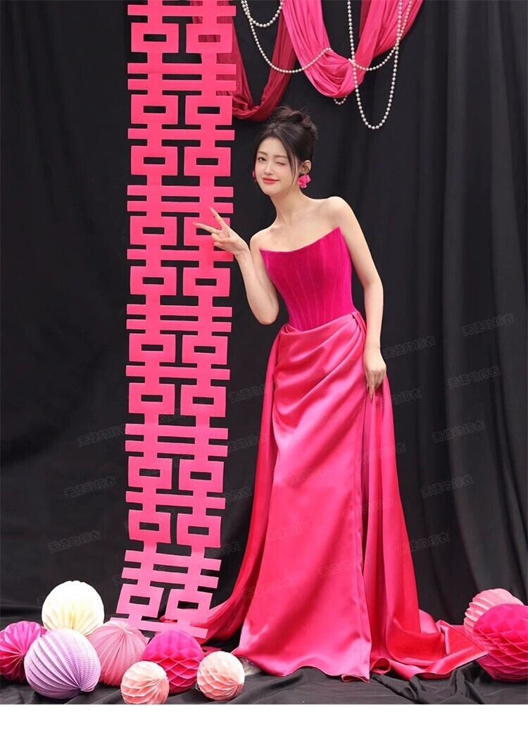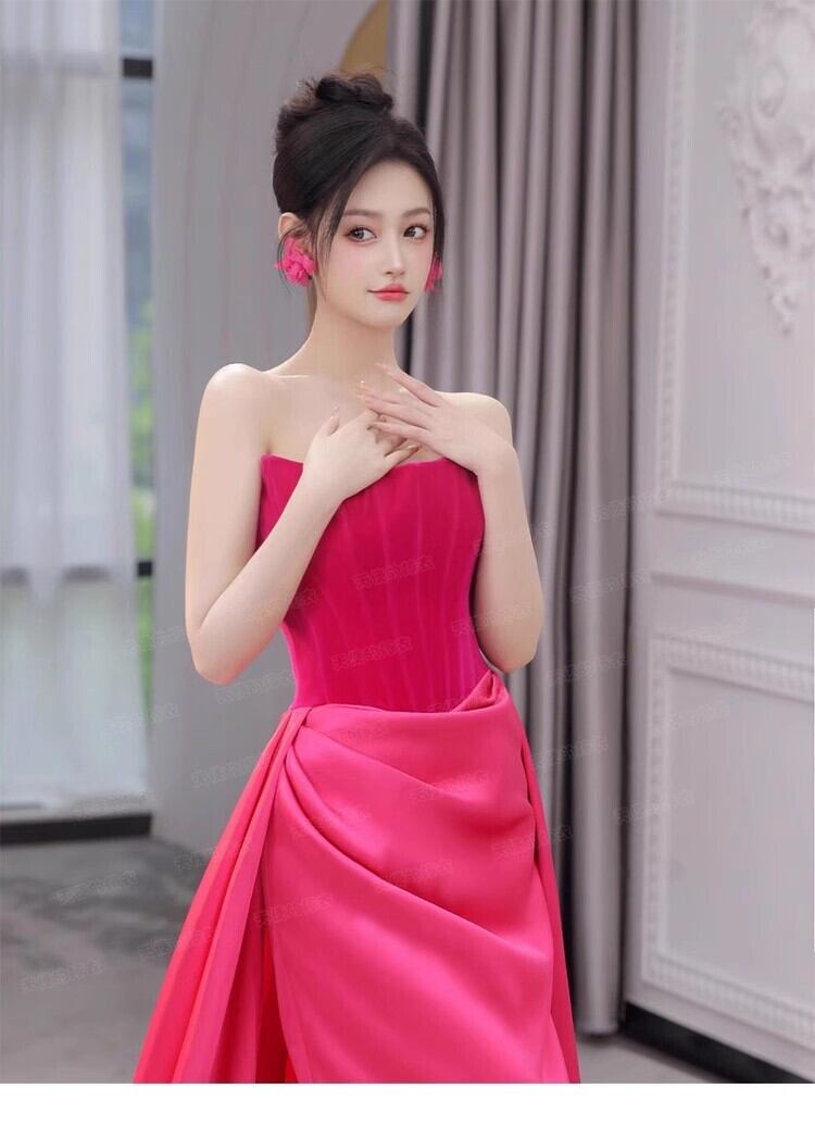 高品質!送料無料!カラードレス ベアトップ ショッキングピンク バラ色 かわいい エレガント 優雅 オーダードレス ハンドメイド 花嫁 結婚式/前撮り/二次会/2次会/披露宴/演奏会/音楽会 合コン パーティードレス | David1021k Dress(ダヴィドレス)