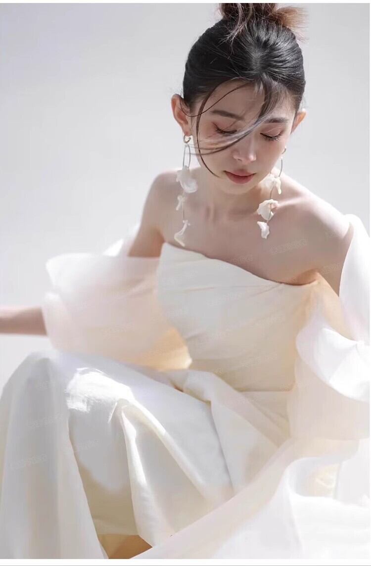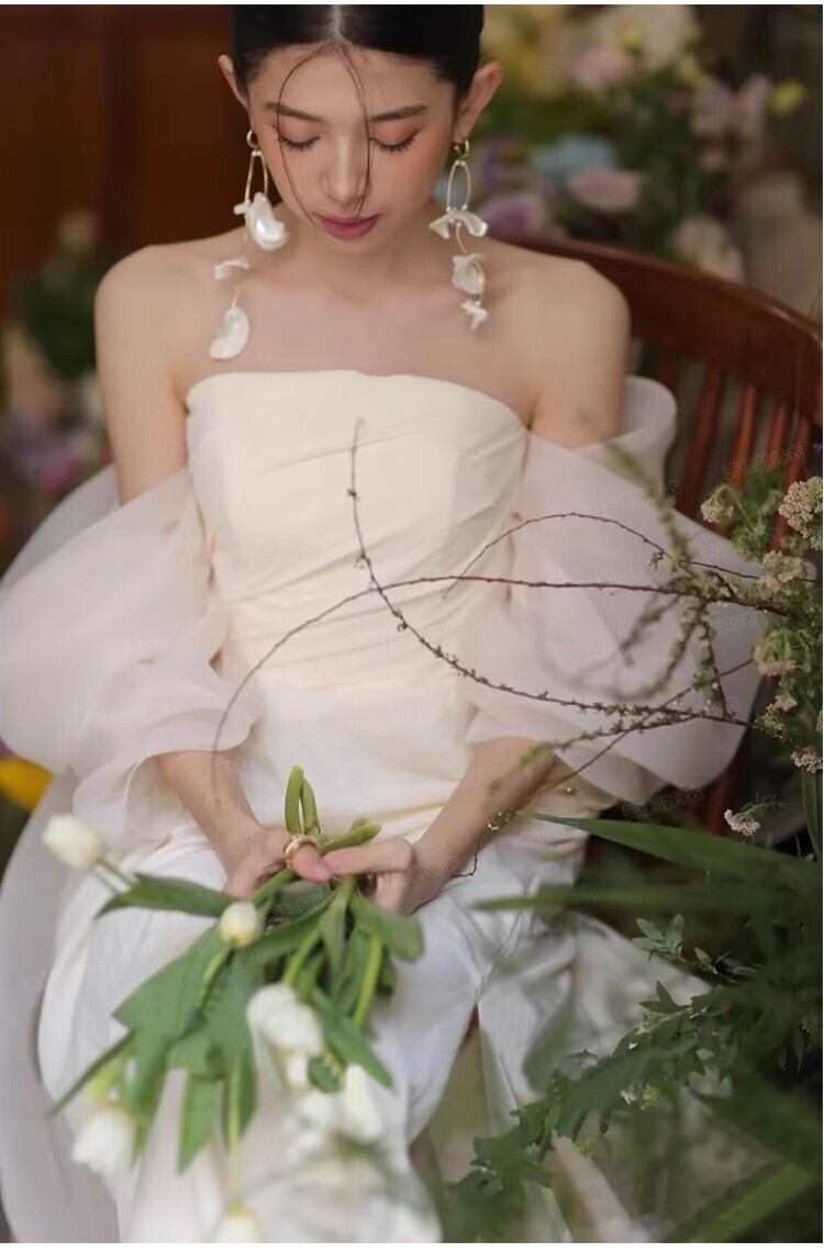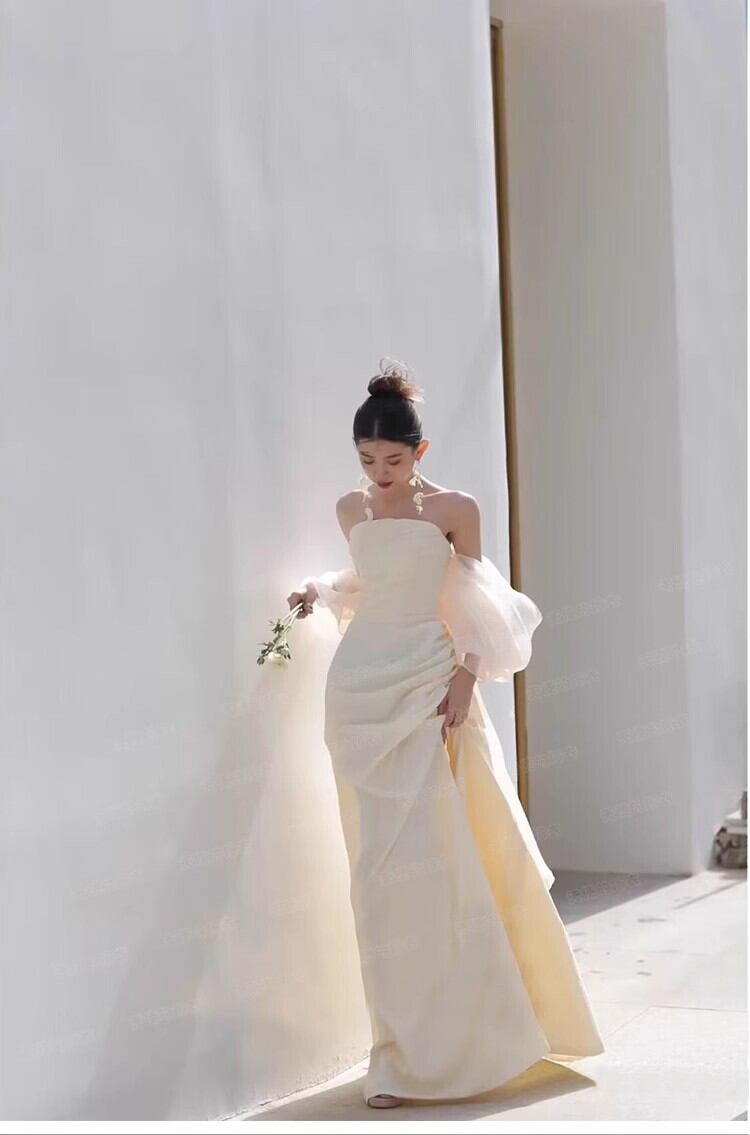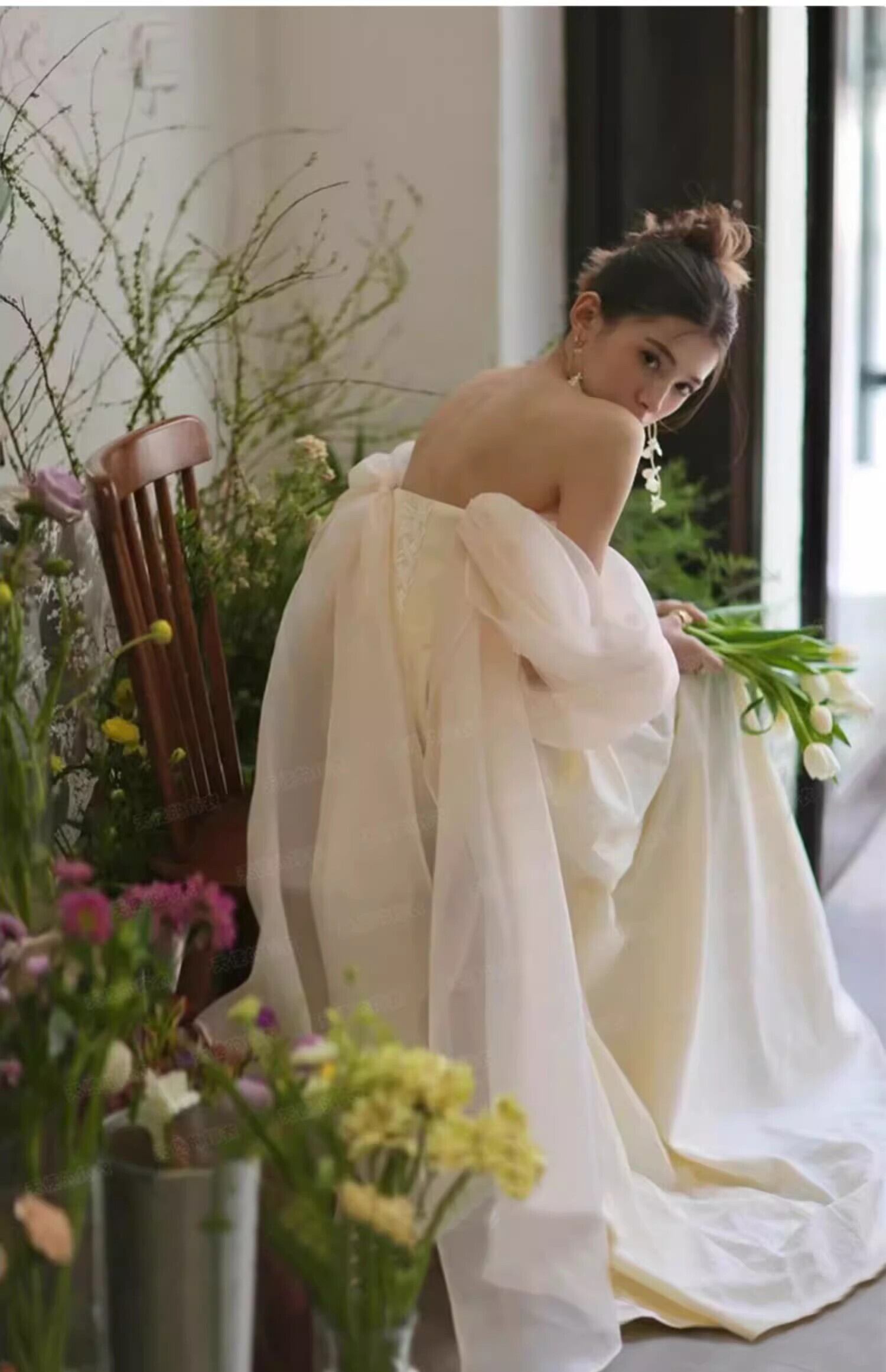 高品質!送料無料!ウエディングドレス ベアトップ ソフトチュール かわいい エレガント 優雅 ハンドメイド 華やかなトレーン オーダードレス ガーデンウェディング 花嫁 豪華 結婚式/前撮り/二次会/2次会/披露宴/演奏会/音楽会 | David1021k Dress(ダヴィドレス)