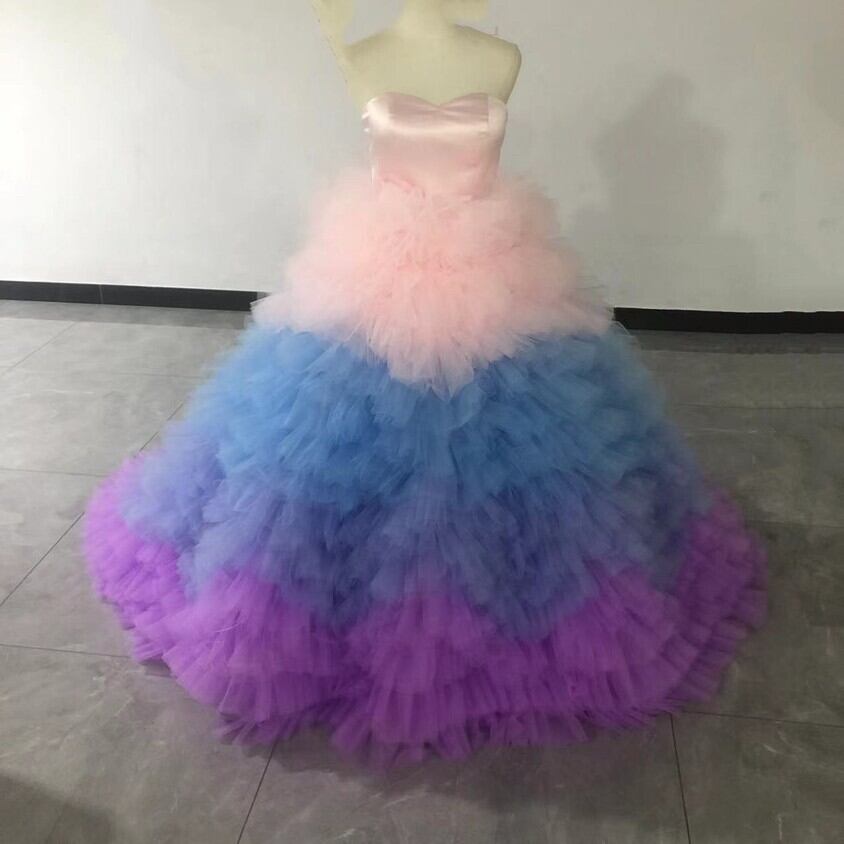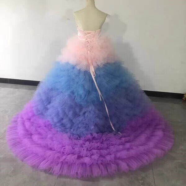 送料無料!冬婚!グラデーションカラードレス ピンク/青/紫 ソフトチュール もこもこドレス ボリュームたっぷり/前撮り/海辺結婚式