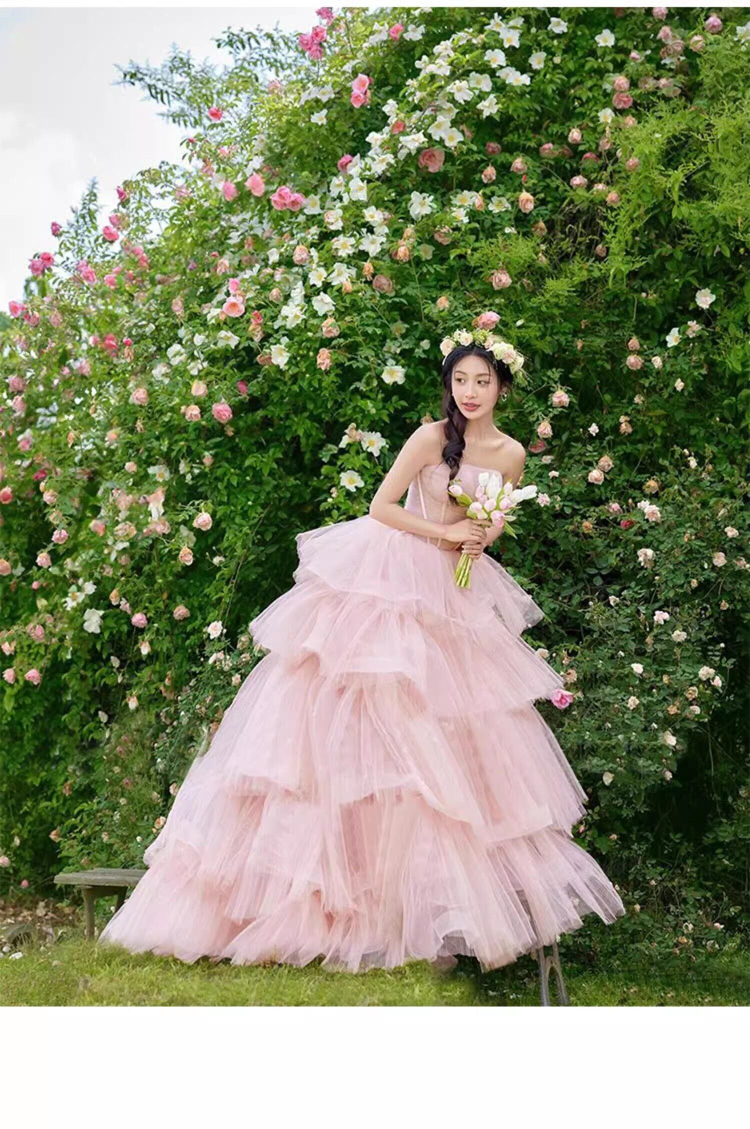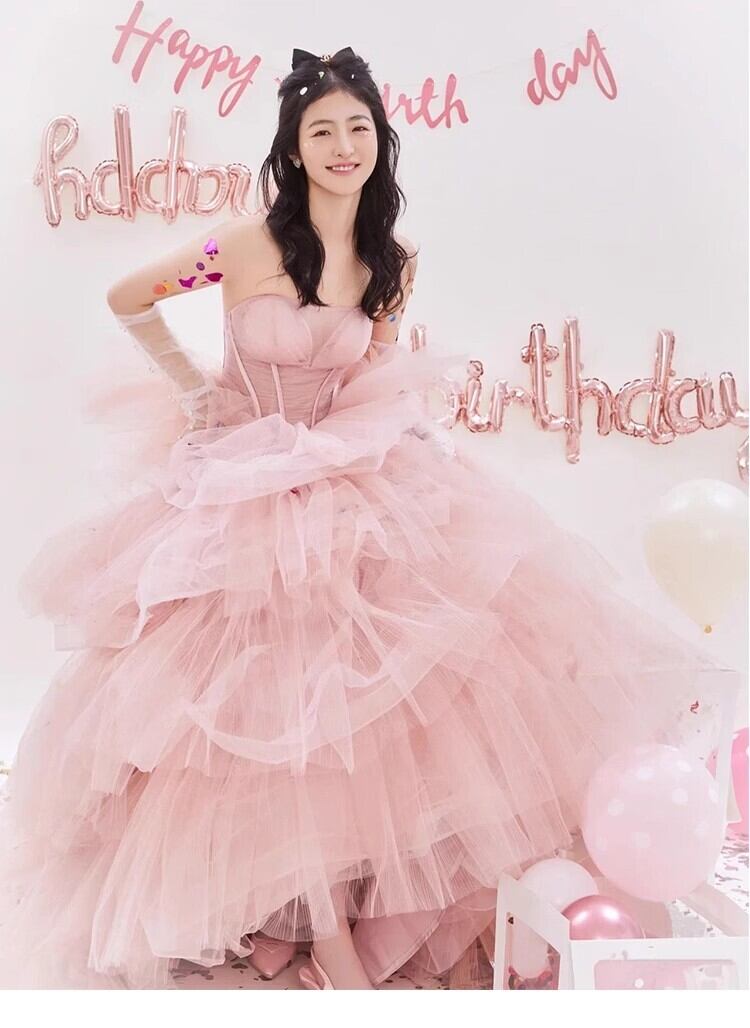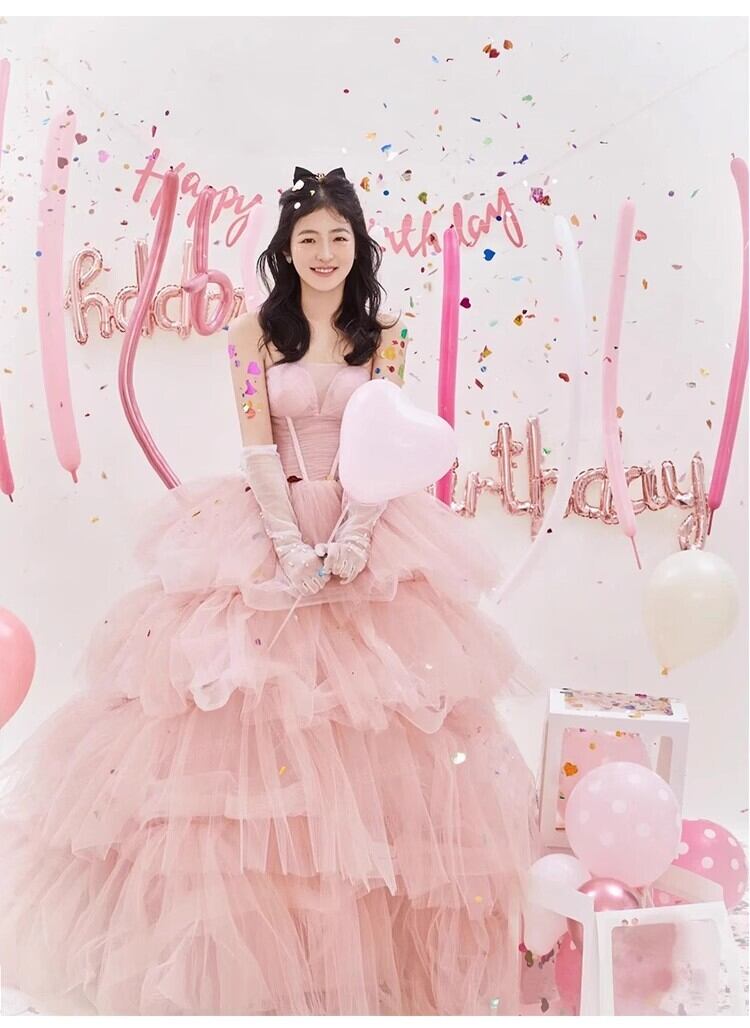 送料無料!パーティードレス カラードレス ピンク ベアトップ ソフトチュール かわいい エレガント 優雅 ミディアムドレス セレモニー 演奏ドレス ステージ ピアノ 夜会服 イブニングドレス 合コン ブライズメイド 誕生日プレゼント | David1021k Dress(ダヴィドレス)