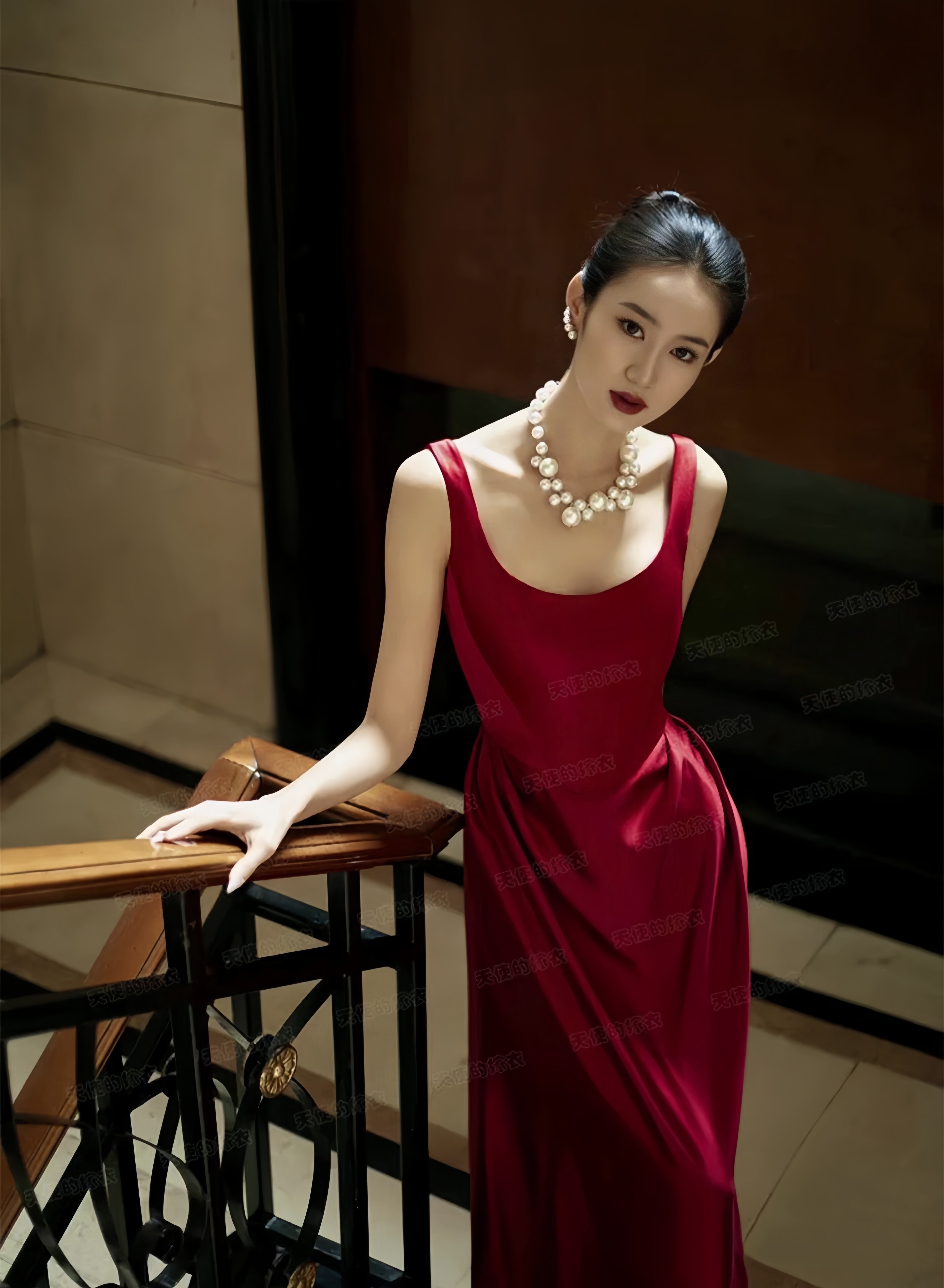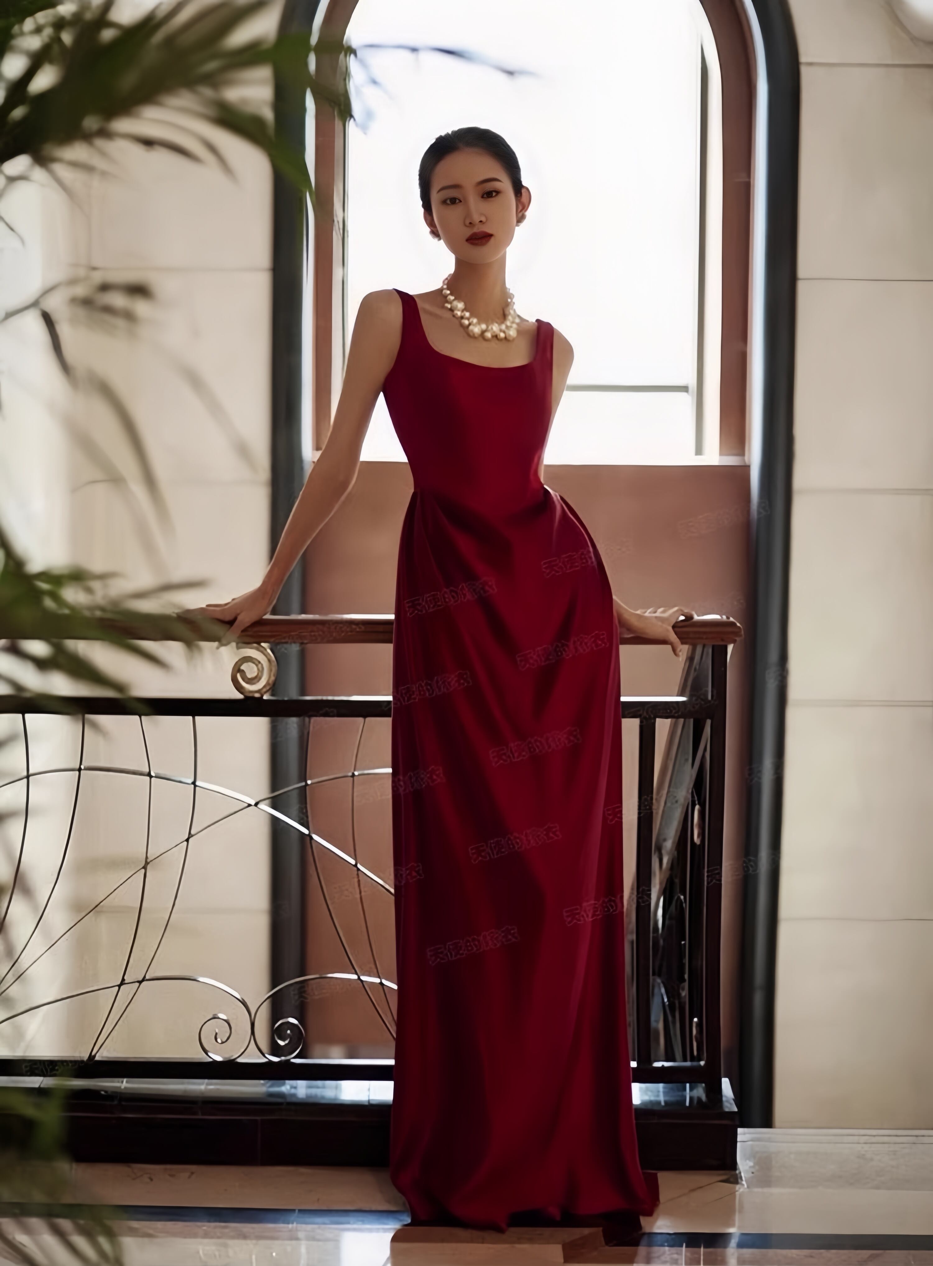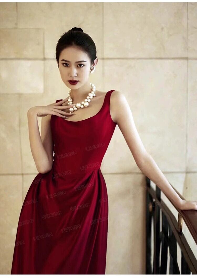 送料無料!パーティードレス カラードレス キャミソール ワインレッド/赤 かわいい エレガント 優雅 ミディアムドレス セレモニー パーティードレス 演奏ドレス ステージ ブライズメイド 誕生日プレゼント ピアノ イブニングドレス 合コン | David1021k Dress(ダヴィドレス)