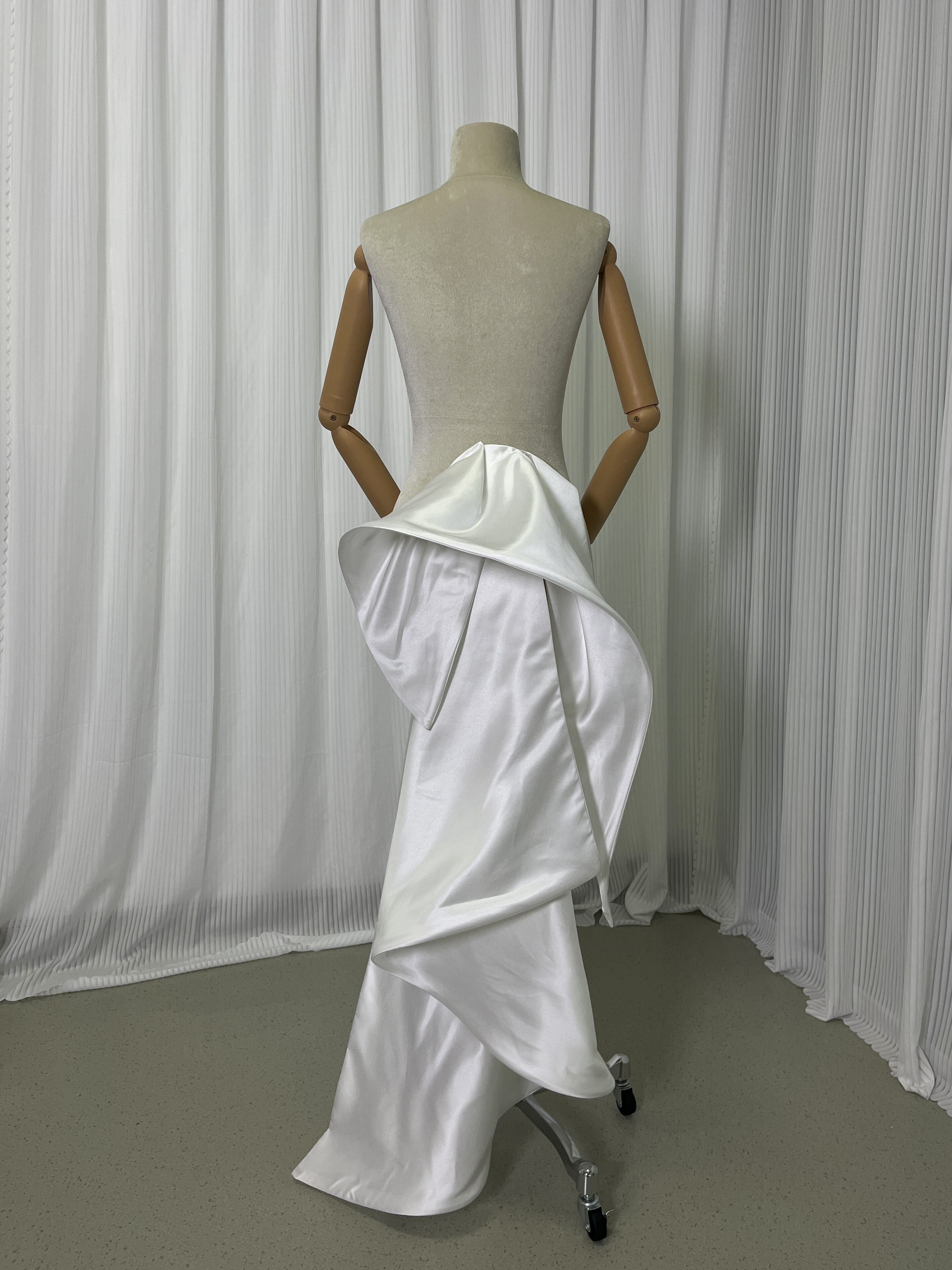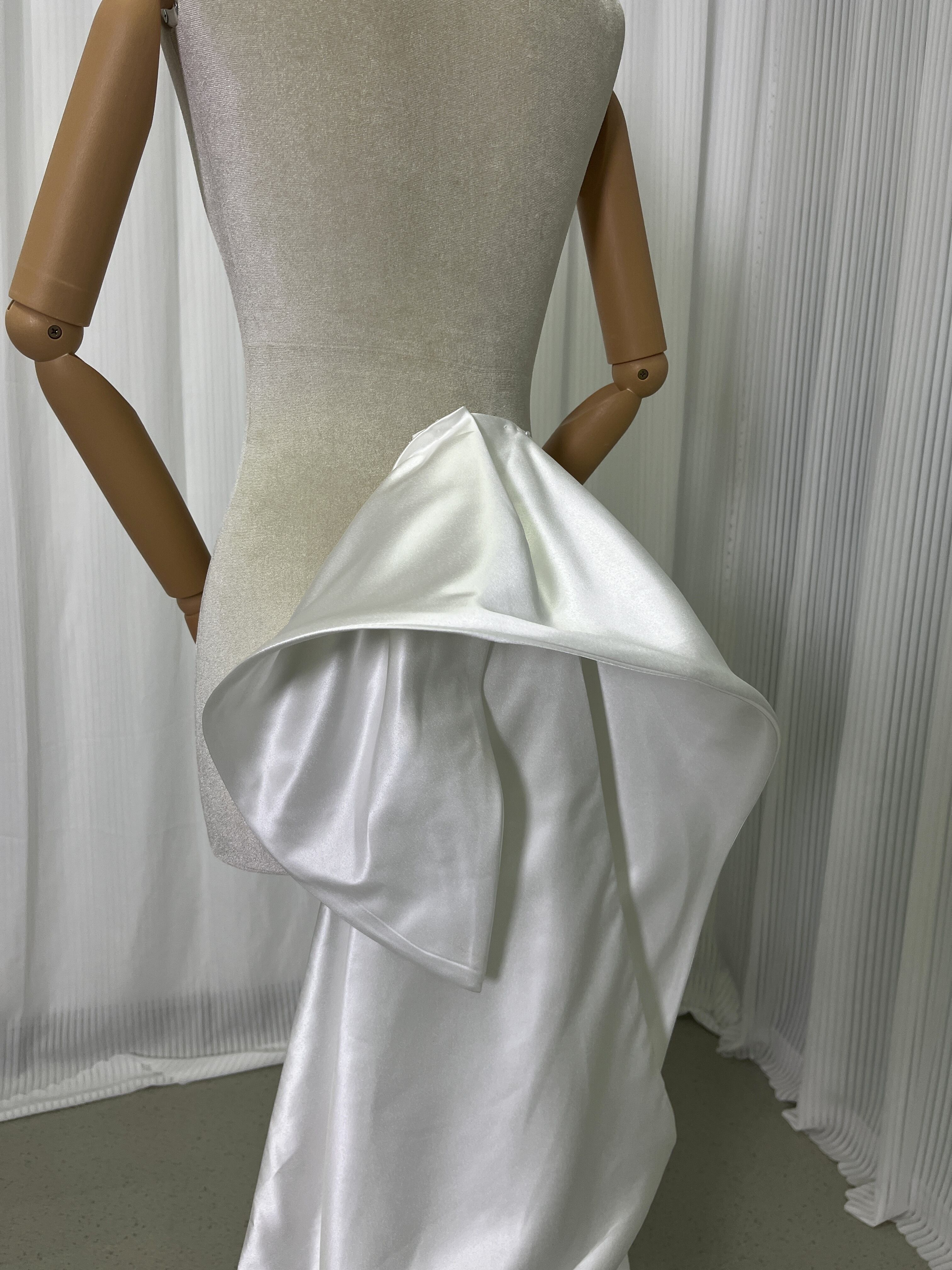 送料無料!高品質!ホワイトふっくら柔らかなバックサッシュベルト ウエディングドレス